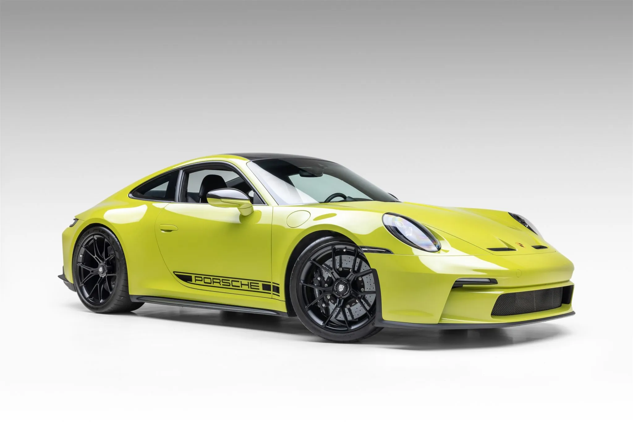 This 2022 Porsche 911 GT3 Touring has 5k miles and was optioned from the factory with a paint-to-sample Linden Green exterior finish in addition to a six-speed manual transaxle, which is paired with a 4.0-liter flat-six.