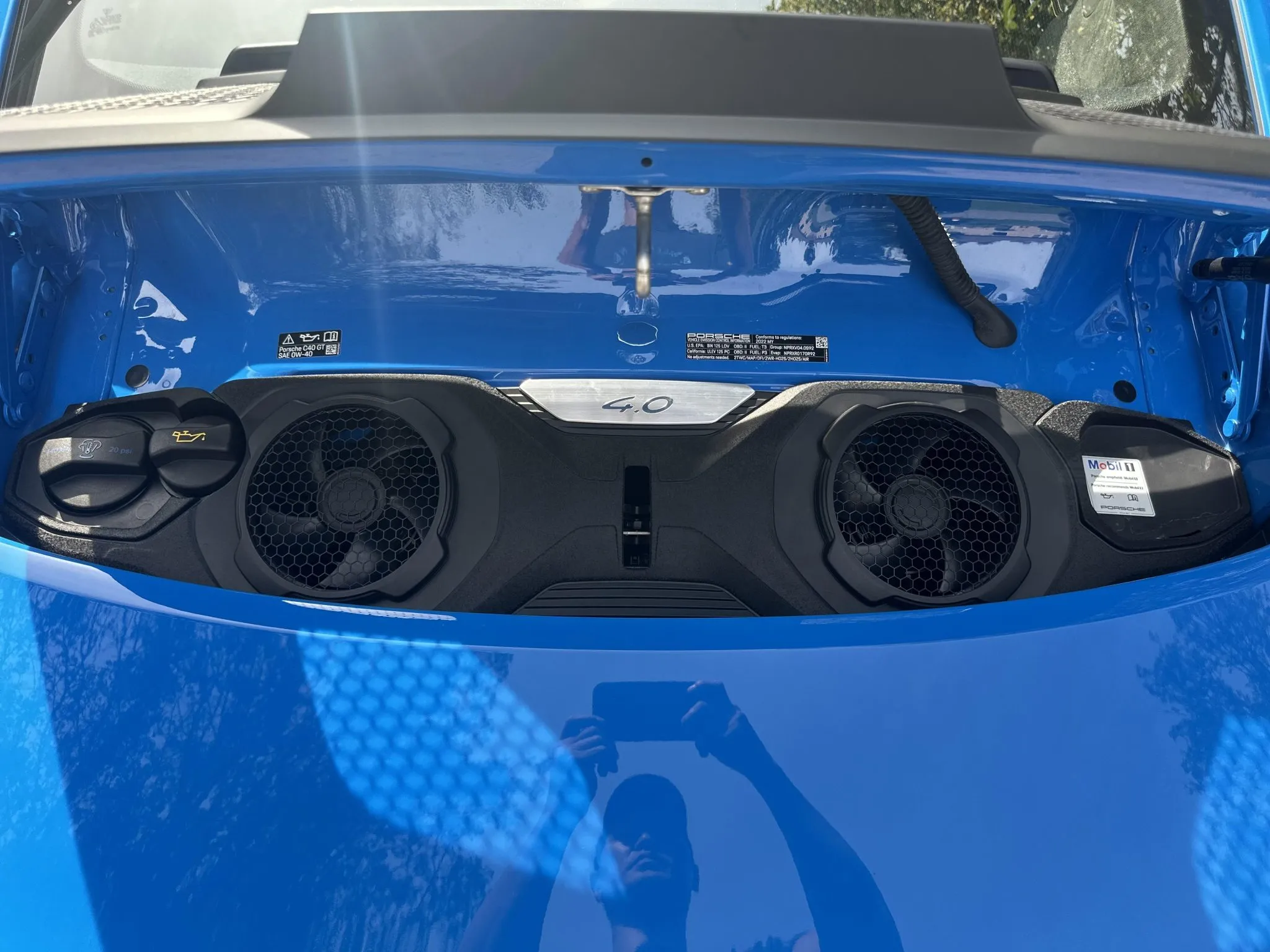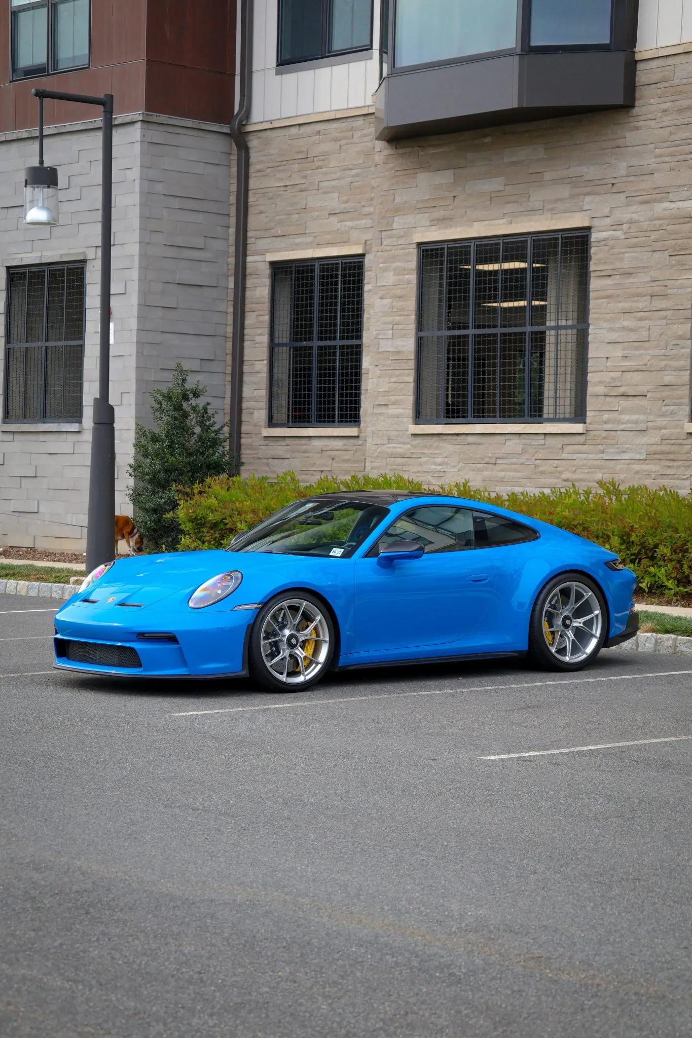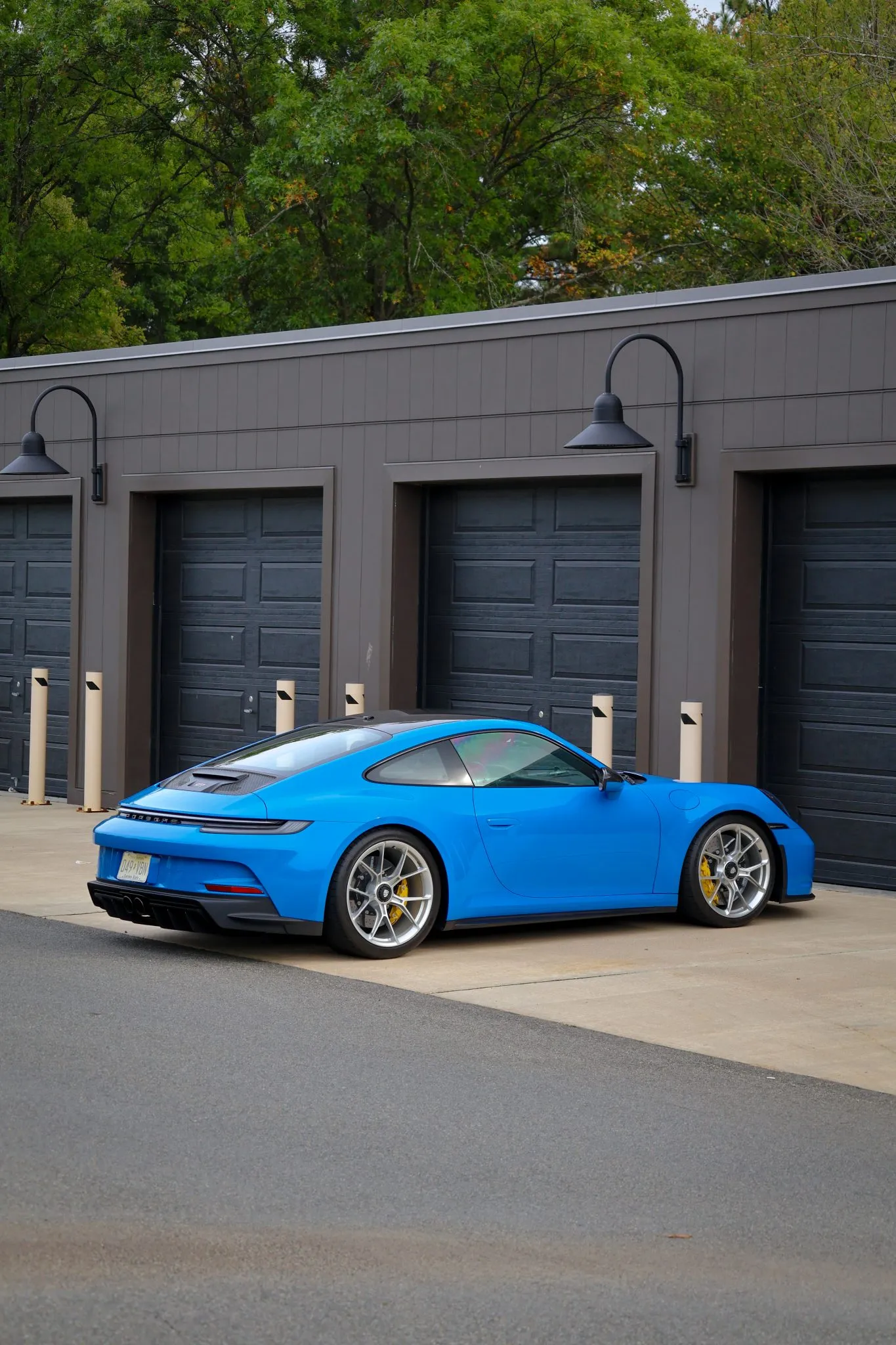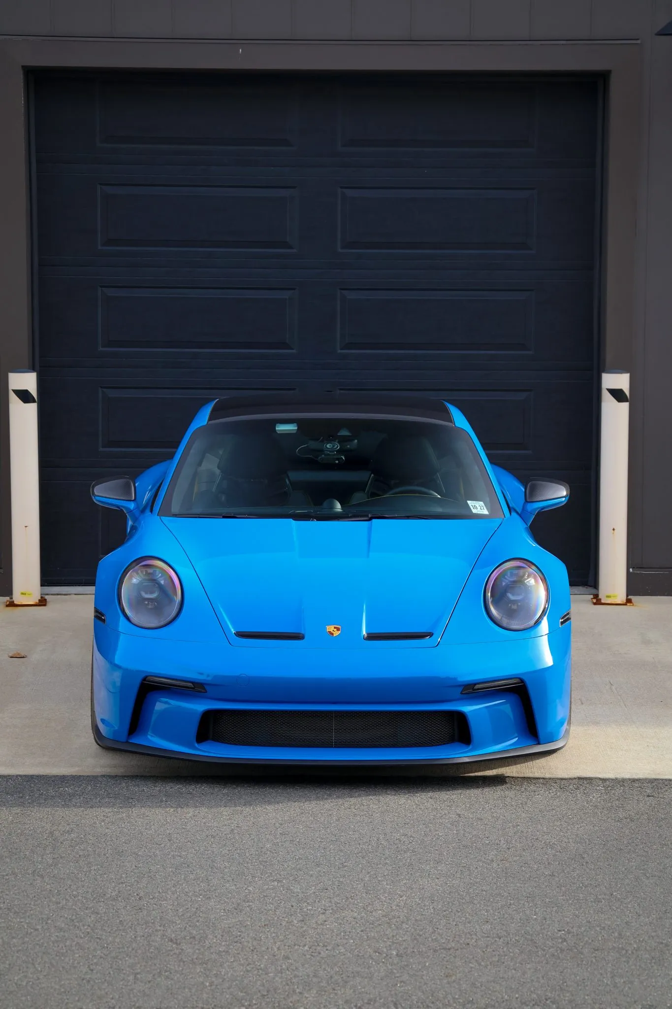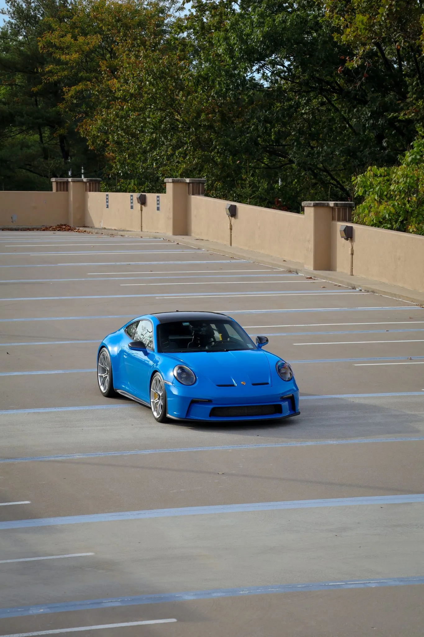 Finished in Shark Blue over black upholstery, the car is further equipped with a mechanical limited-slip differential, the Chrono package, a carbon-fiber roof, a front-axle lift system, LED-Matrix Design headlights with PDLS+, a speed-activated rear spoiler, rear-axle steering, 20″ and 21″ center-locking wheels, carbon-fiber full bucket seats, the Touring Package in Black, Porsche Communication Management, automatic climate control, a Bose sound system, and cruise control.