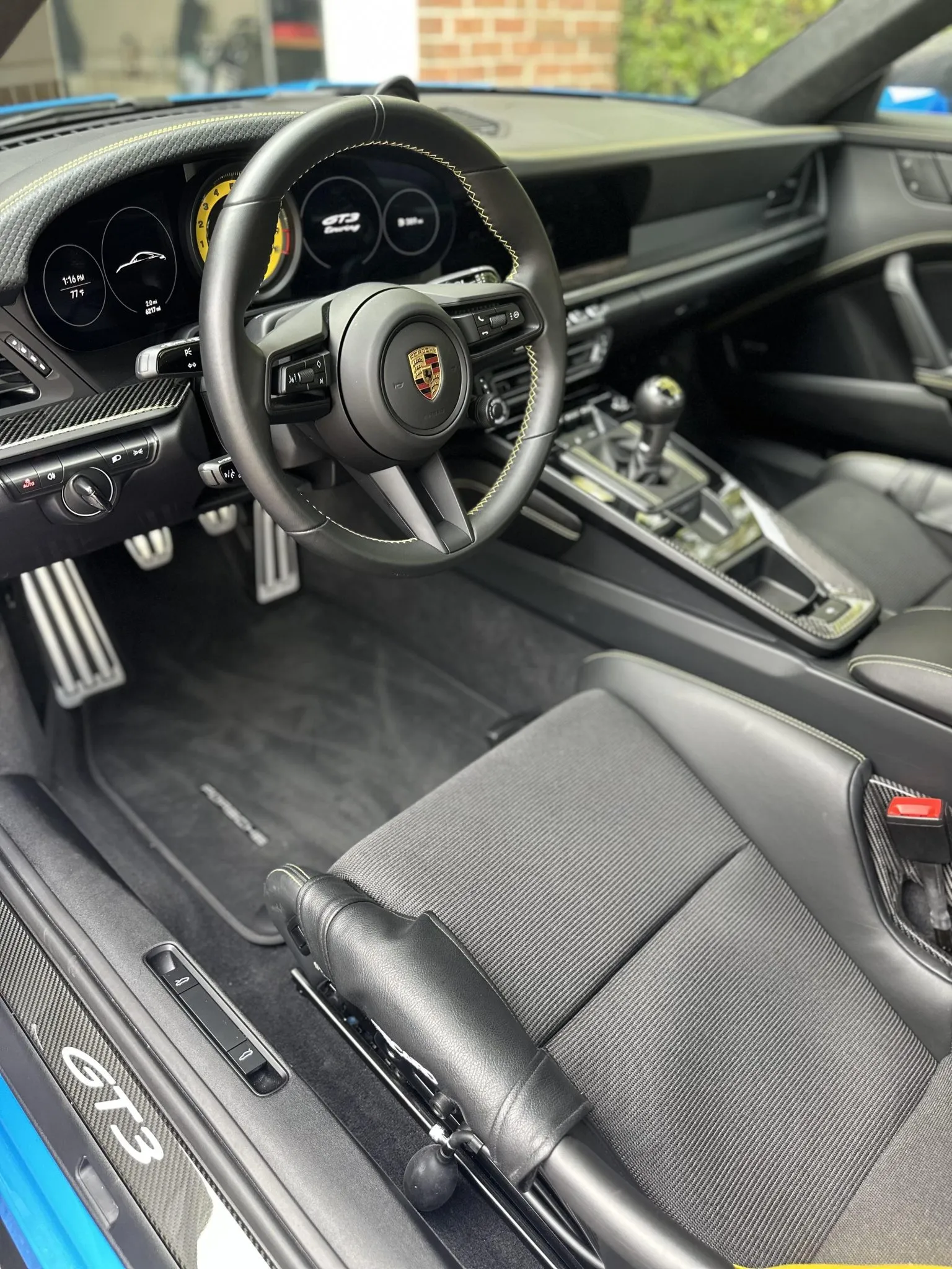 This 992 GT3 Touring was purchased by the seller in 2024 and is now offered at no reserve with a window sticker, the owner’s manual, service records, an accident-free Carfax report, and a clean New Jersey title in the seller’s name.