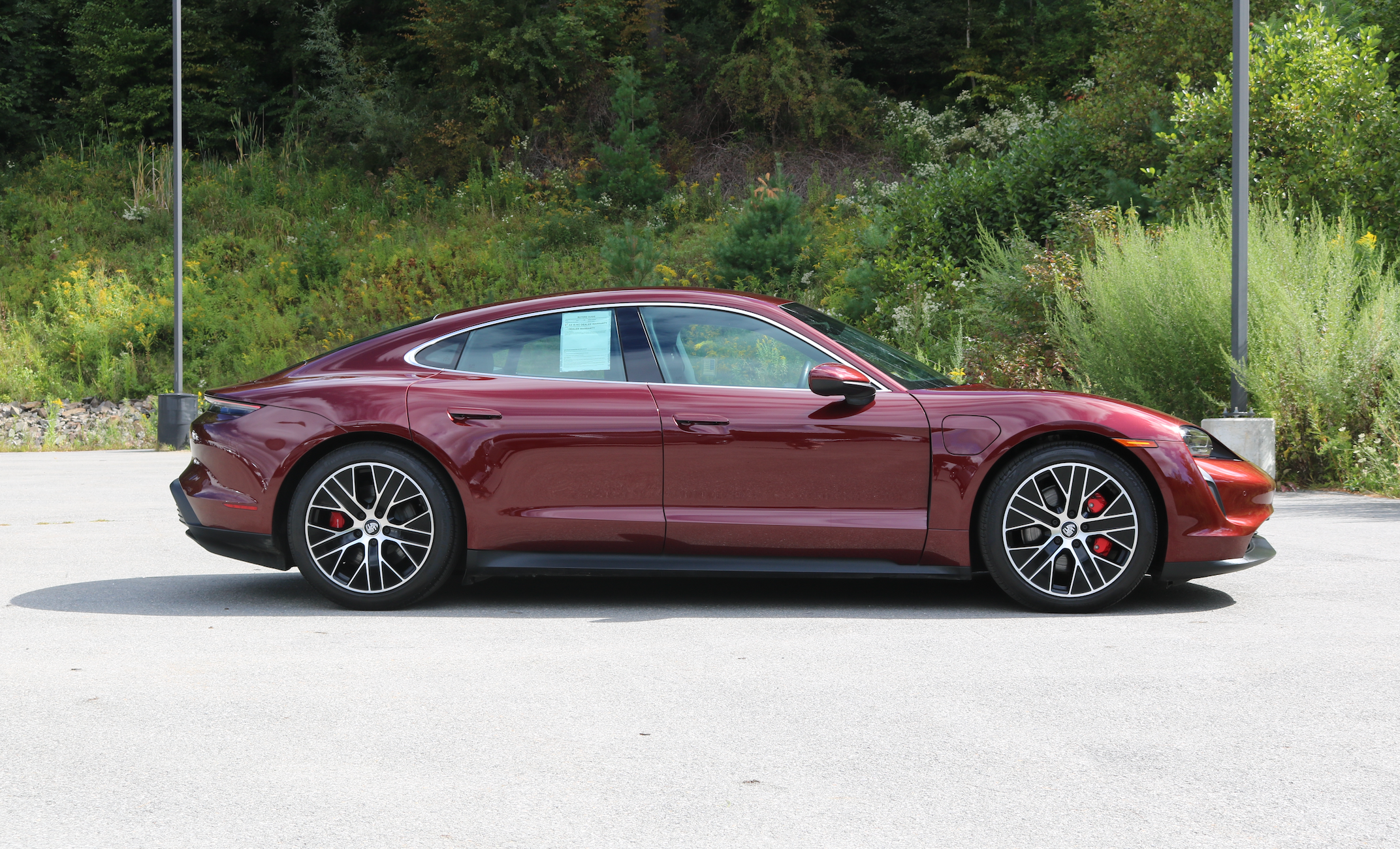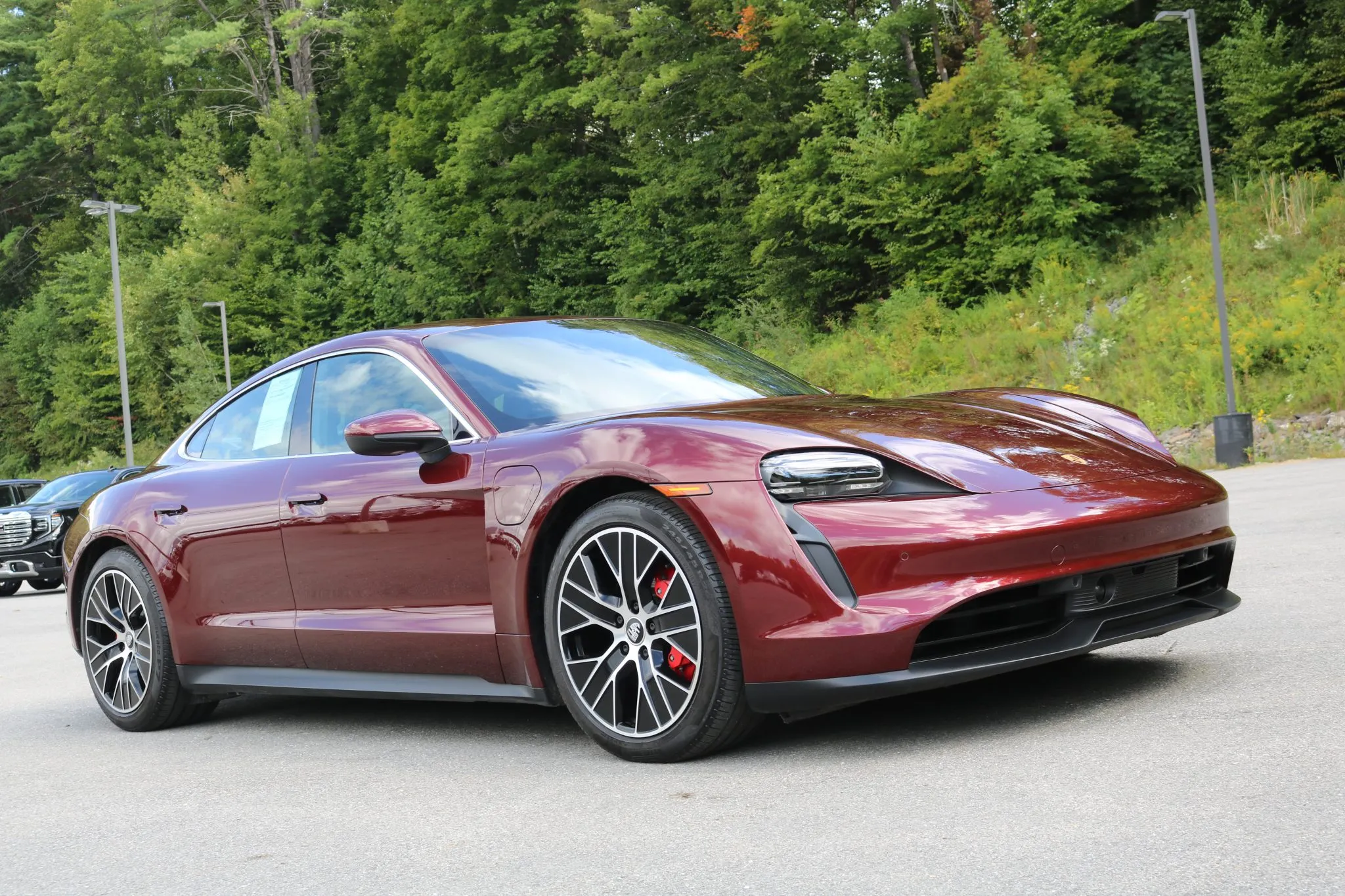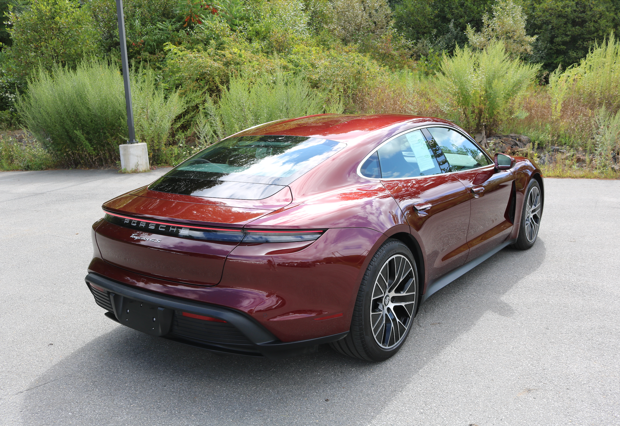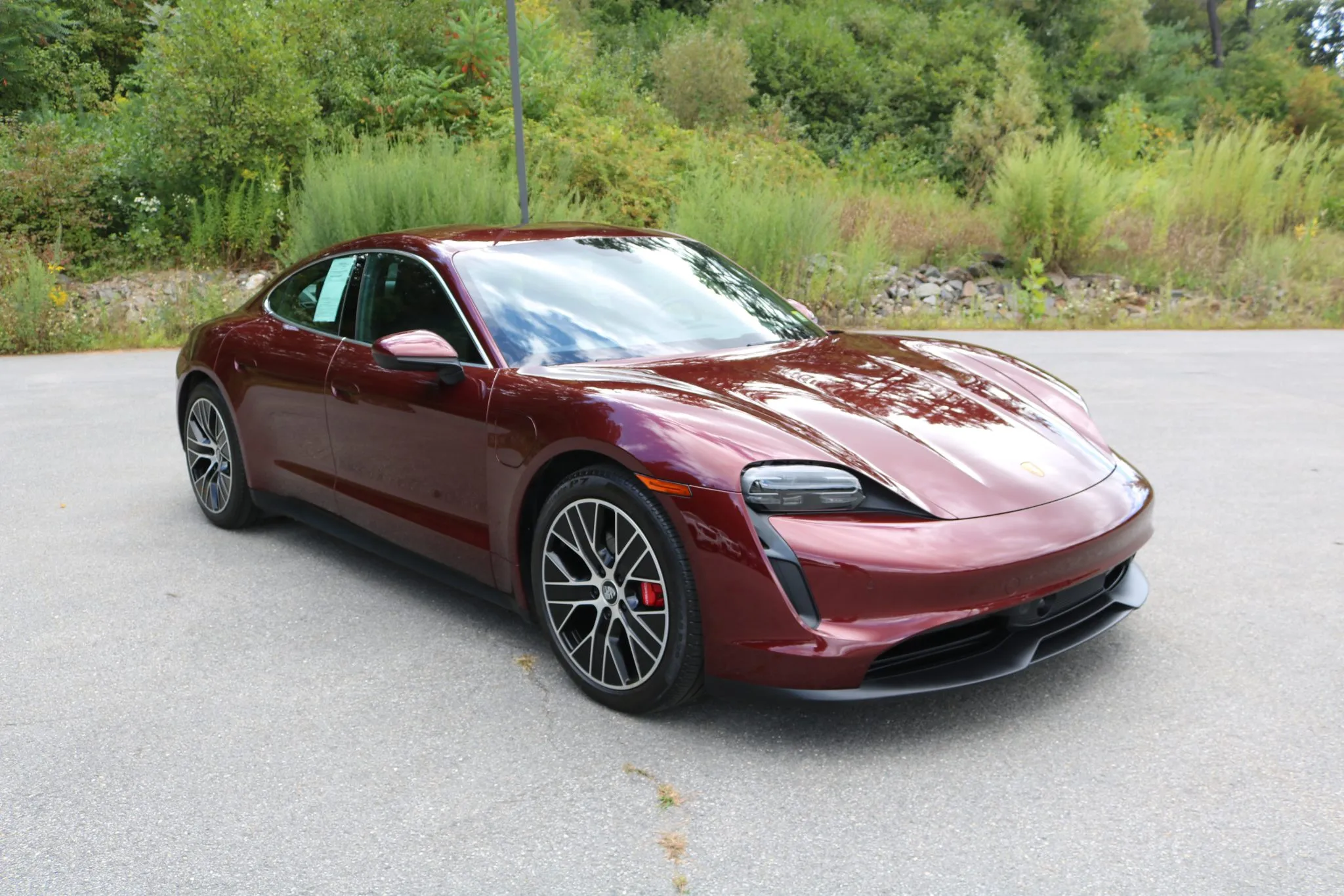 Equipment includes a 93.4-kWh lithium-ion battery pack, 20″ Taycan Turbo Aero wheels, heated and ventilated front seats, heated rear seats, adaptive cruise control, and multi-zone automatic climate control.