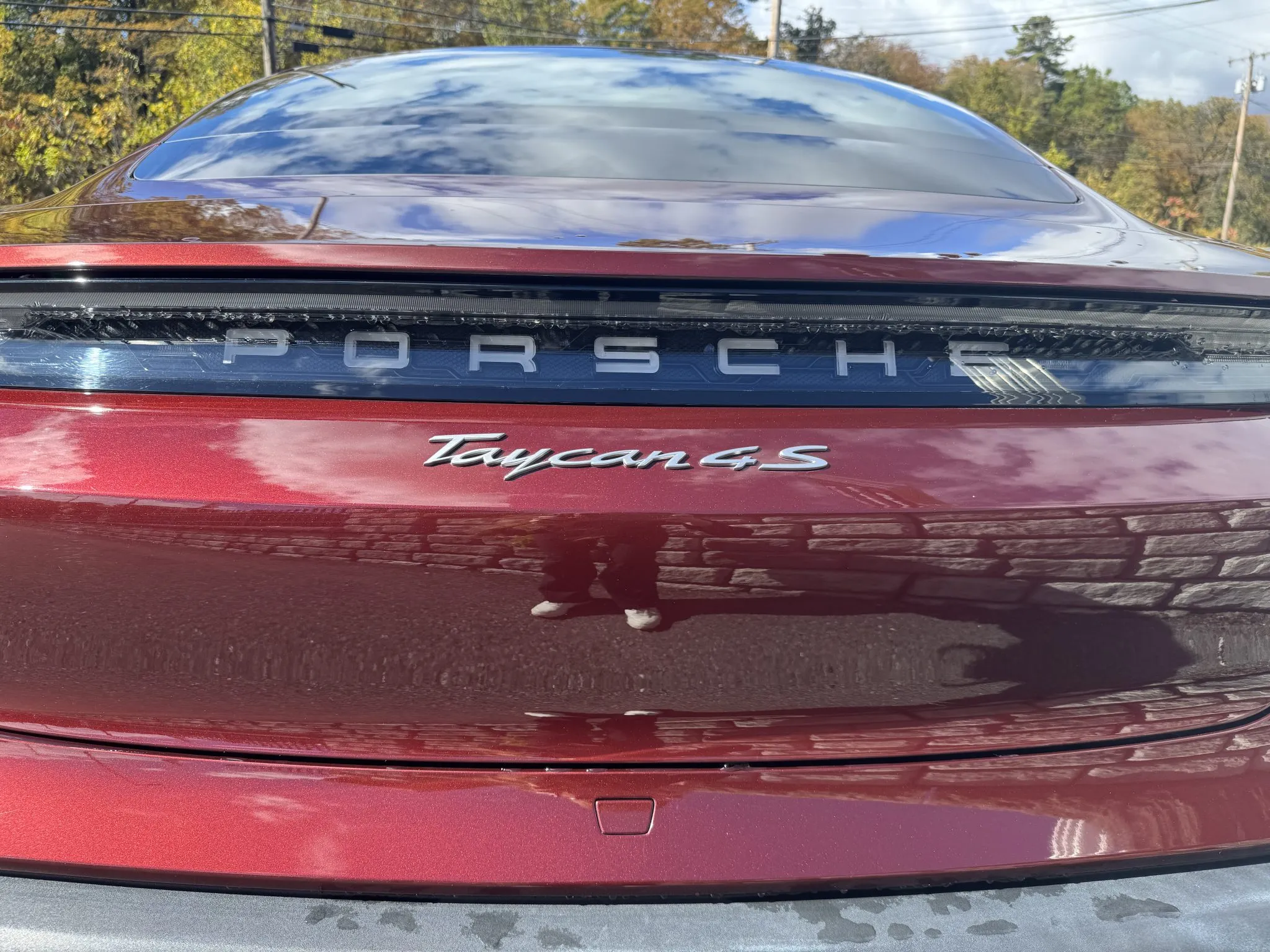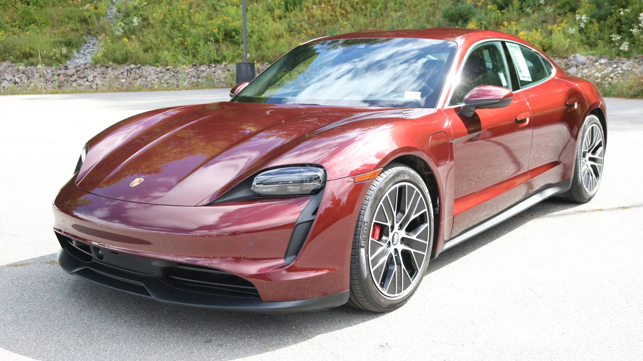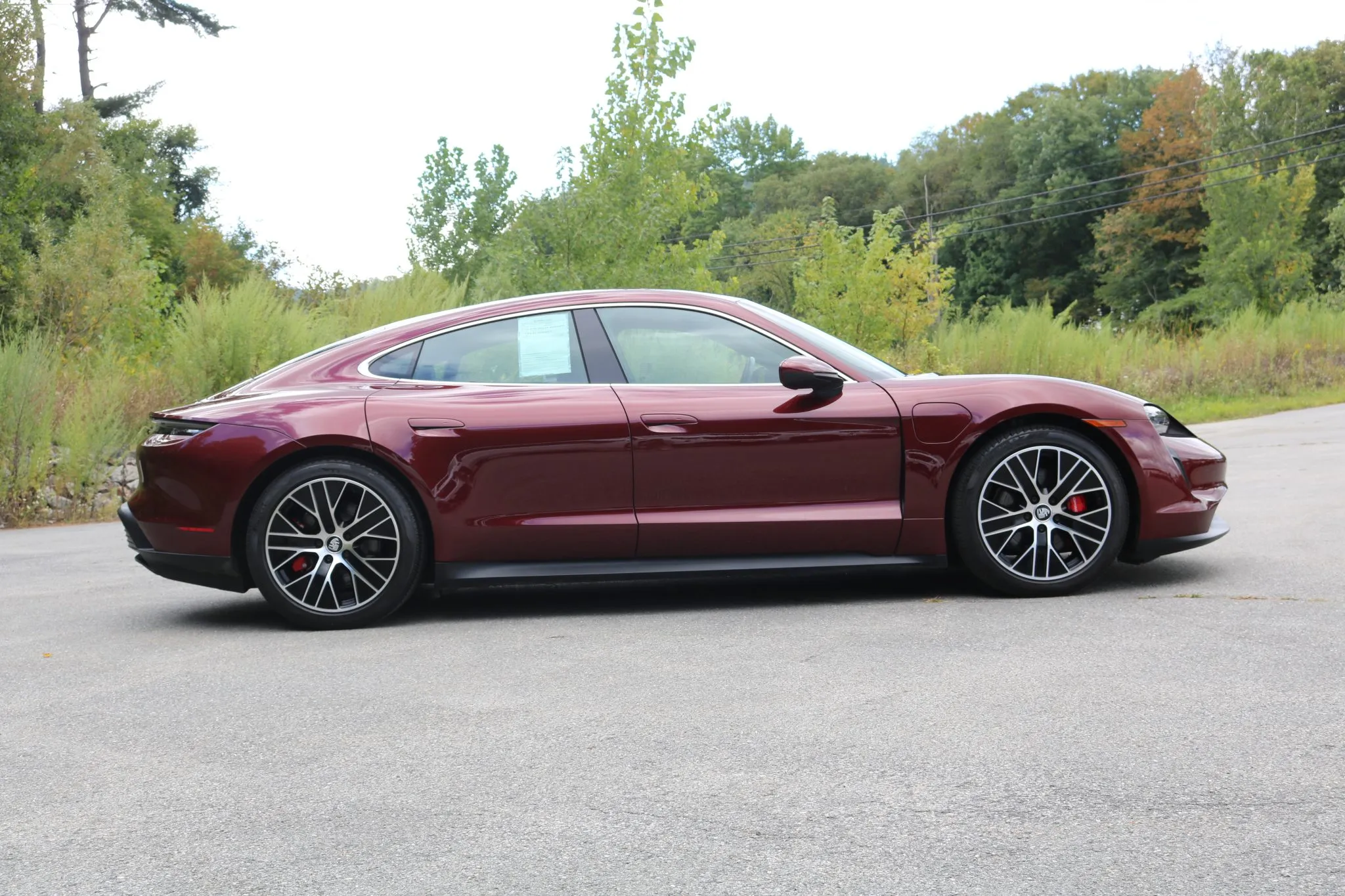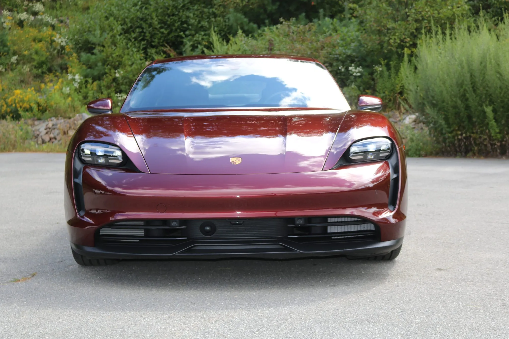 Equipment includes a 93.4-kWh lithium-ion battery pack, 20″ Taycan Turbo Aero wheels, heated and ventilated front seats, heated rear seats, adaptive cruise control, and multi-zone automatic climate control.