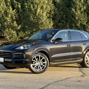 Equipment includes the Sport Chrono Package, a 93.4-kWh lithium-ion battery pack, 21″ RS Spyder Design wheels, heated and ventilated power-adjustable front seats, a Bose sound system, a surround-view camera system, front and rear parking sensors, navigation, and multi-zone automatic climate control.