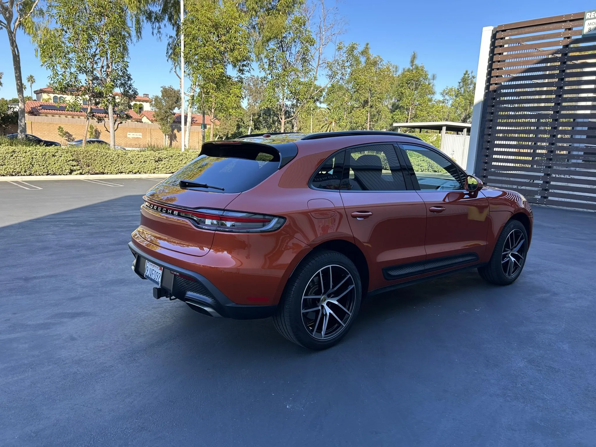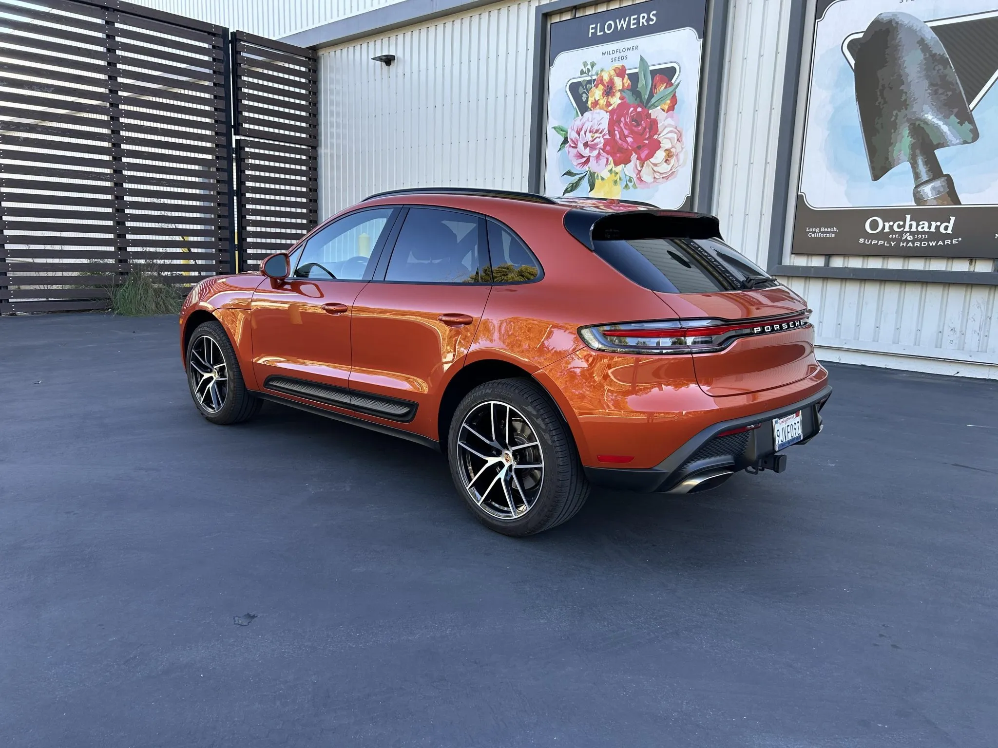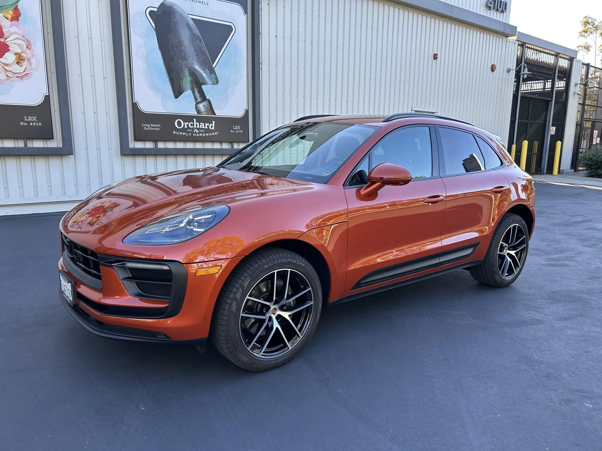 This 2023 Porsche Macan is finished in Papaya Metallic over Black leather with Papaya stitching, and it was ordered with the Premium Plus and Leather packages as well as a panoramic sunroof, 20″ Macan S wheels, heated and ventilated front seats, a surround-view camera, adaptive cruise control, and LED headlights with PDLS+.