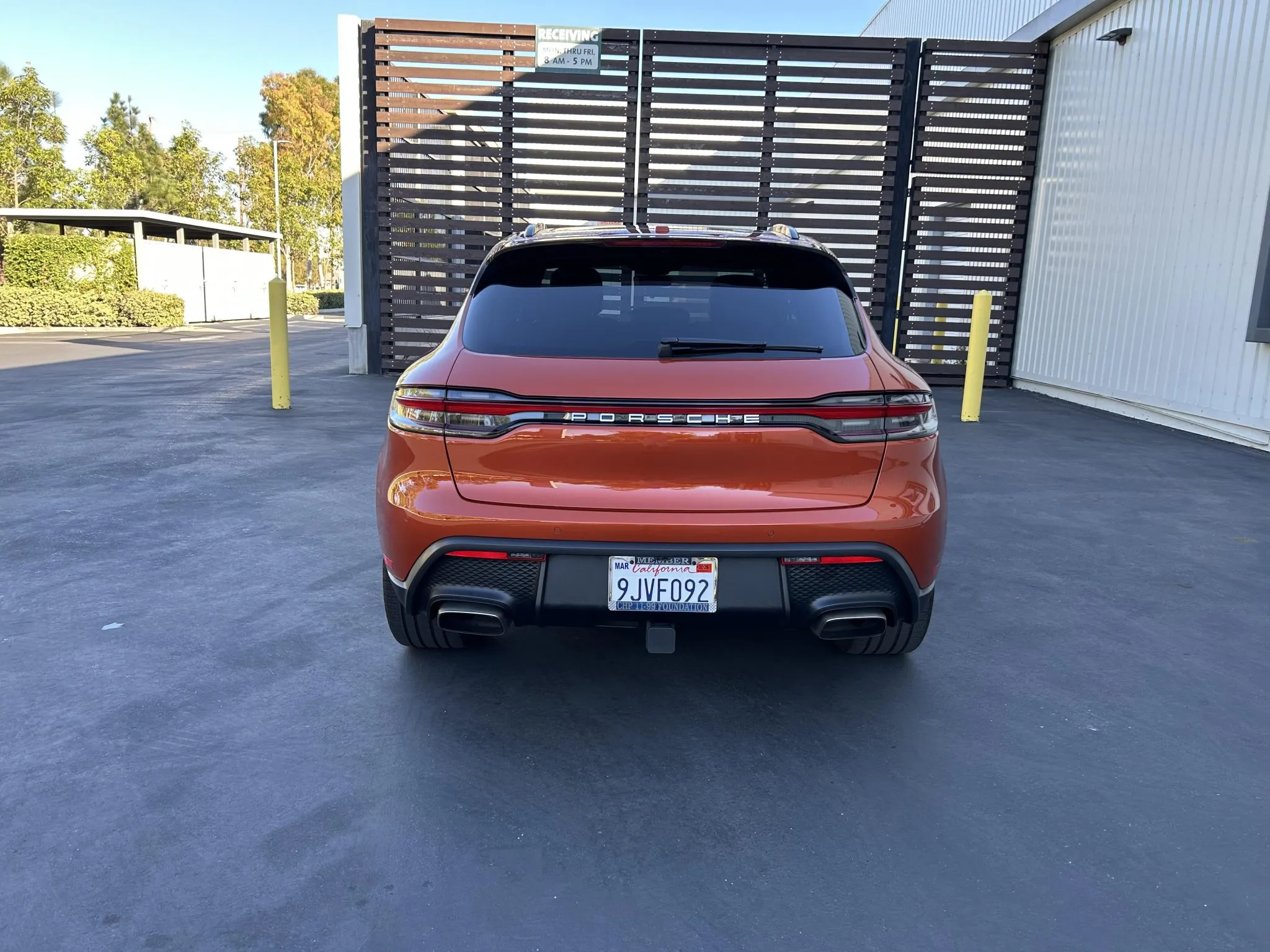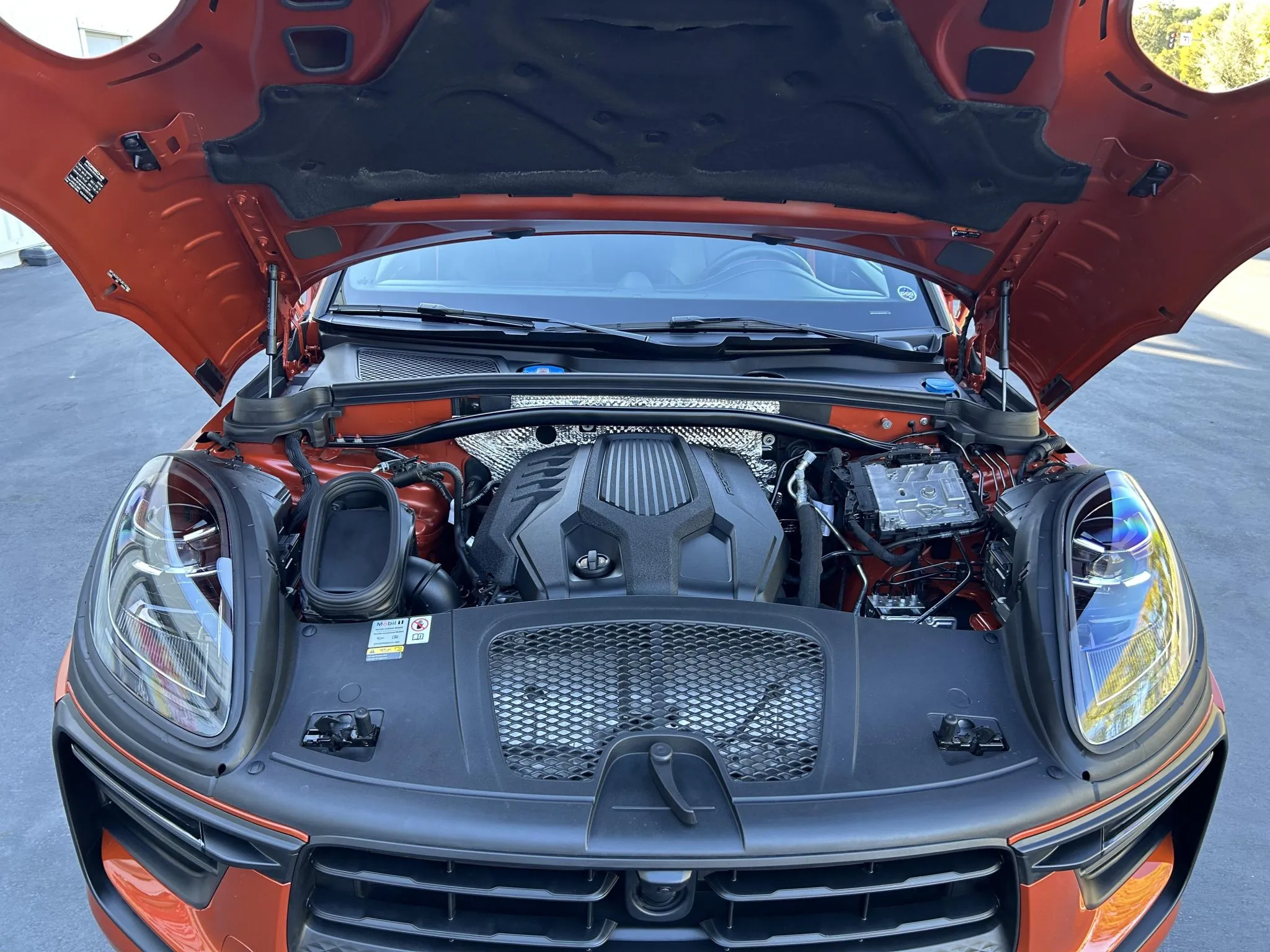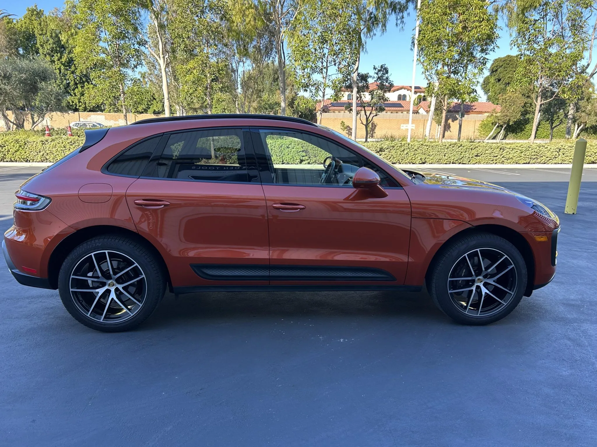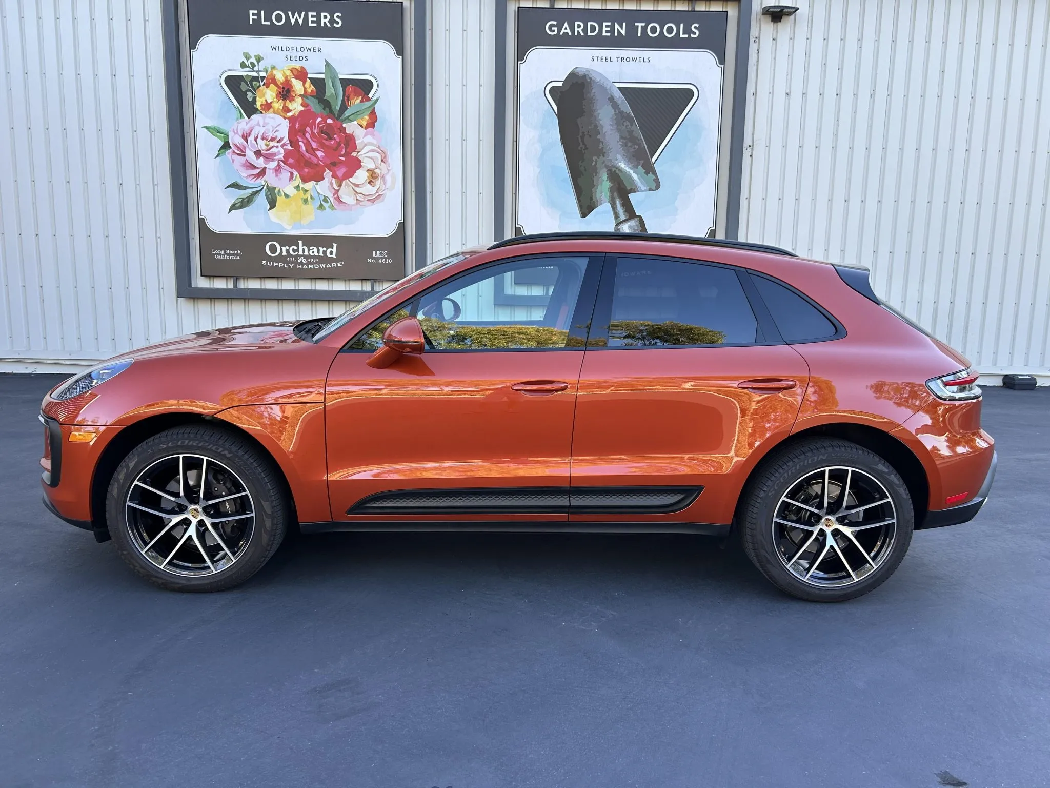 This 2023 Porsche Macan is finished in Papaya Metallic over Black leather with Papaya stitching, and it was ordered with the Premium Plus and Leather packages as well as a panoramic sunroof, 20″ Macan S wheels, heated and ventilated front seats, a surround-view camera, adaptive cruise control, and LED headlights with PDLS+.