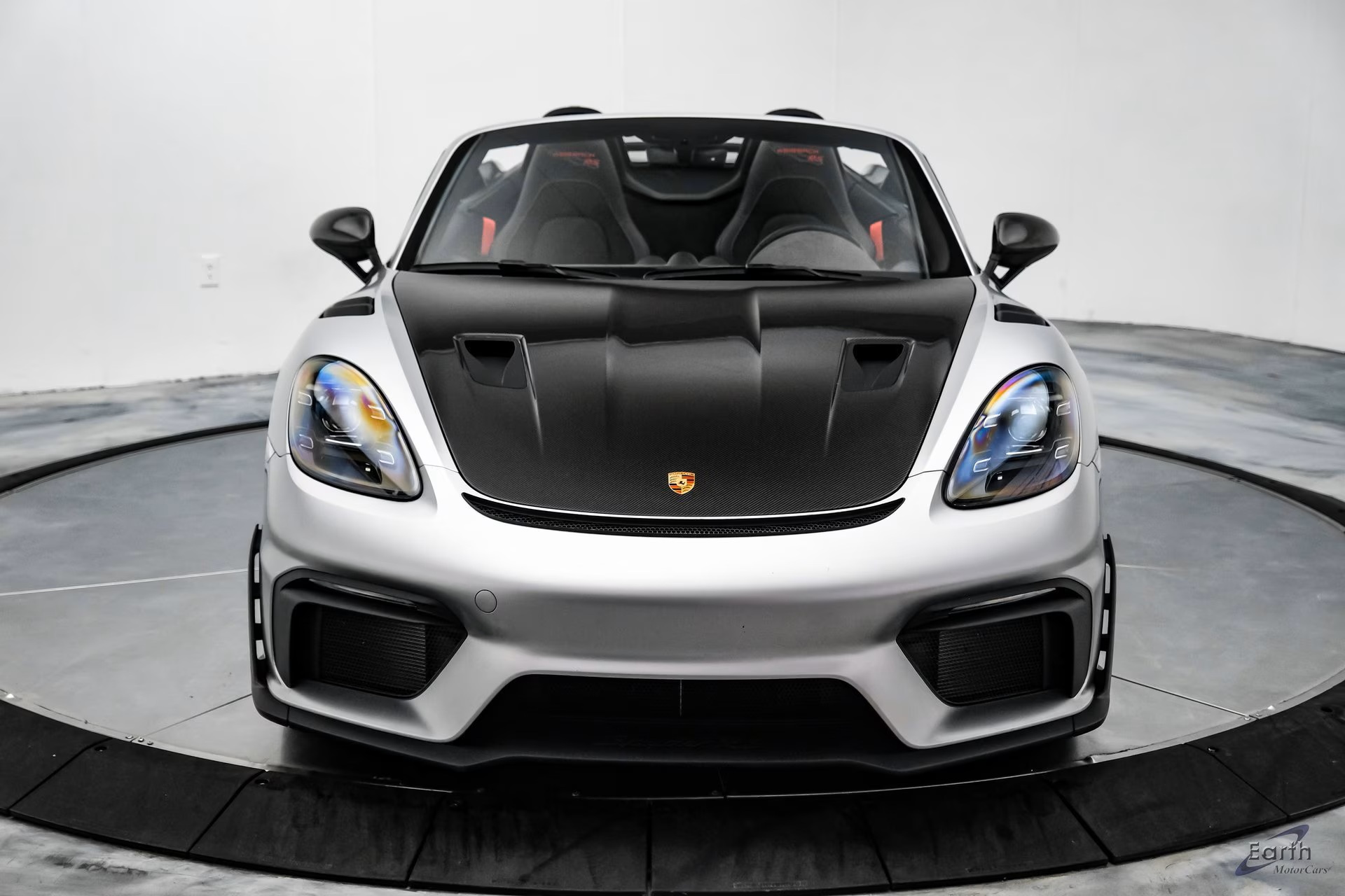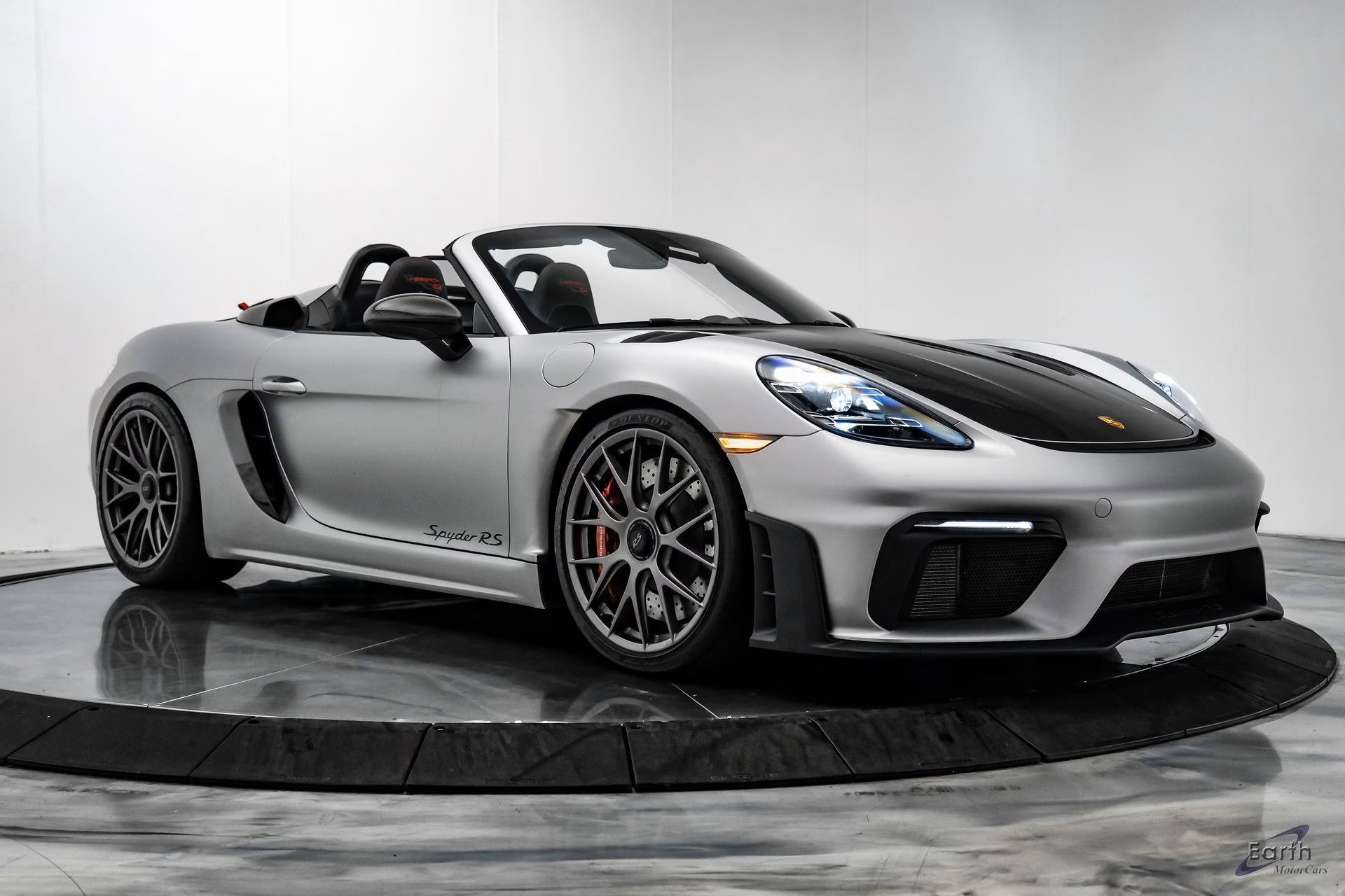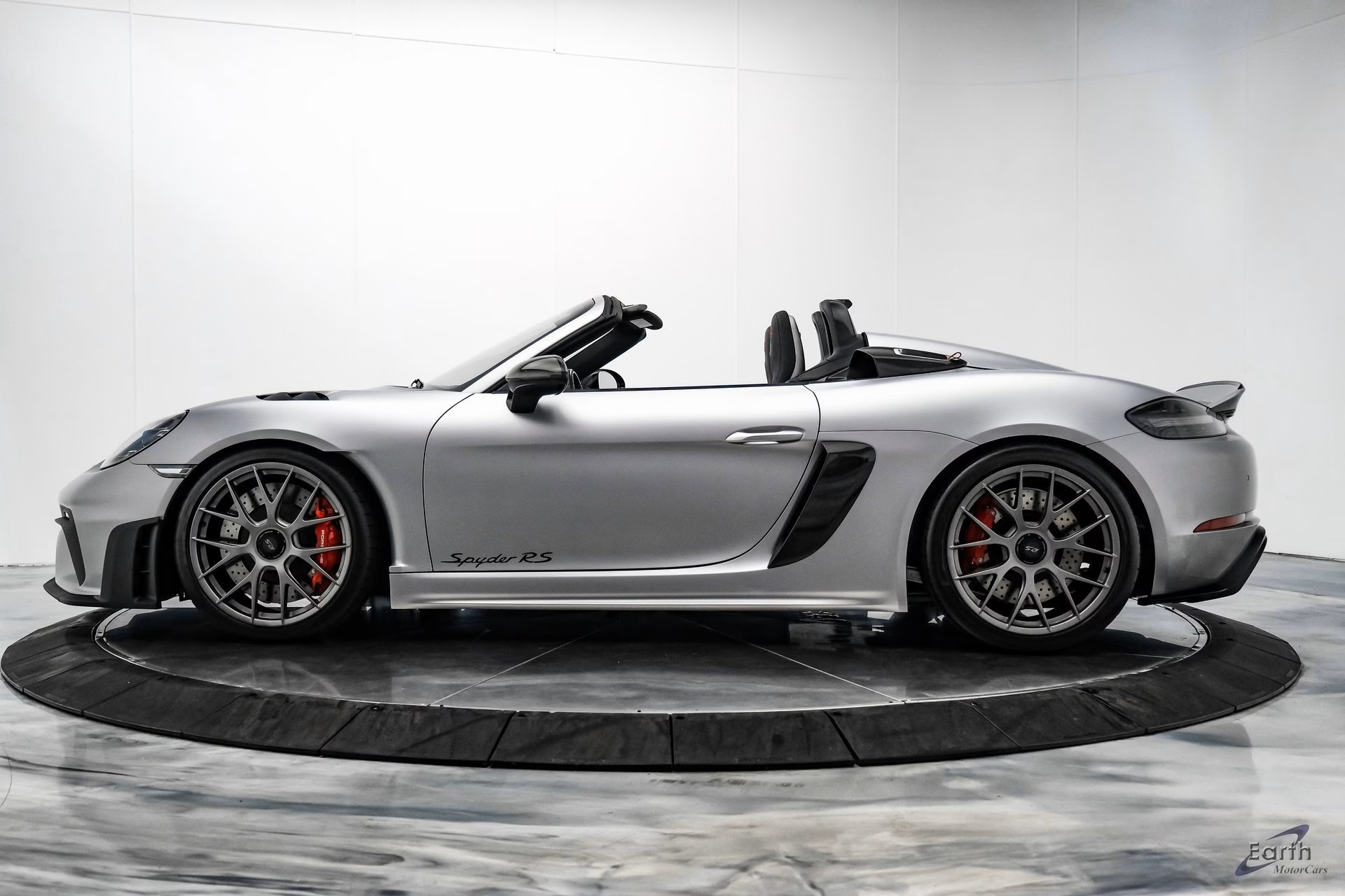 Earth MotorCars is Proud to offer this amazing: 2024 Porsche 718 Spyder RS Weissach Package 20″ Cayman GT4 RS Magnesium Wheels Clean CARFAX. 18-Way Adaptive Sport Seats Plus, 4-Wheel Disc Brakes, ABS brakes, Air Conditioning, Auto Dimming Mirrors w/Integrated Rain Sensor, Automatic temperature control, BOSE Surround Sound System, Bumpers: body-color, Chrono Package, Chrono Stopwatch Dial in Guards Red, Delay-off headlights, Door Pull Loops in Guards Red, Driver vanity mirror, Dual front impact airbags, Dual front side impact airbags, Electronic Stability Control, Exterior Parking Camera Rear, Front Axle Lift System, Front Bucket Seats, Front Center Armrest, Glass rear window, Heated door mirrors, Heated Seats, Illuminated Door-Sill Guards in Carbon Fiber, Illuminated entry, Instrument Dials in Guards Red, Leather Seat Trim w/Race-Tex Centers & Lthr Int, LED Headlights w/Porsche Dynamic Light System, Light Design Package, Low tire pressure warning, Navigation System, Outside temperature display, Passenger vanity mirror, Porsche Communication Management, Rear window defroster, Remote keyless entry, Seat Belts in Guards Red, Security system, Smartphone Compartment, Smoking Package, Speed control, Spoiler, Steering Wheel & Gear Lever/Selector in Black Lthr, Sun Visors in Leather, Tachometer, Traction control, Tri-Zone A/C, Trip computer, Variably intermittent wipers, Weissach Package, Wheels: 20″ 718 Cayman GT4 RS Forged Magnesium.