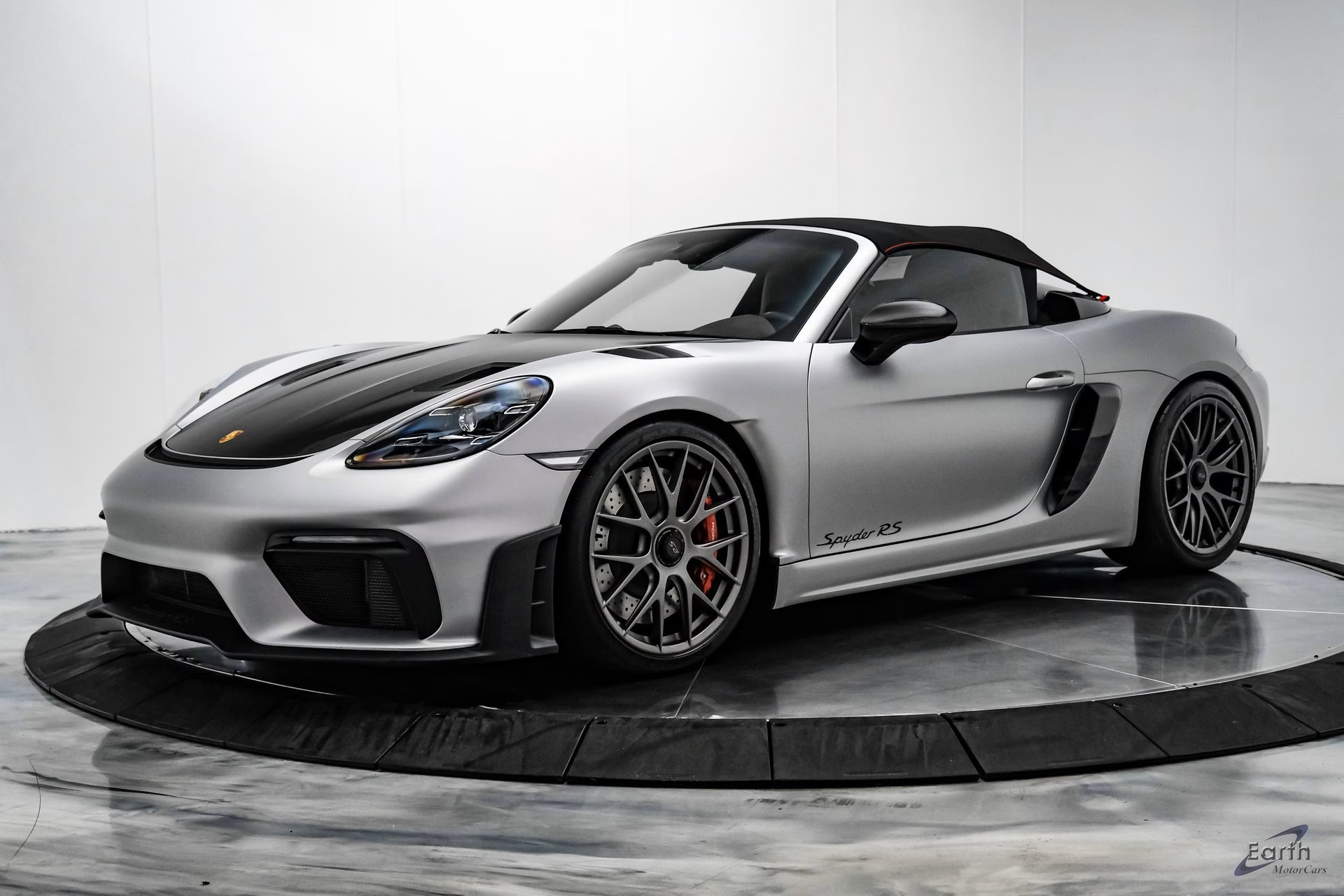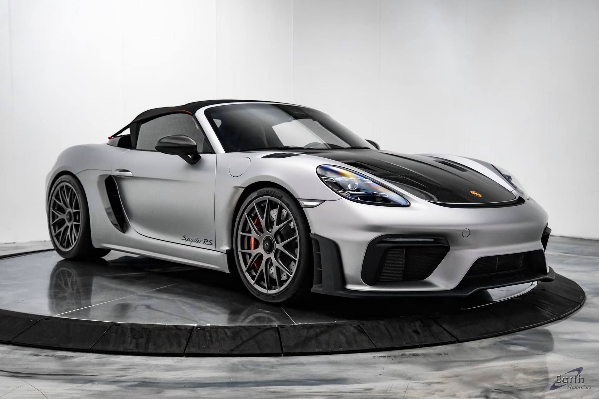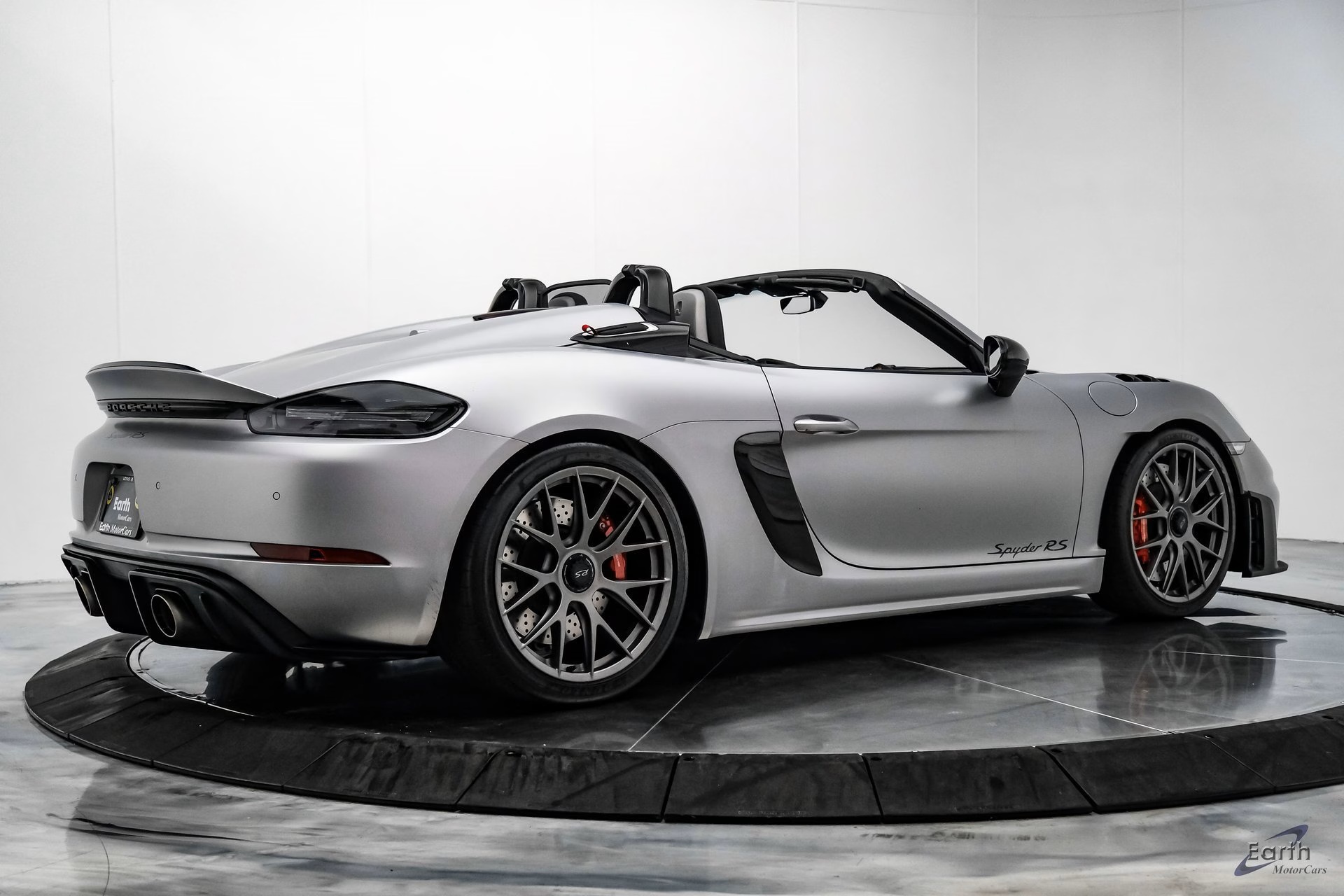 Earth MotorCars is Proud to offer this amazing: 2024 Porsche 718 Spyder RS Weissach Package 20″ Cayman GT4 RS Magnesium Wheels Clean CARFAX. 18-Way Adaptive Sport Seats Plus, 4-Wheel Disc Brakes, ABS brakes, Air Conditioning, Auto Dimming Mirrors w/Integrated Rain Sensor, Automatic temperature control, BOSE Surround Sound System, Bumpers: body-color, Chrono Package, Chrono Stopwatch Dial in Guards Red, Delay-off headlights, Door Pull Loops in Guards Red, Driver vanity mirror, Dual front impact airbags, Dual front side impact airbags, Electronic Stability Control, Exterior Parking Camera Rear, Front Axle Lift System, Front Bucket Seats, Front Center Armrest, Glass rear window, Heated door mirrors, Heated Seats, Illuminated Door-Sill Guards in Carbon Fiber, Illuminated entry, Instrument Dials in Guards Red, Leather Seat Trim w/Race-Tex Centers & Lthr Int, LED Headlights w/Porsche Dynamic Light System, Light Design Package, Low tire pressure warning, Navigation System, Outside temperature display, Passenger vanity mirror, Porsche Communication Management, Rear window defroster, Remote keyless entry, Seat Belts in Guards Red, Security system, Smartphone Compartment, Smoking Package, Speed control, Spoiler, Steering Wheel & Gear Lever/Selector in Black Lthr, Sun Visors in Leather, Tachometer, Traction control, Tri-Zone A/C, Trip computer, Variably intermittent wipers, Weissach Package, Wheels: 20″ 718 Cayman GT4 RS Forged Magnesium.