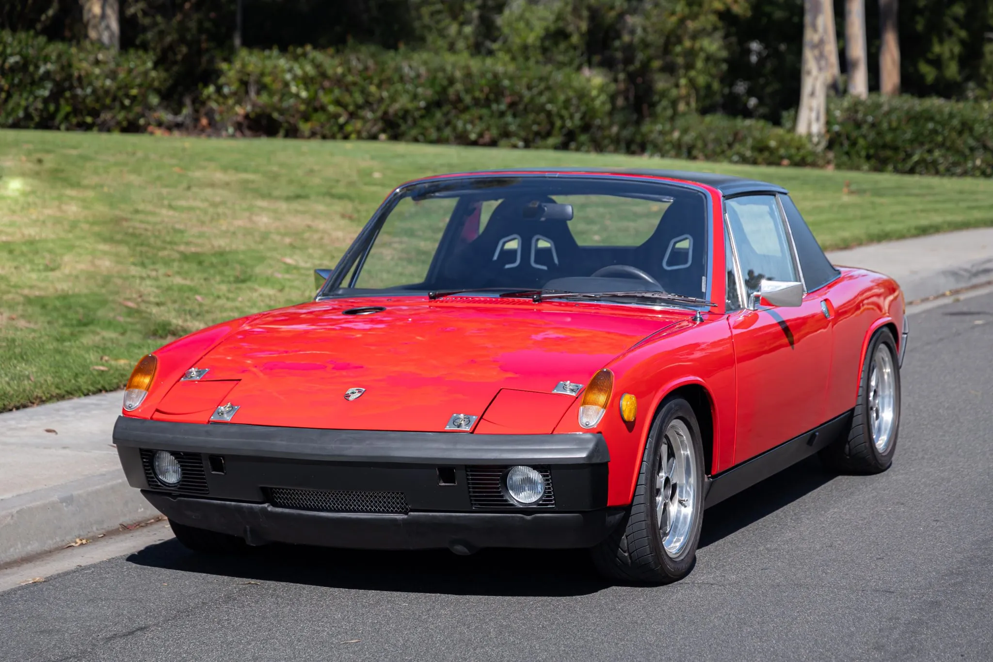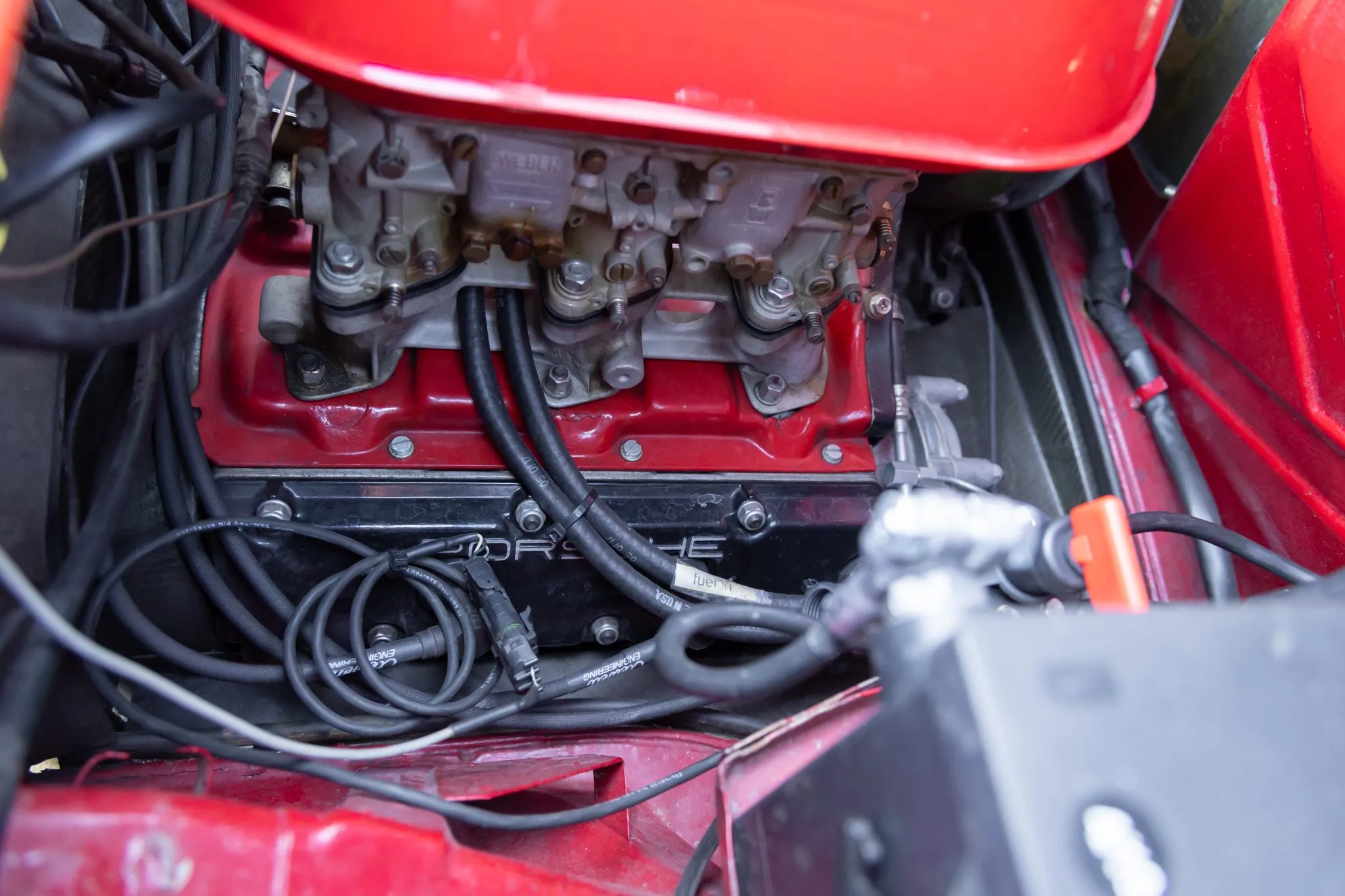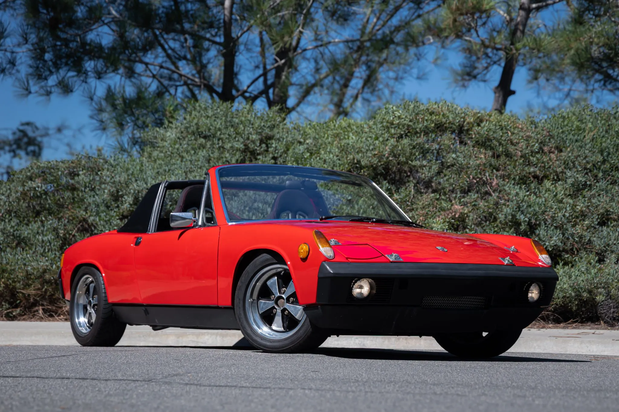 This 1971 Porsche 914 was modified in 2019 with the installation of a 911SC-sourced 3.0-liter flat-six equipped with dual three-barrel Weber carburetors, re-ground camshafts, GT-style headers, and a Clewett engine management system.
