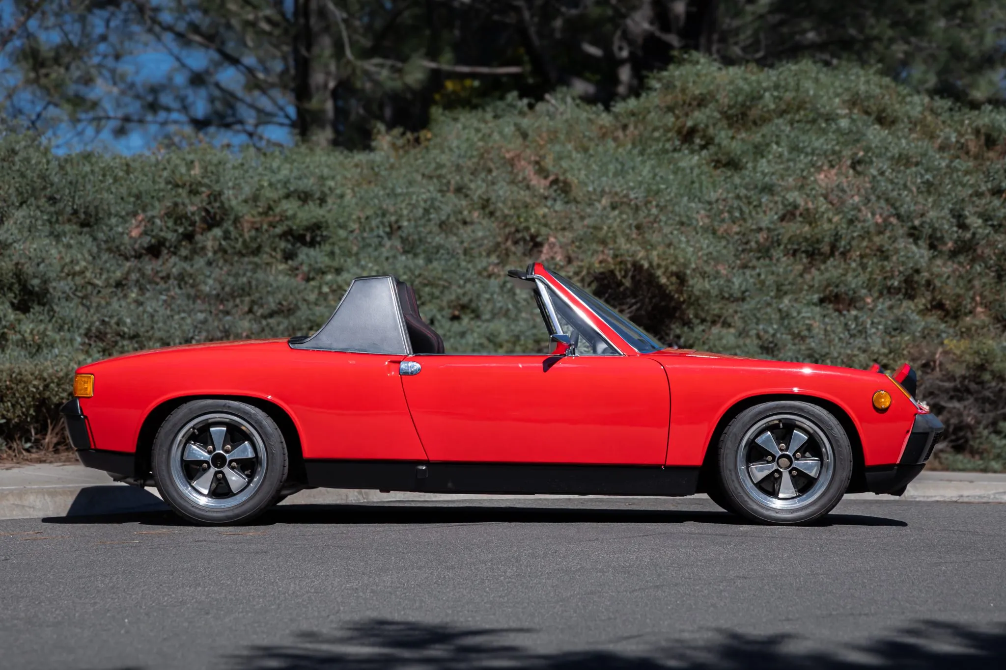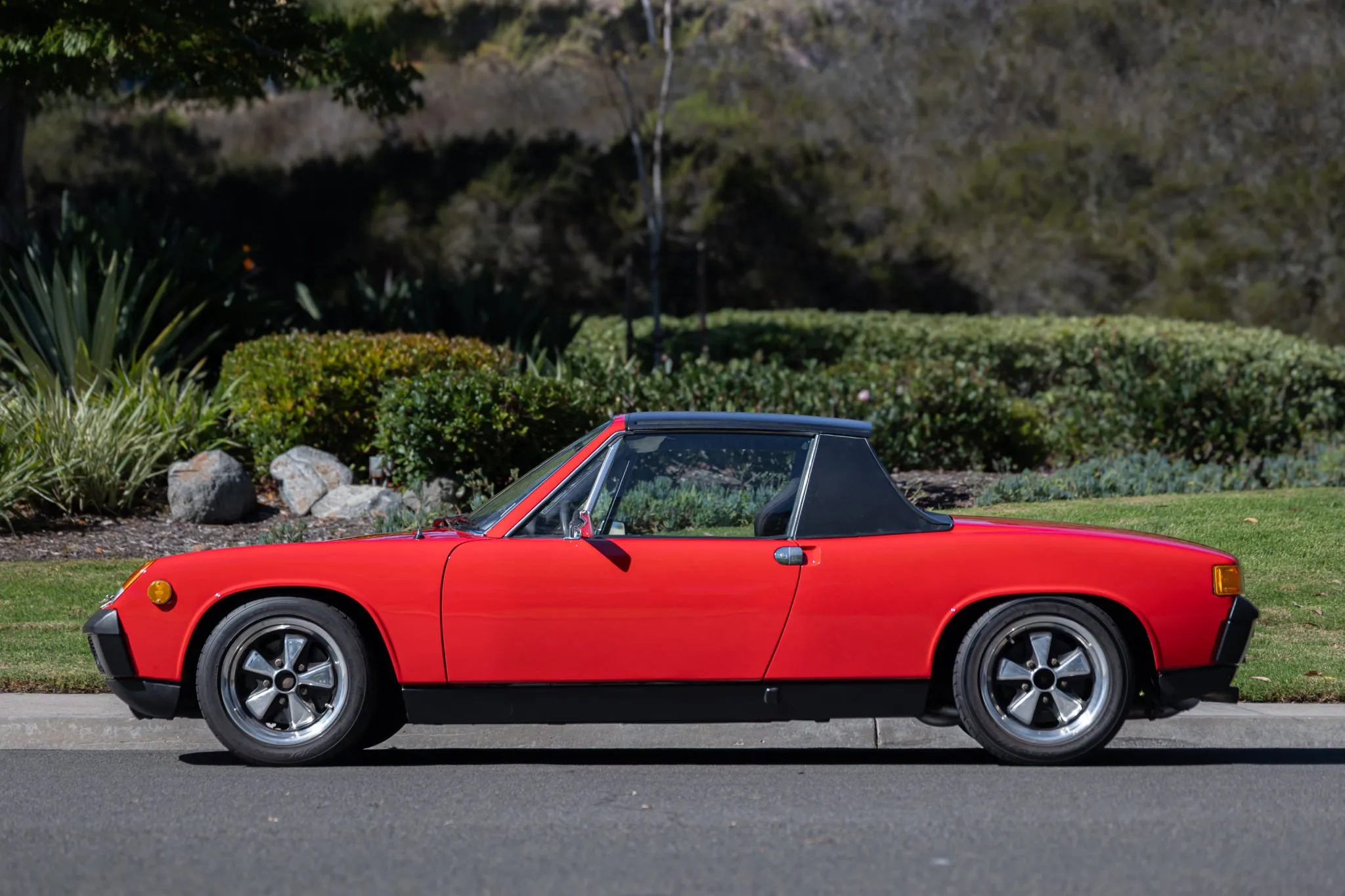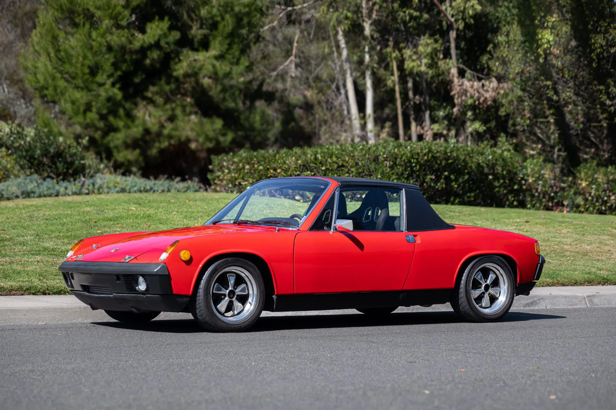 This 1971 Porsche 914 was modified in 2019 with the installation of a 911SC-sourced 3.0-liter flat-six equipped with dual three-barrel Weber carburetors, re-ground camshafts, GT-style headers, and a Clewett engine management system.