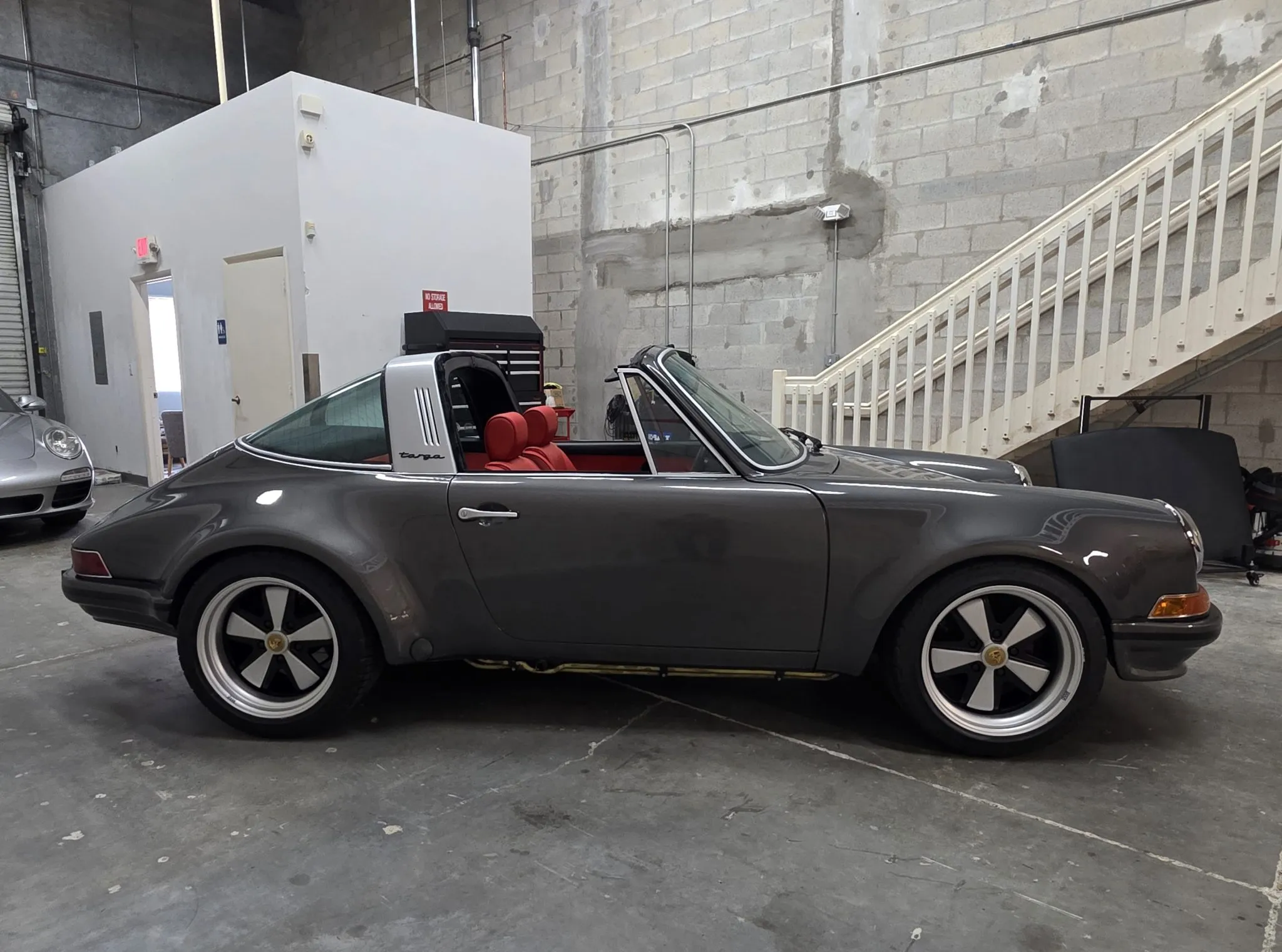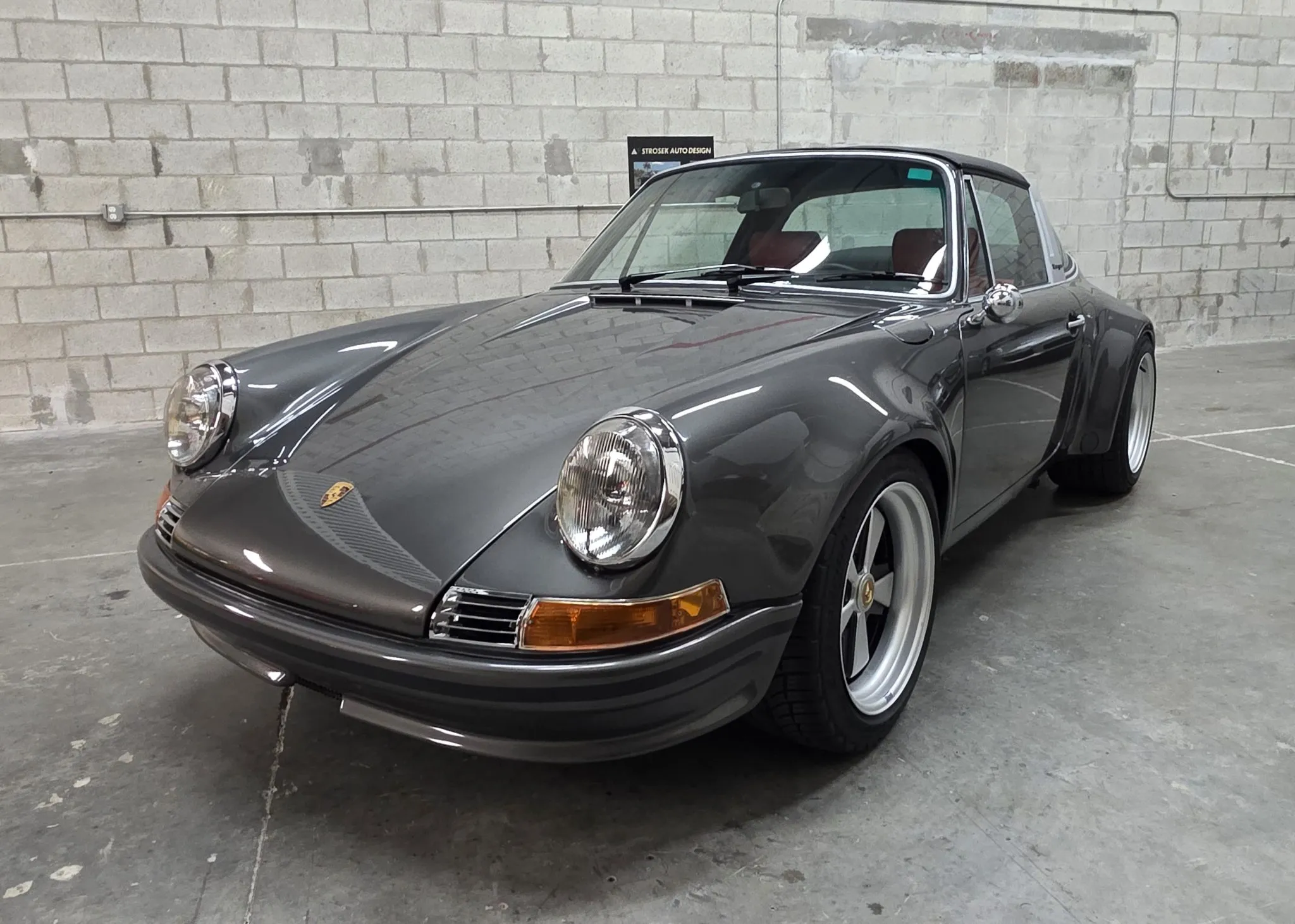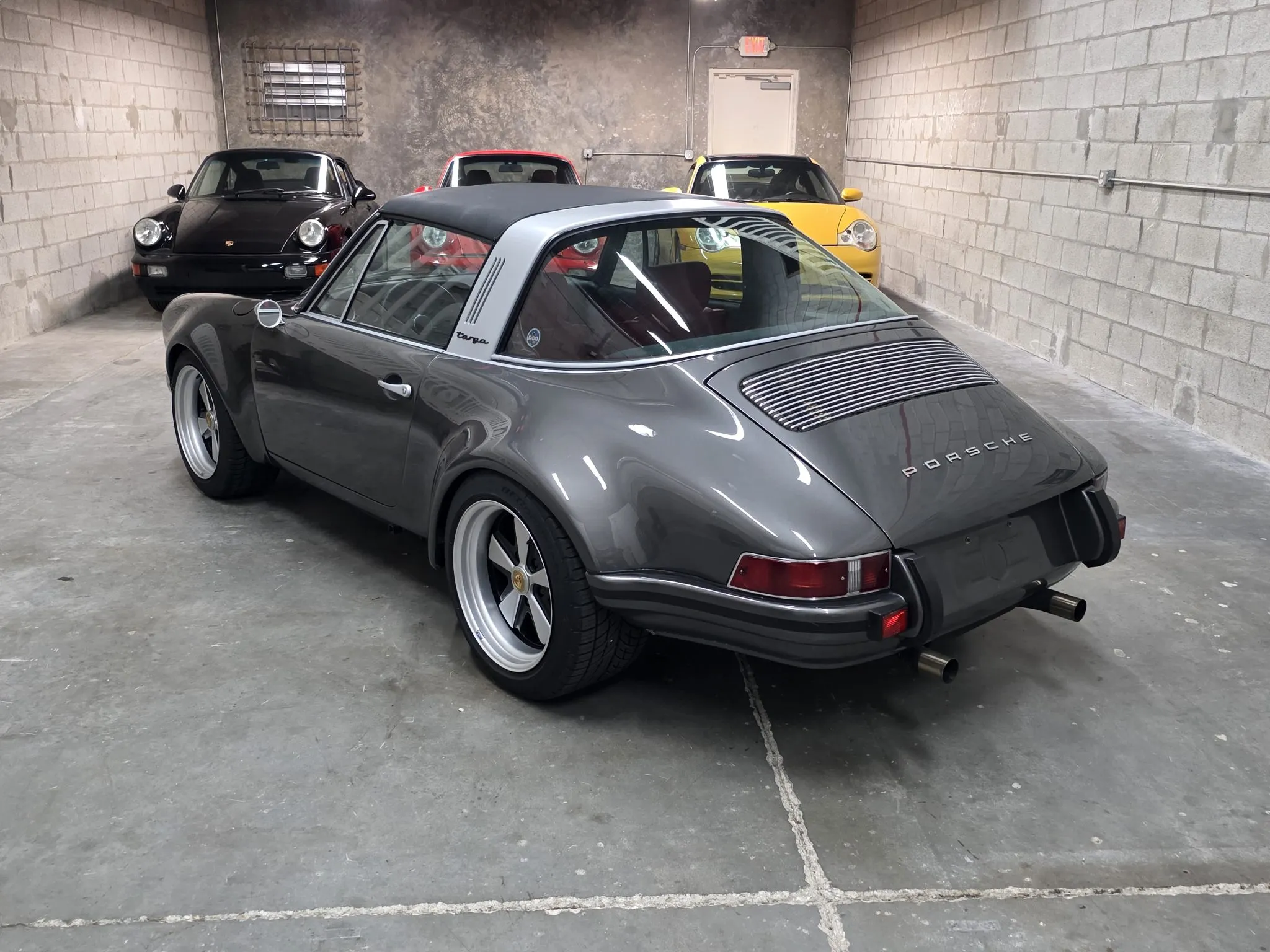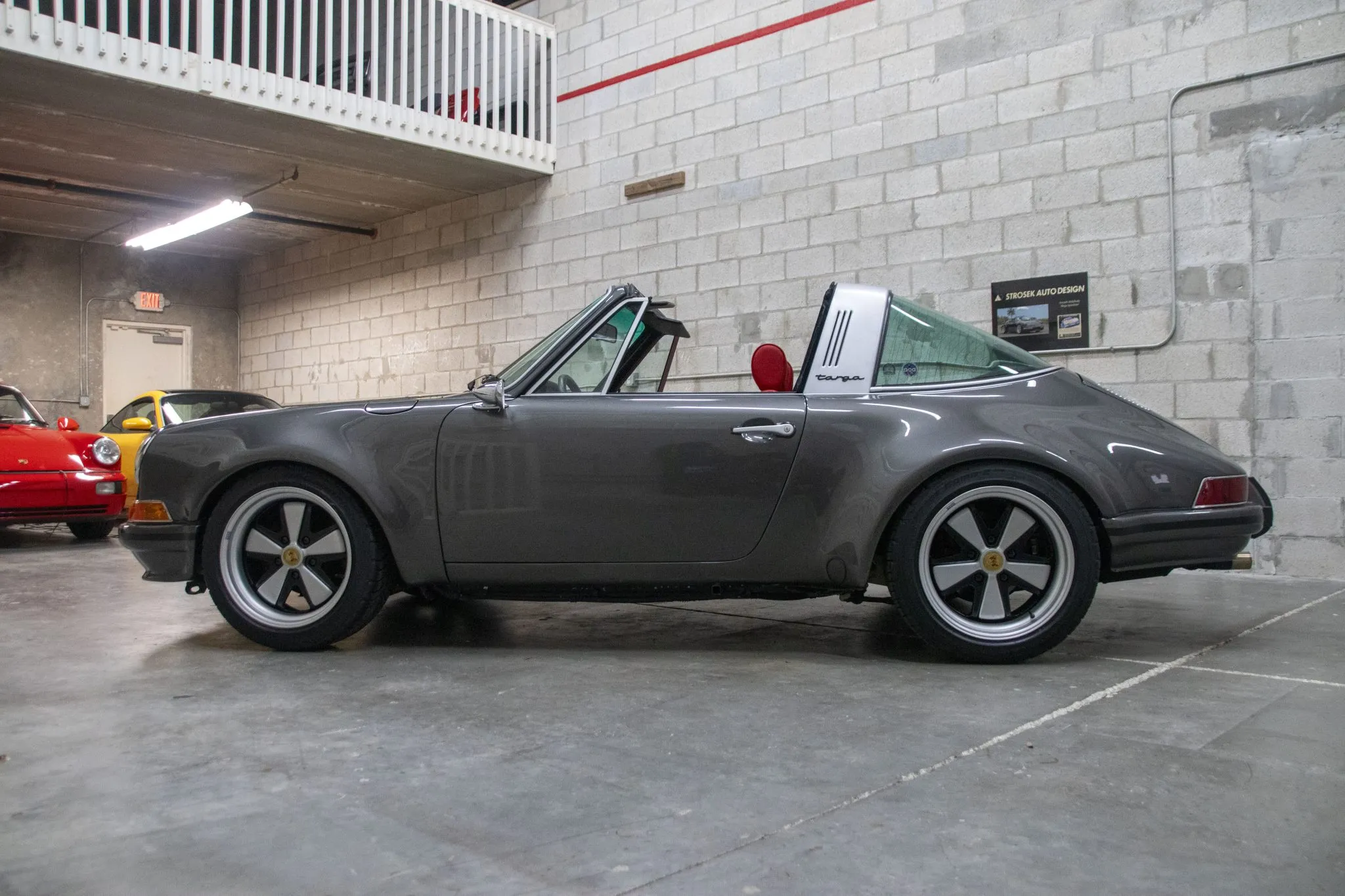 This 1985 Porsche 911 Carrera Targa is a US-market example that was modified with backdated bodywork, including a lengthened hood, widened steel fenders, and fiberglass bumpers, in 2021.