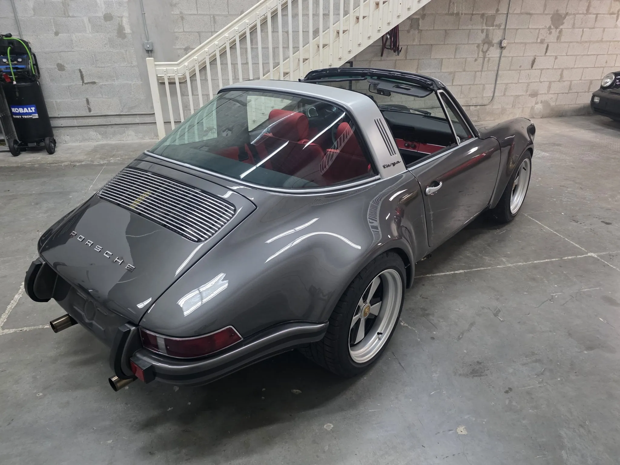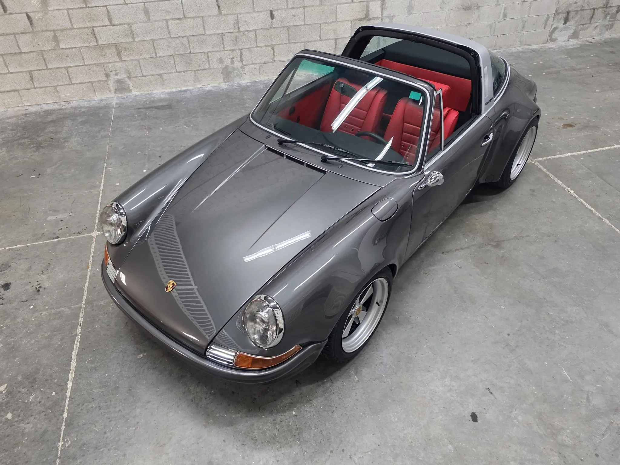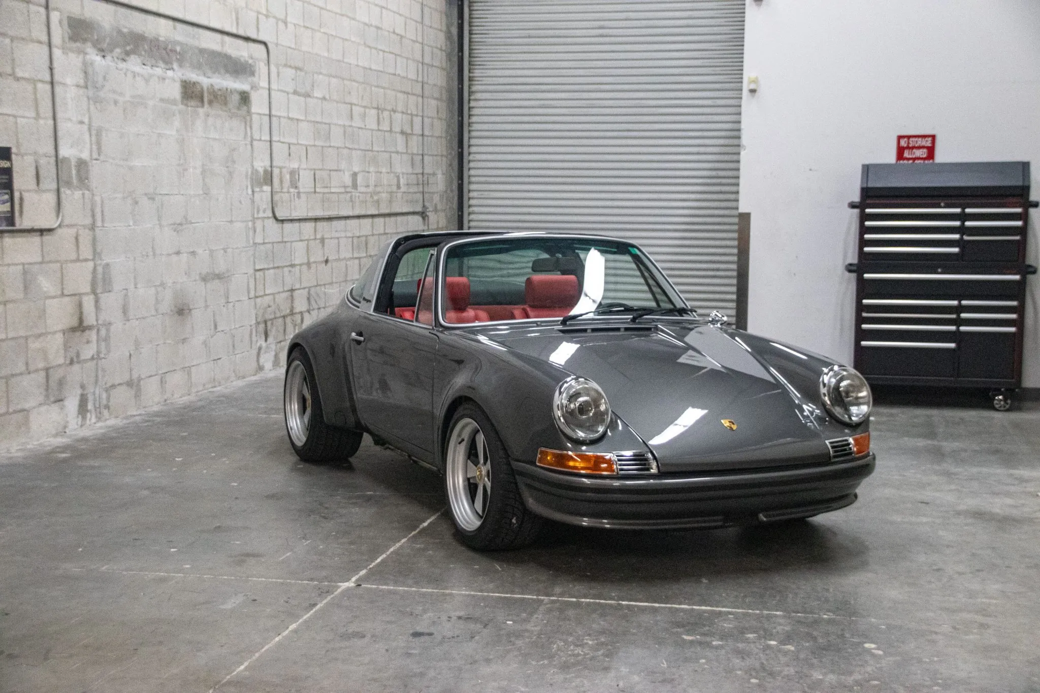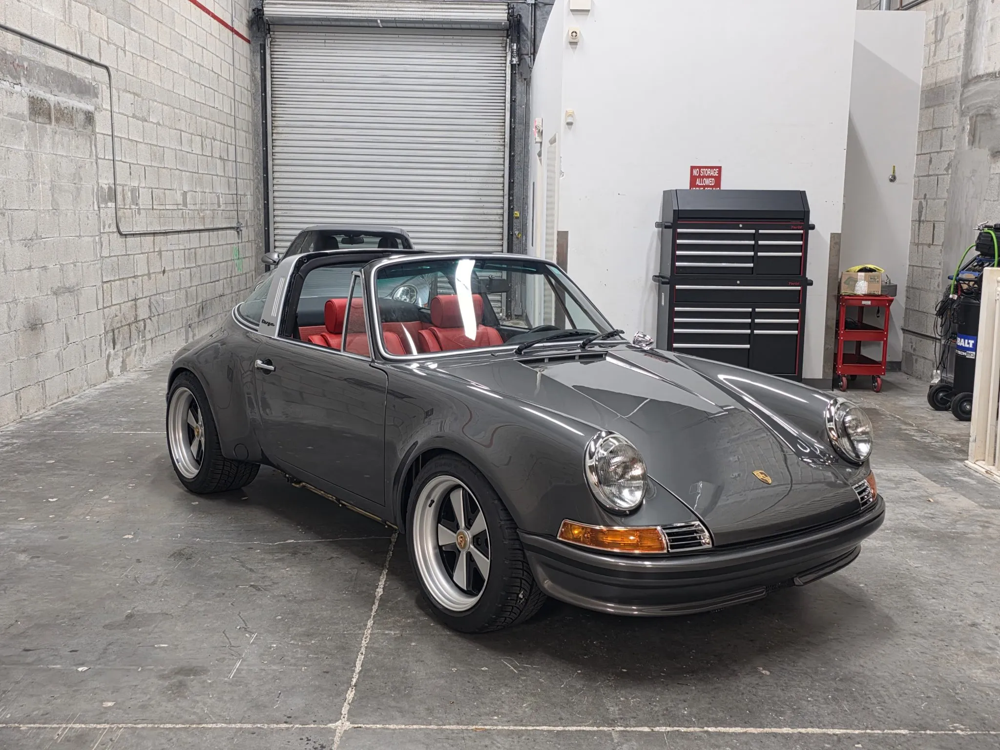 This 1985 Porsche 911 Carrera Targa is a US-market example that was modified with backdated bodywork, including a lengthened hood, widened steel fenders, and fiberglass bumpers, in 2021.