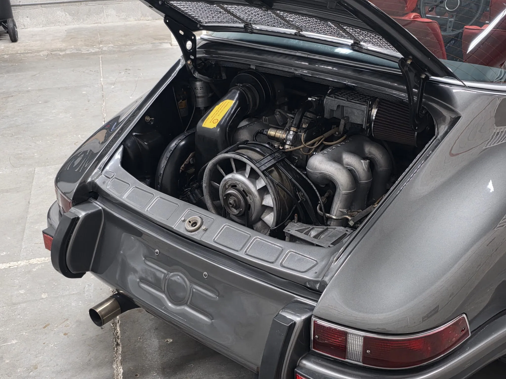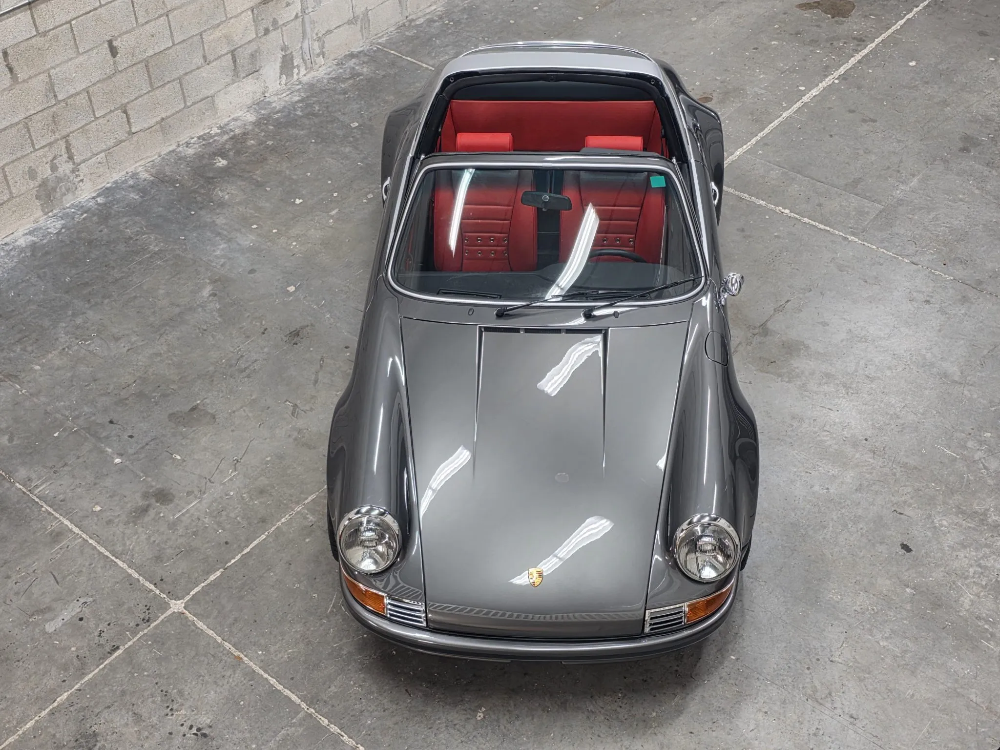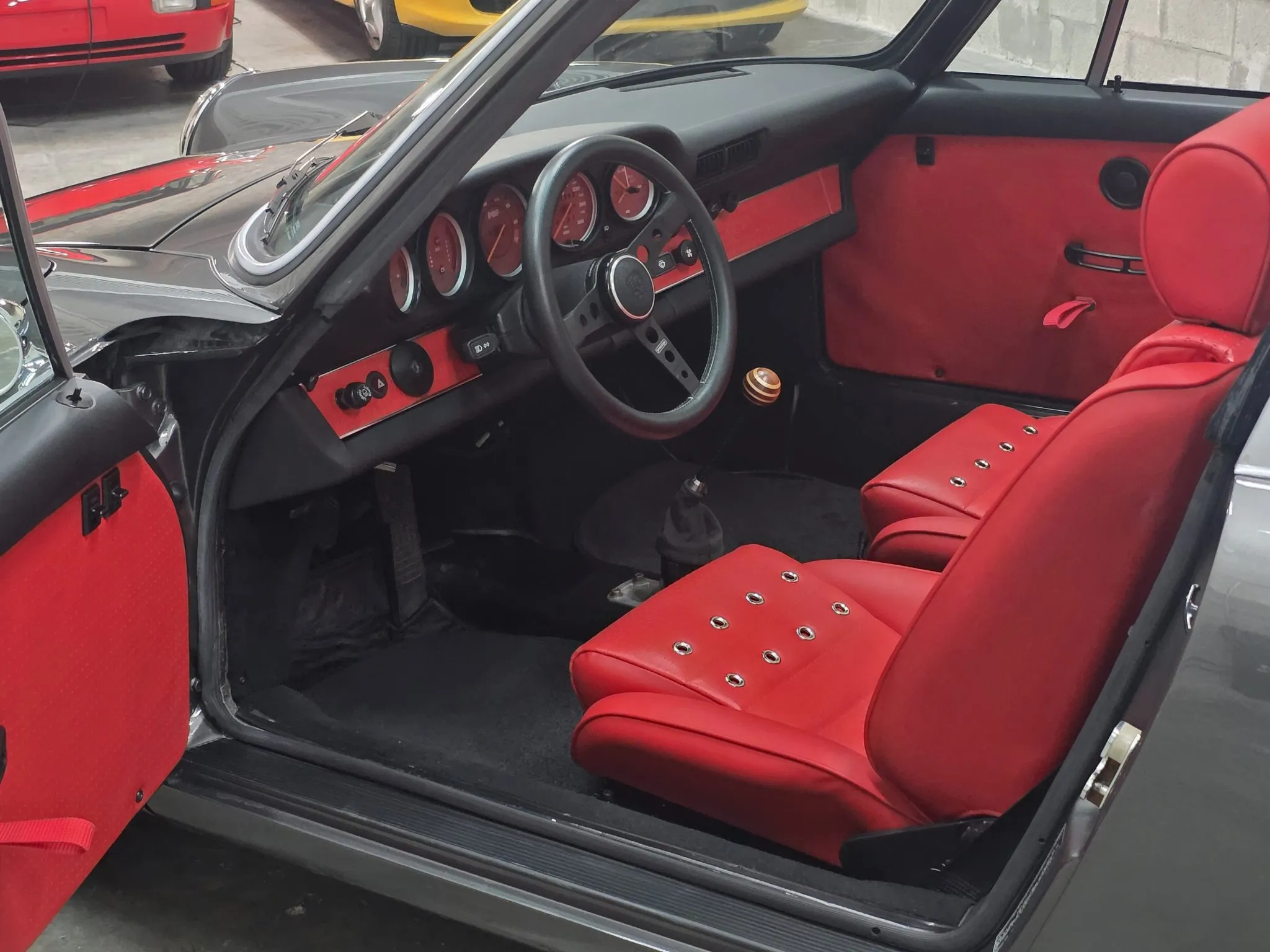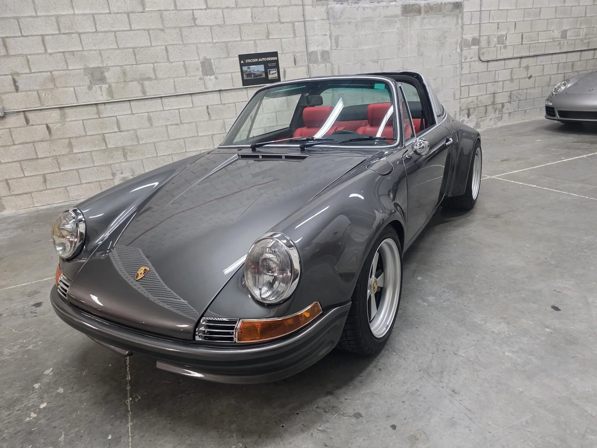 This 1985 Porsche 911 Carrera Targa is a US-market example that was modified with backdated bodywork, including a lengthened hood, widened steel fenders, and fiberglass bumpers, in 2021.