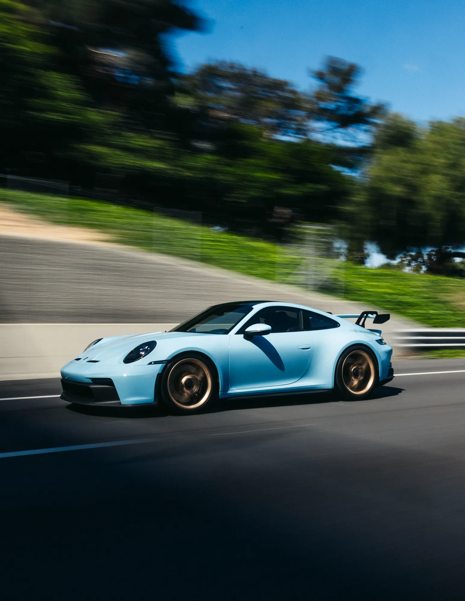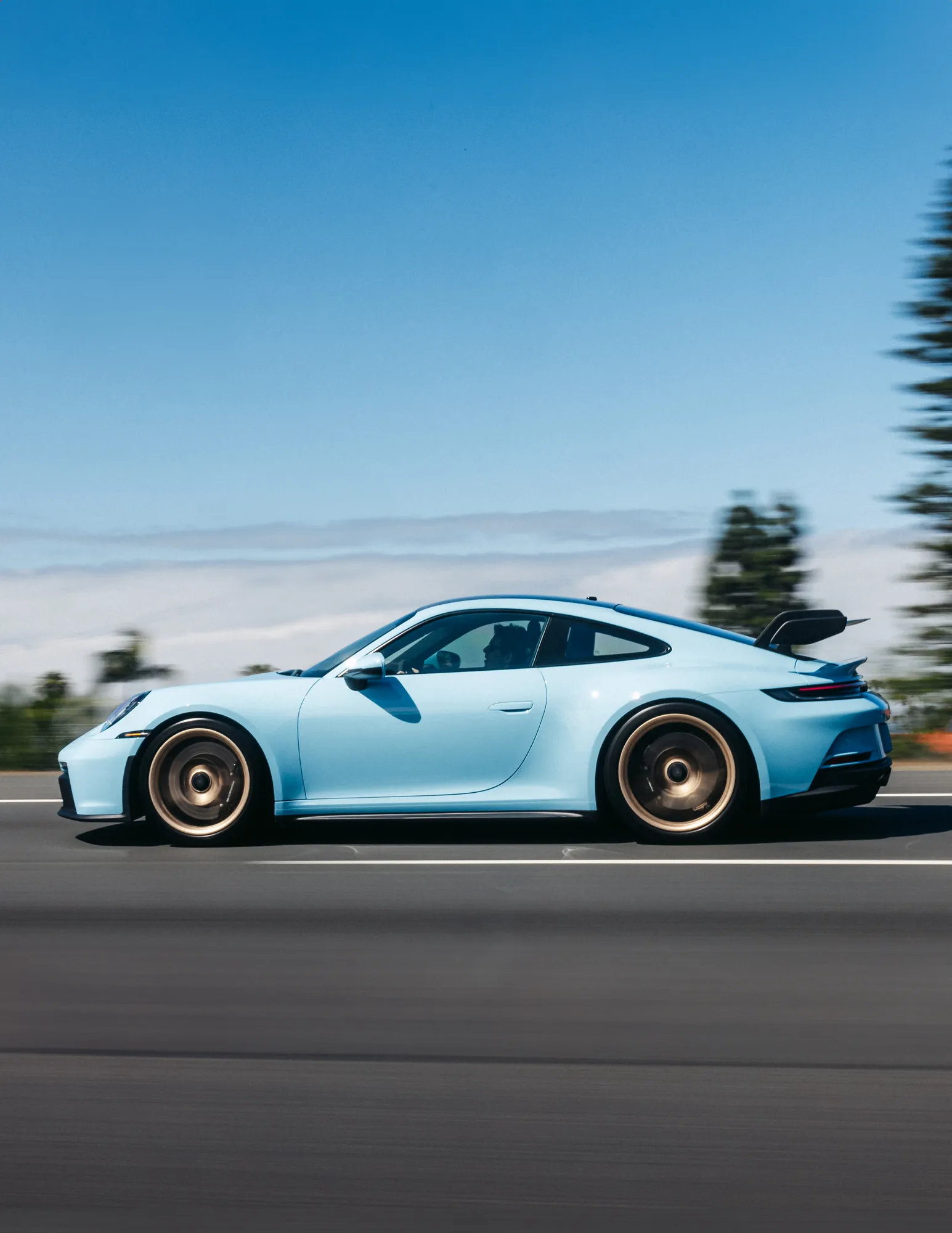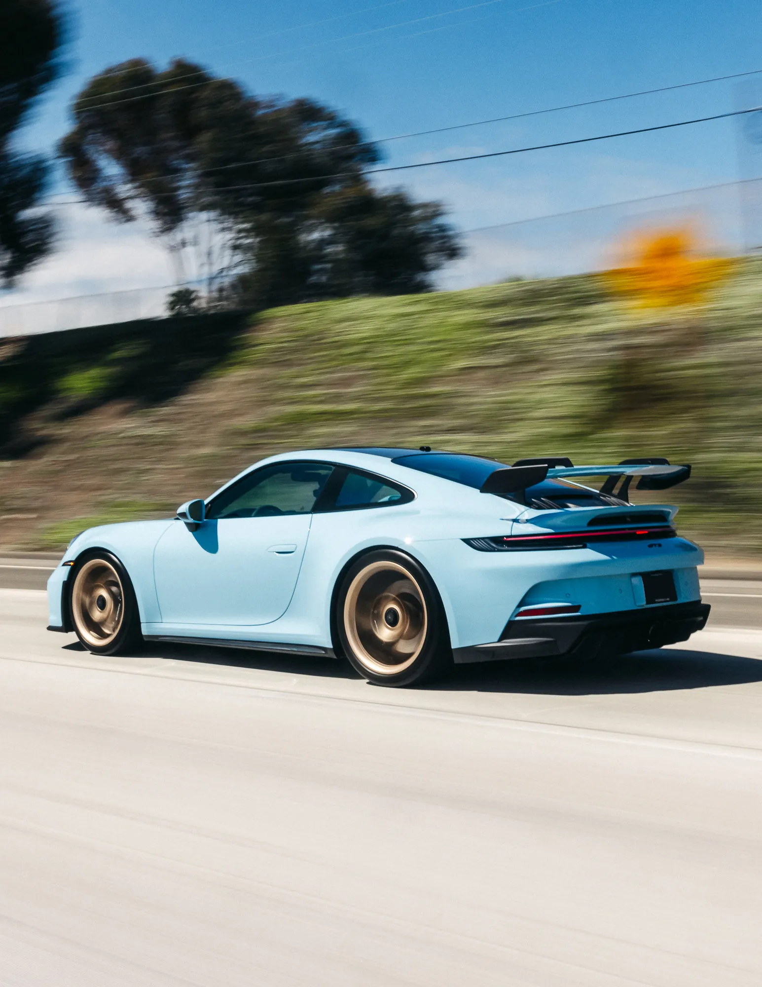 This 2022 Porsche 911 GT3 was initially leased and later purchased by the seller, and it was optioned from the factory with a paint-to-sample Gulf Blue exterior finish in addition to carbon-fiber full bucket seats that are trimmed in black leather and Race-Tex upholstery.