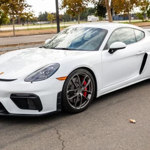This 2021 Porsche 911 Carrera coupe was leased new and subsequently purchased by the seller, and has been fitted with 21″ and 22″ Vossen wheels, Tubi Style exhaust components, BMC air filters, GIAC ECU software, and TechArt modifications consisting of a rear diffuser, front and rear spoilers, rear wing, side skirts, and adjustable suspension. It is finished in Guards Red over Slate Gray leather upholstery and is powered by a twin-turbocharged 3.0L flat-six mated to an eight-speed PDK dual-clutch automatic transaxle.