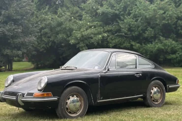 This 1966 Porsche 912 coupe was originally specified with black paintwork, an electric sunroof, black leatherette upholstery, and a 1.6-liter...