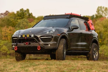 Finished in Jet Black Metallic over Black leather and Alcantara upholstery, this 2014 Porsche Cayenne has been modified with a...