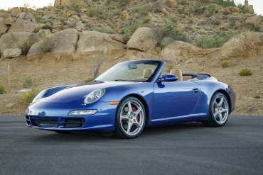 This 2006 Porsche 911 Carrera S cabriolet is finished in Cobalt Blue Metallic over Sand Beige leather upholstery and is powered...