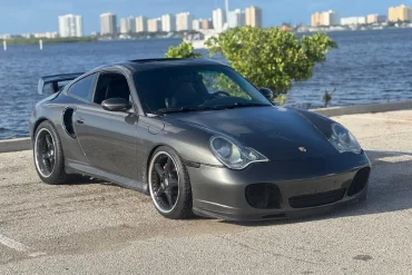 This 2003 Porsche 911 Turbo coupe is powered by a twin-turbocharged 3.6L flat-six that has been modified with Turbosmart IWG75...