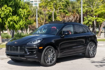 This 2021 Porsche Macan Turbo is finished in Jet Black Metallic over Garnet Red and Black leather and has 10k...