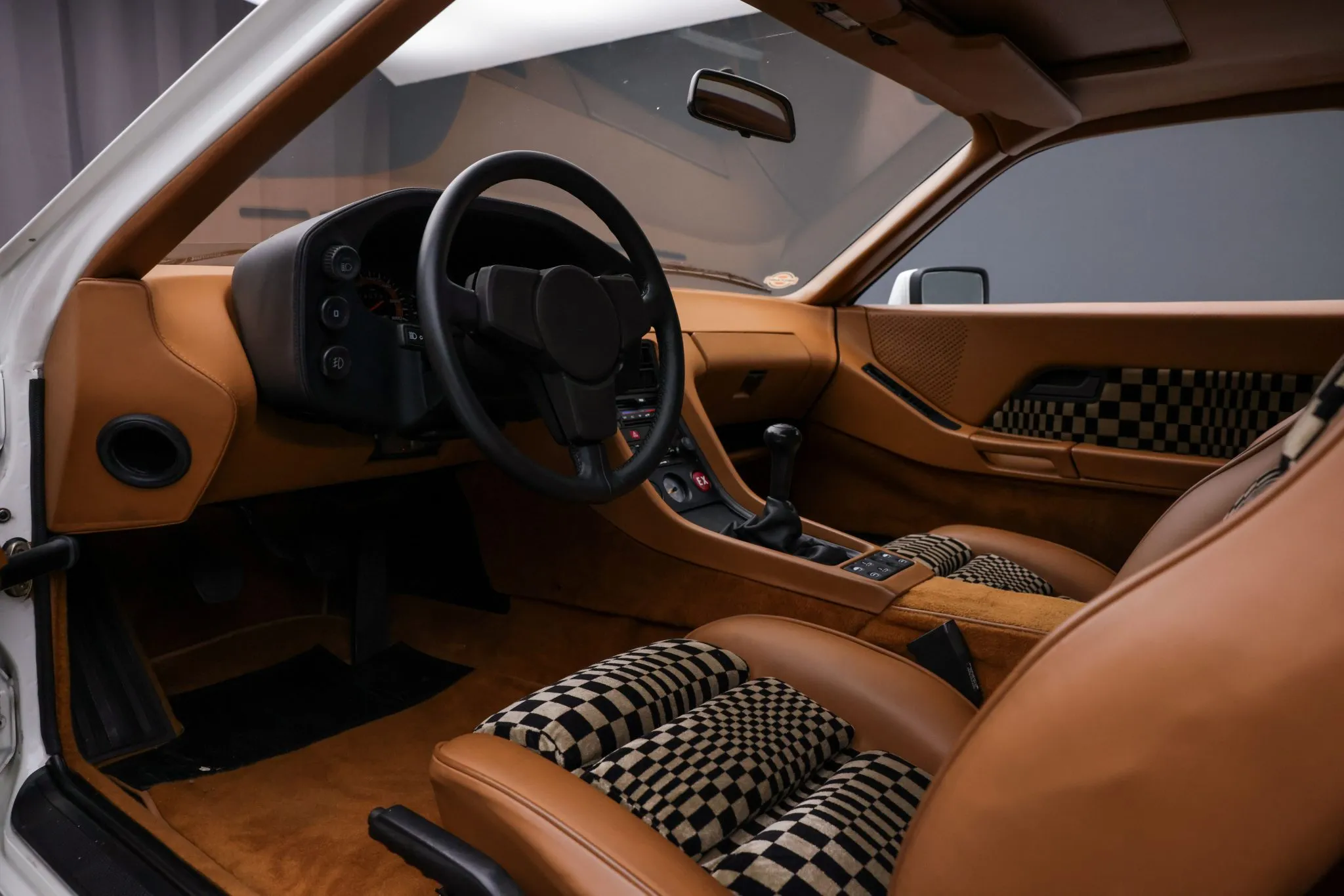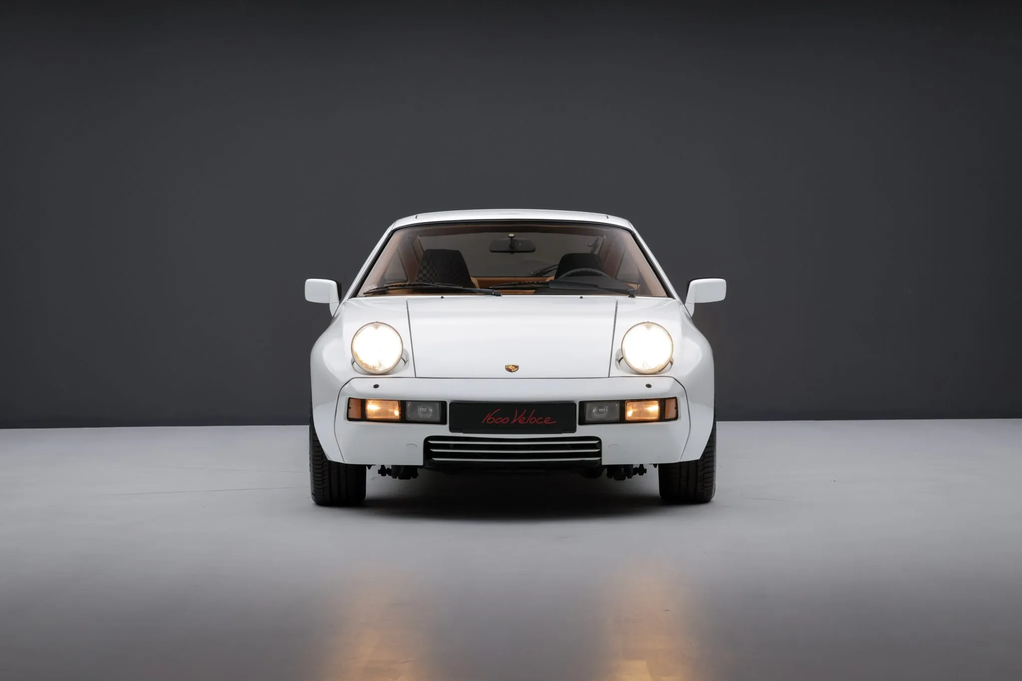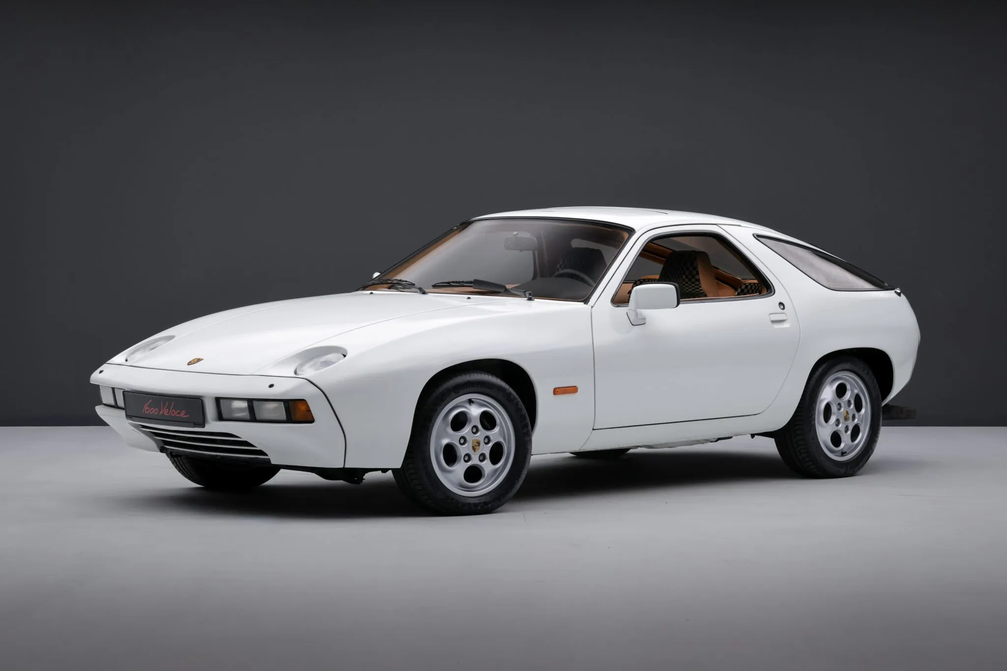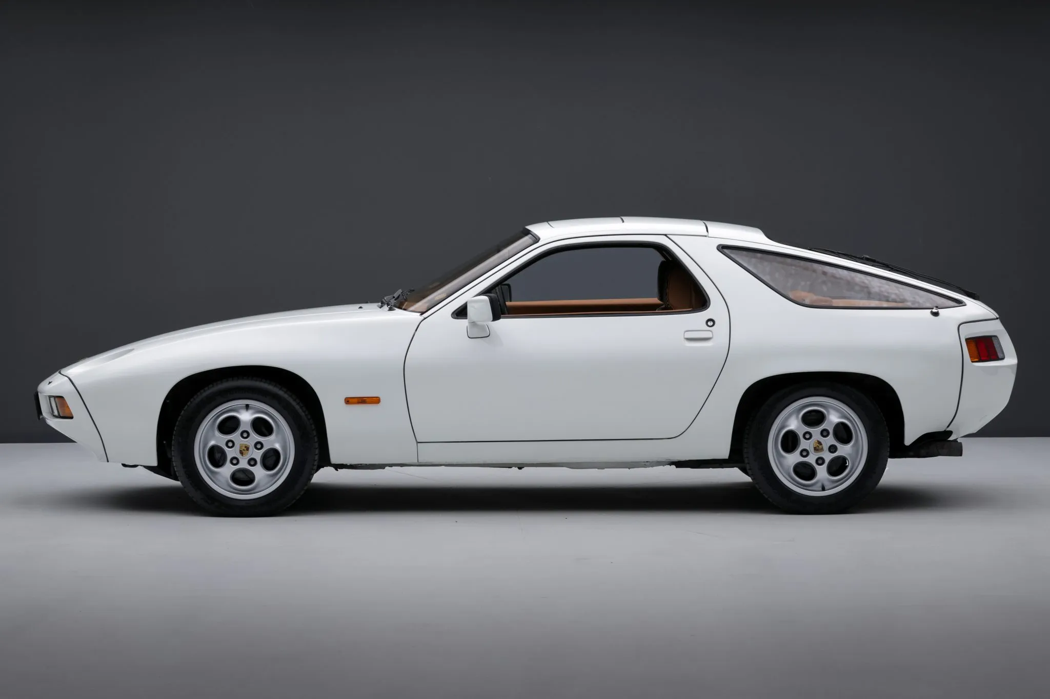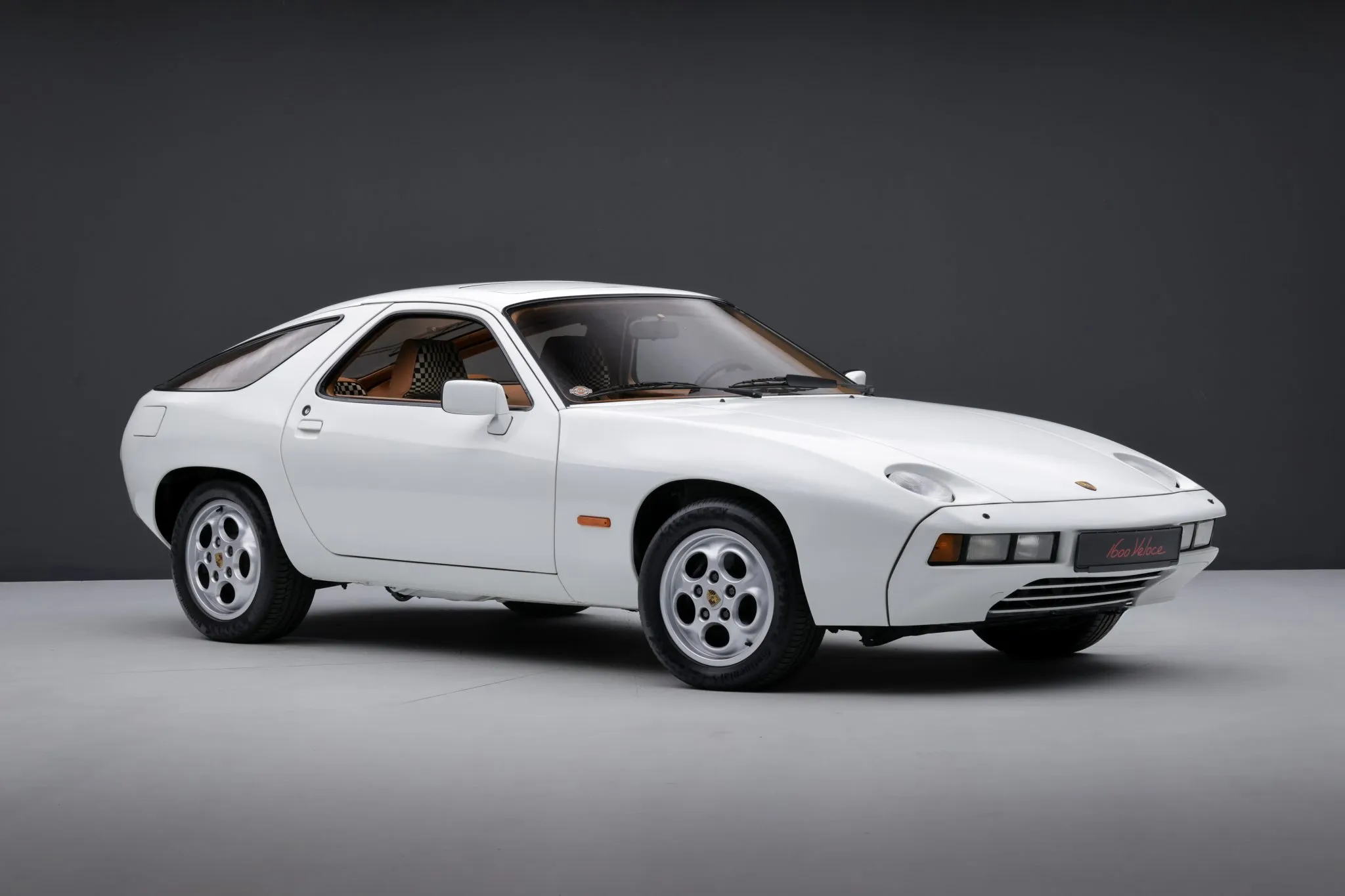 This 1979 Porsche 928 is a rest-of-world example that is finished in Grand Prix White over Cork leatherette and checkered Pasha velour and is powered by a 4.5-liter V8 paired with a five-speed manual transaxle.