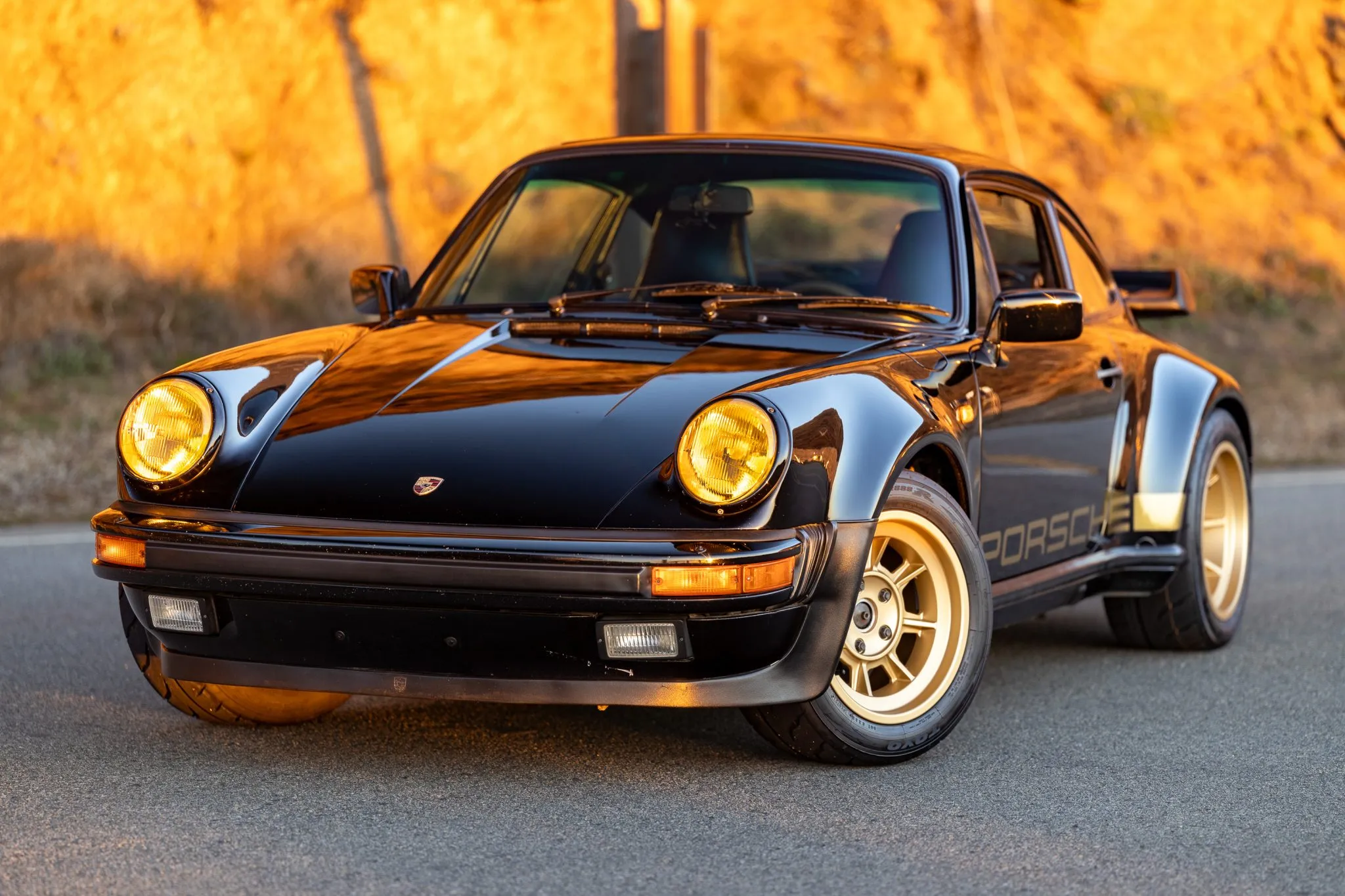 Finished in black over black leather, the car is powered by a turbocharged 3.3-liter flat-six paired with a four-speed manual transaxle. Further equipment consists of a sunroof, fog lights, heated power-adjustable front sport seats, a replacement speedometer, and air conditioning.