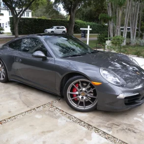 Powered by a twin-turbocharged 3.0L flat-six linked with an eight-speed PDK dual-clutch automatic transaxle, the car is further equipped with black leather and Race-Tex upholstery, the Sport Chrono Package, a carbon-fiber roof panel, LED-Matrix Design headlights with PDLS+, Porsche Ceramic Composite Brakes (PCCB), Power Steering Plus, a front-axle lift system, 20″ and 21″ 911 Turbo S wheels, a Bose sound system, a surround-view camera, heated front seats, a carbon-fiber roof, and Porsche Communication Management with navigation.