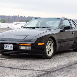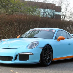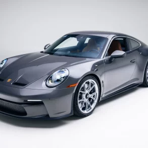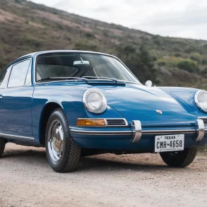 It is finished in paint-to-sample Yachting Blue Metallic over black leather and Alcantara and equipment includes the $18k Weissach Package, 20″ and 21″ magnesium center-lock wheels, carbon-ceramic brakes with yellow calipers, a front axle lift system, rear-axle steering, LED headlights, a rear wing, navigation, air conditioning, a CD stereo, and cruise control.