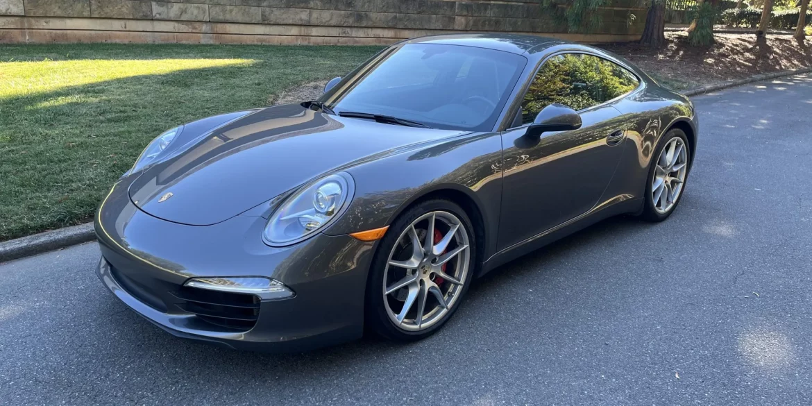 This 2012 Porsche 911 Carrera S is an Agate Gray Metallic-finished coupe that has 45k miles and is powered by a 3.8-liter flat-six paired with a seven-speed PDK automatic transaxle. The car is equipped with black leather upholstery, a sport exhaust system, 20″ Carrera S alloy wheels, a sunroof, bi-xenon...