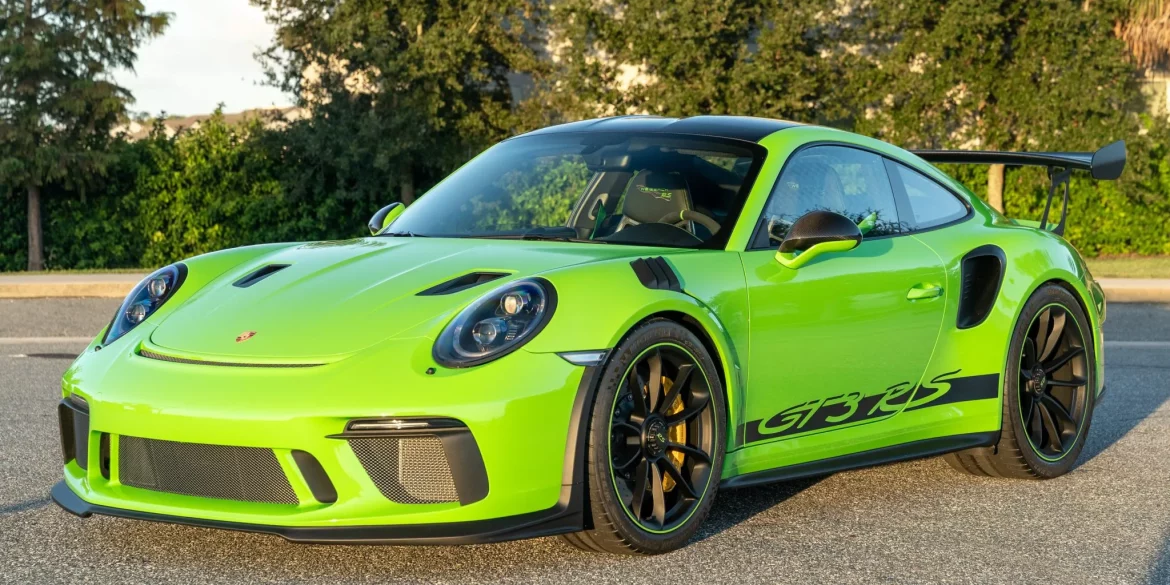This 2019 Porsche 911 GT3 RS is finished in Lizard Green over black leather and Lizard Green Alcantara, and it was optioned from the factory with the Weissach Package, which reduces weight by utilizing a carbon-composite roof panel, front lid, anti-roll bars, and interior trim. Power comes from a 4.0-liter...