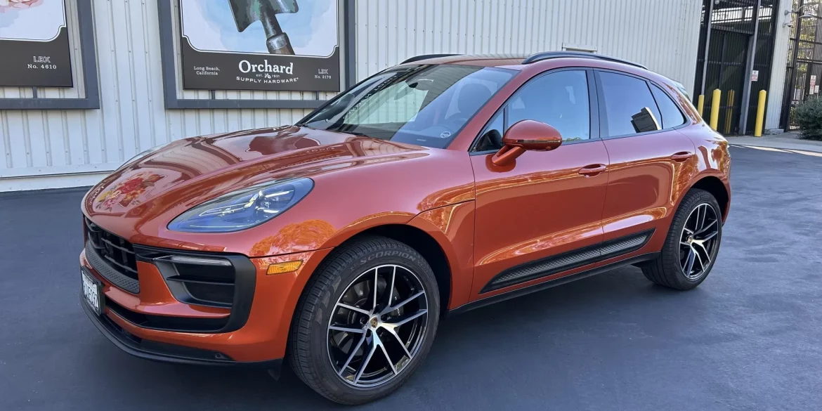 This 2023 Porsche Macan is finished in Papaya Metallic over Black leather with Papaya stitching, and it was ordered with the Premium Plus and Leather packages as well as a panoramic sunroof, 20″ Macan S wheels, heated and ventilated front seats, a surround-view camera, adaptive cruise control, and LED headlights...