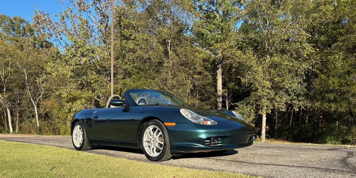 This 2003 Porsche Boxster is finished in Dark Teal Metallic over Graphite Grey Standard leather and is powered by a 2.7-liter flat-six paired with a five-speed manual transaxle. The car spent time in Alabama and Tennessee before the seller’s recent acquisition, and they have since added approximately 2k of the...
