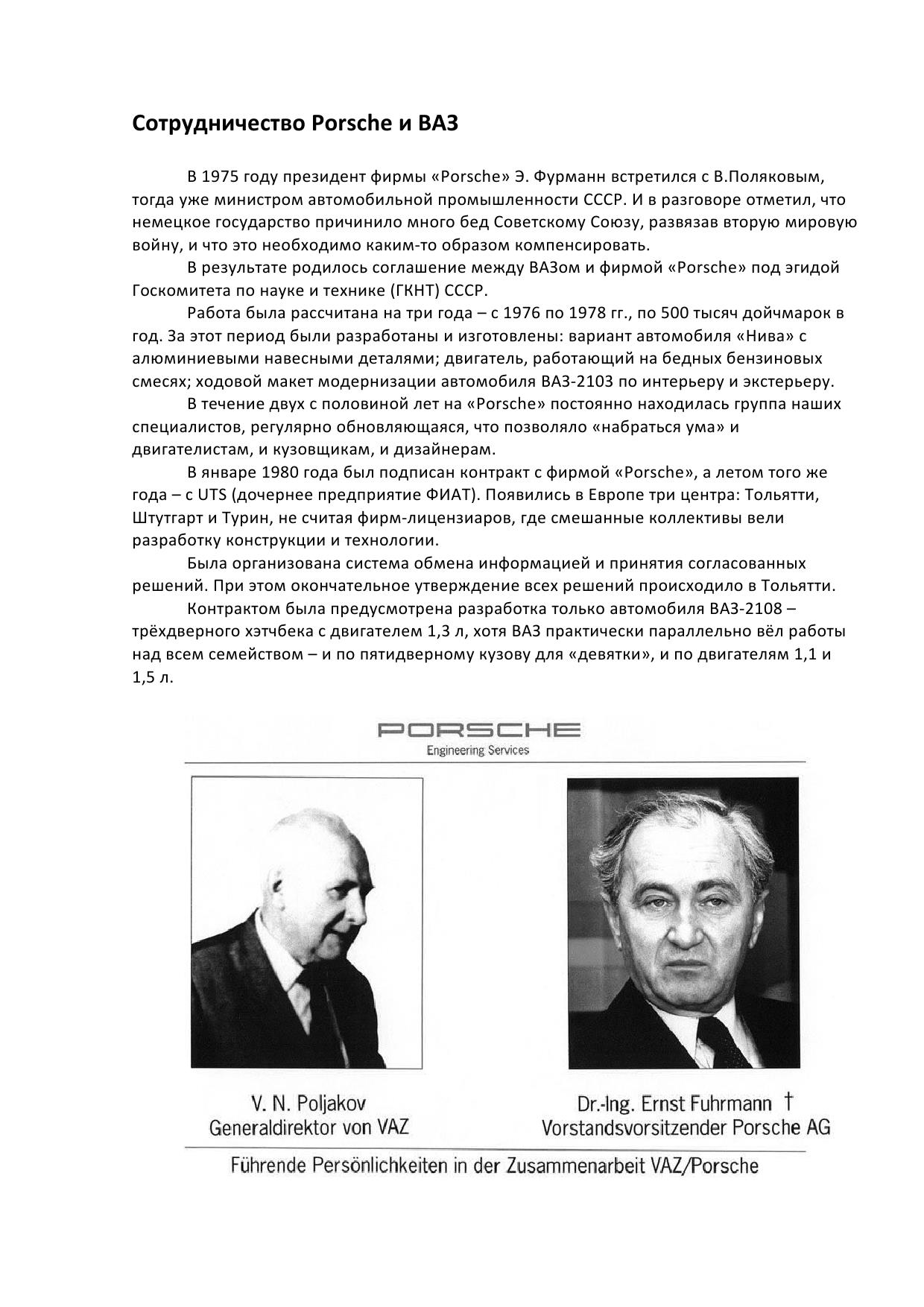 Cooperation between Porsche and VAZ