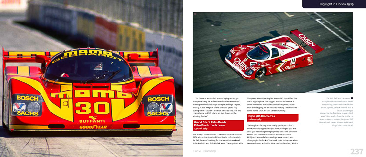 The book is divided into ‘parts’ which group the different cars that Bell drove, into eras such as the 917 and 935, then the Group C years and so on, making it easy to locate that part of Bell’s career by the cars that he drove. As it happens with many who rise to the top of his or her discipline, be it motor racing, rugby or any sport, it is so often a case of being in the right place at the right time. That is not to take anything away from Bell’s unparalleled talents and achievements, because you have to be good in the first place in order to be noticed. But 1981 proved to be a difficult year for Bell as did the start of 1982, but Group C came along just at the right moment for this driver who was looking for a break to move into a more fruitful time. Bell stepped up to the plate and delivered.