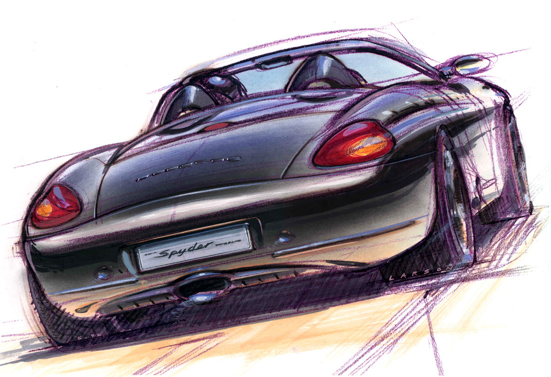 After Audi, Larson moved to Porsche AG in Weissach, Germany, where he began his work as an Exterior Designer. His projects at Porsche have included: Boxster show car and production car – Detroit 1993; Carrera GT show car – Paris 2000; 997 series Carrera and Turbo; Principal designer Panamera; 911 Sport Classic limited edition; Boxster Spyder; 997 and 991 Speedsters and the 991 Targa. He was responsible for the limited-run 935 (2018), GT3R rennsport and the Unseen Bergspyder based on the 981; the list goes on. Presently, he is the Director of Special Projects at Sonderwunsch, where he caters to customers of the One-Off program.