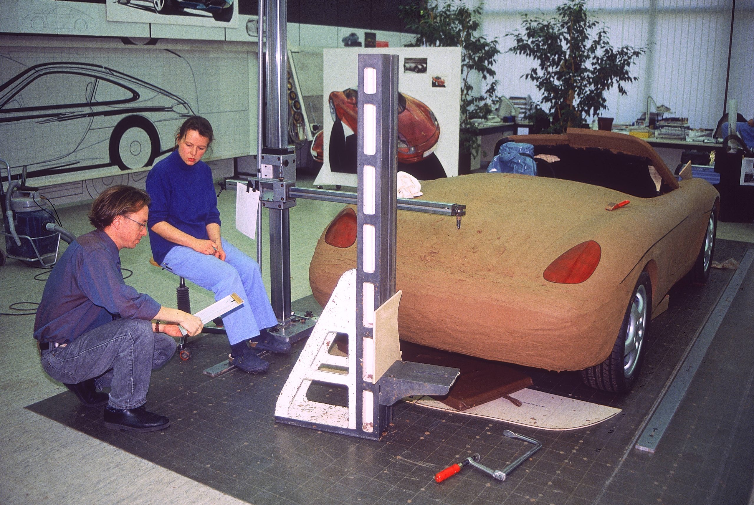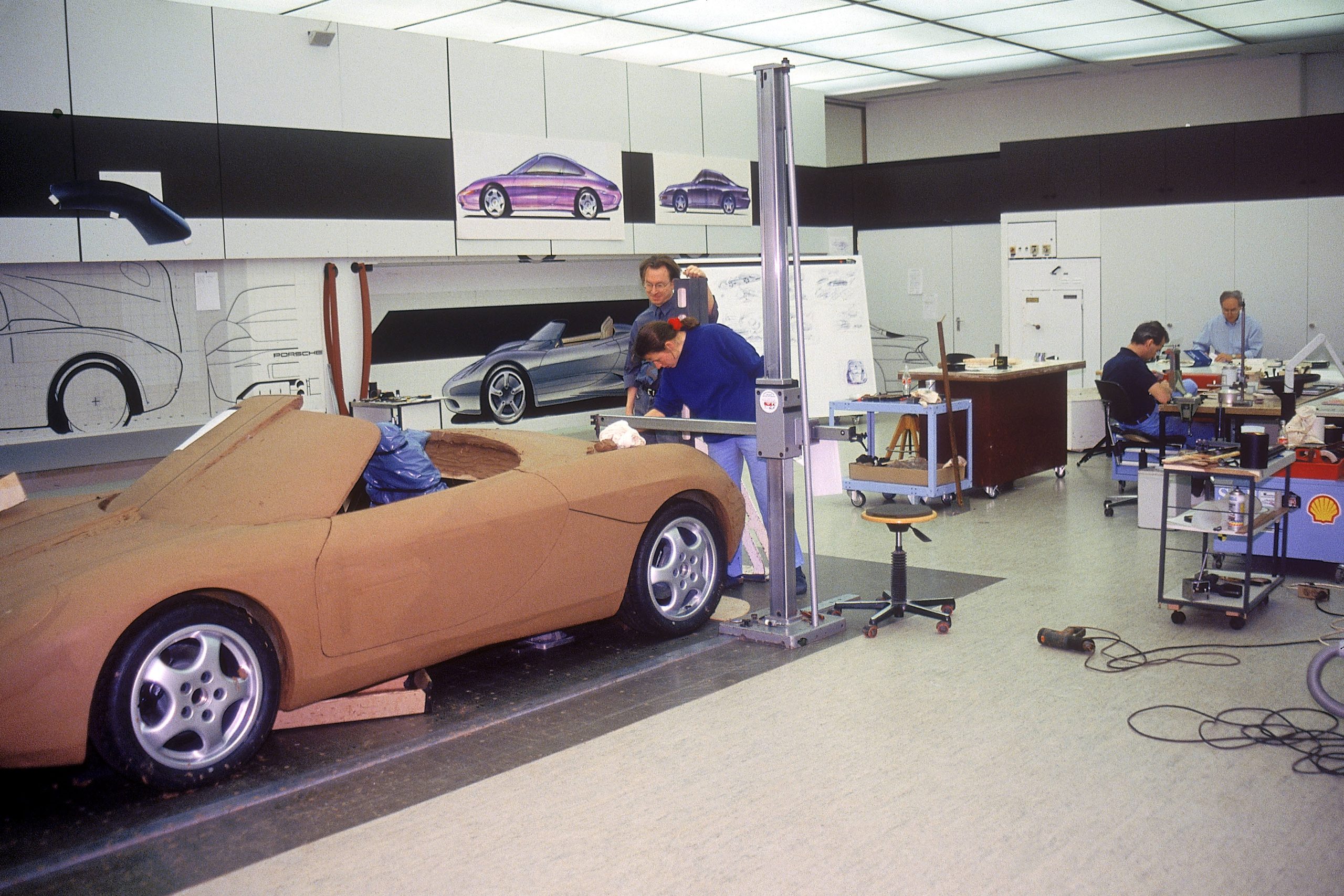 “There is one particularly amusing event that occurred during the development of the Boxster show car. We were working to a very tight time schedule with the car, and we spent a lot of time designing the centre of the rear area, including the exhaust system and the plan view of the whole rear end. Although it took a considerable time to shape and model, the rear end was too short, so we had to extend the car by about eight centimetres, which is a significant increase. Back then, with the technology we had, you had to go up and down the entire length of the car, taking X, Y, and Z coordinates, writing them down, and adding a factor of 80 to those values; it was a really complicated process at the time. At that time, we didn’t have digital scanning, point clouds, or the technology we have today.