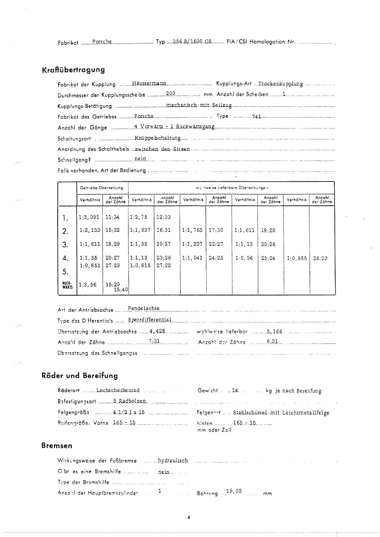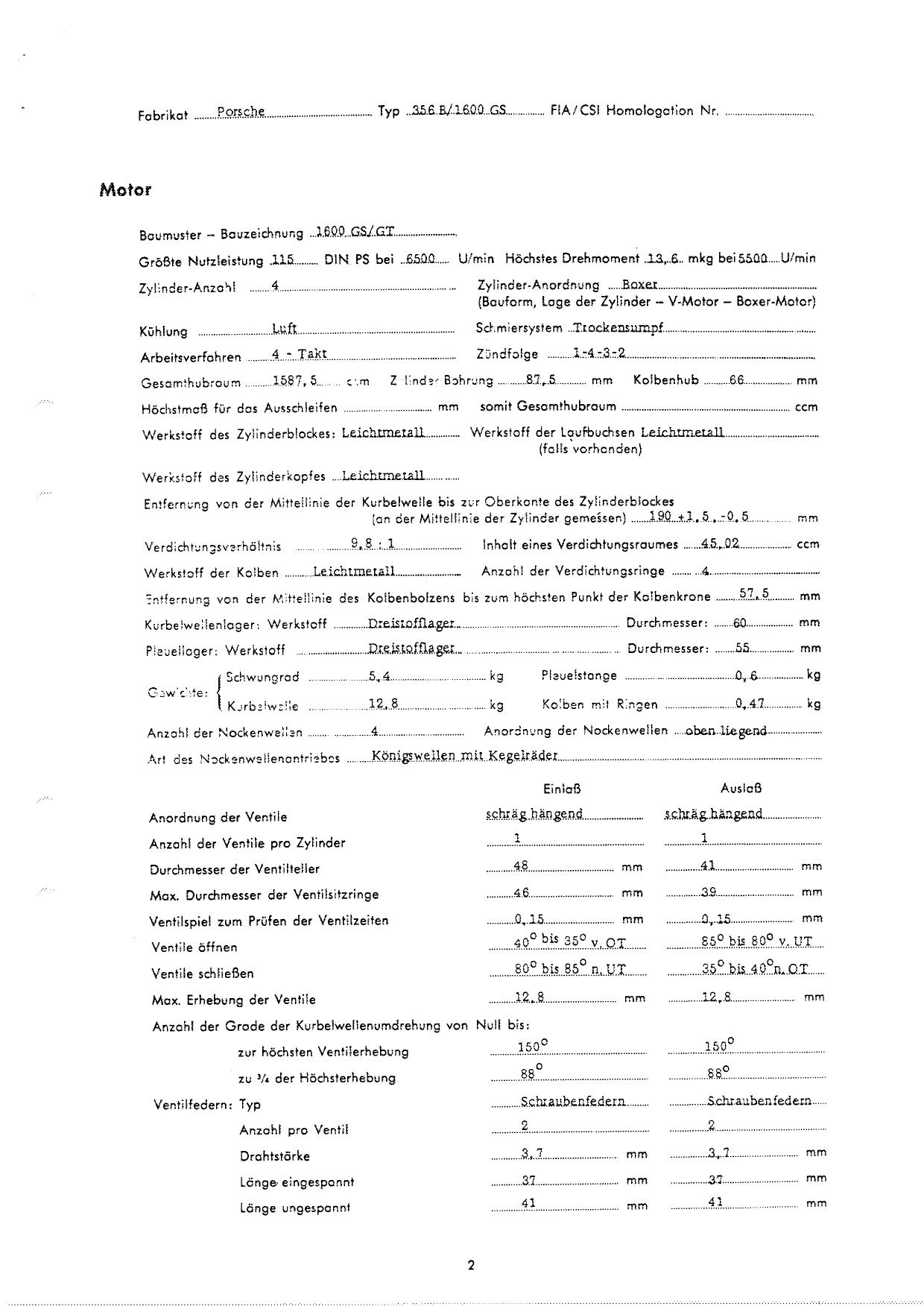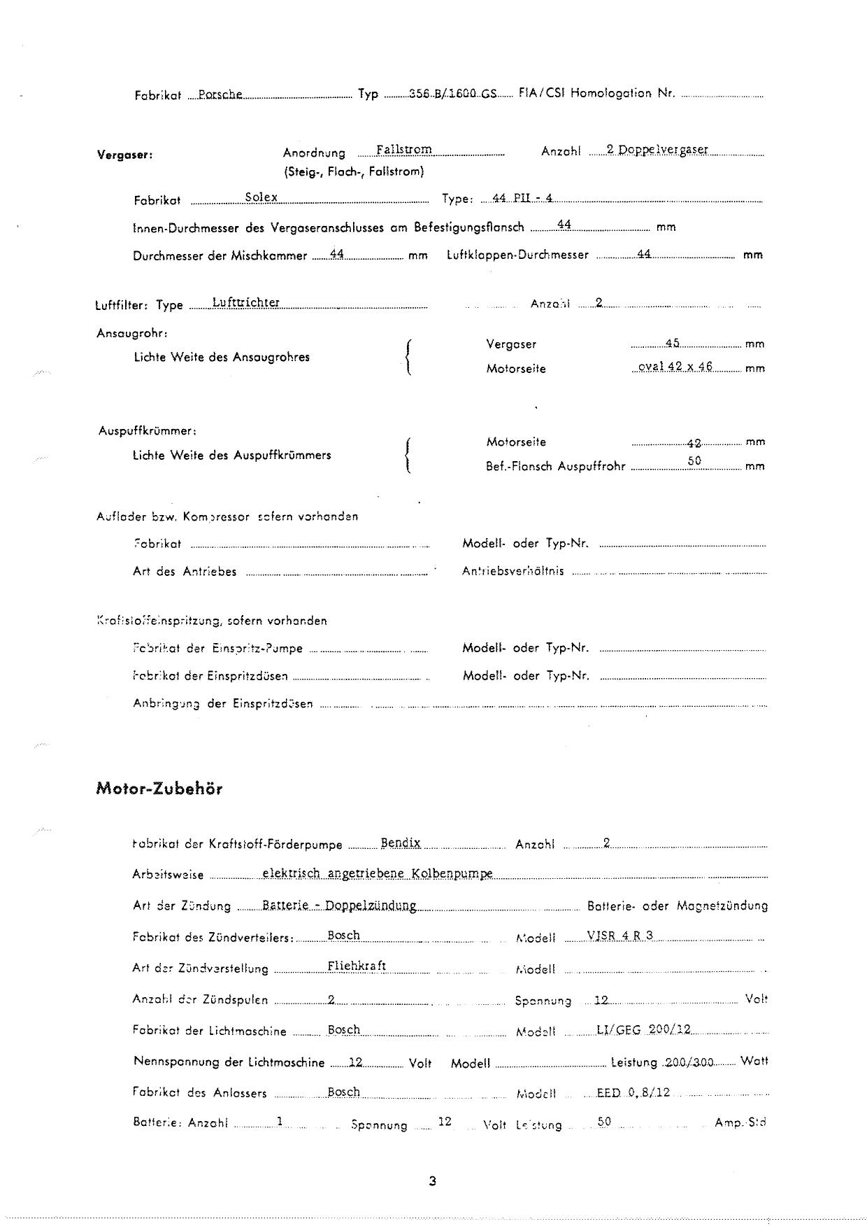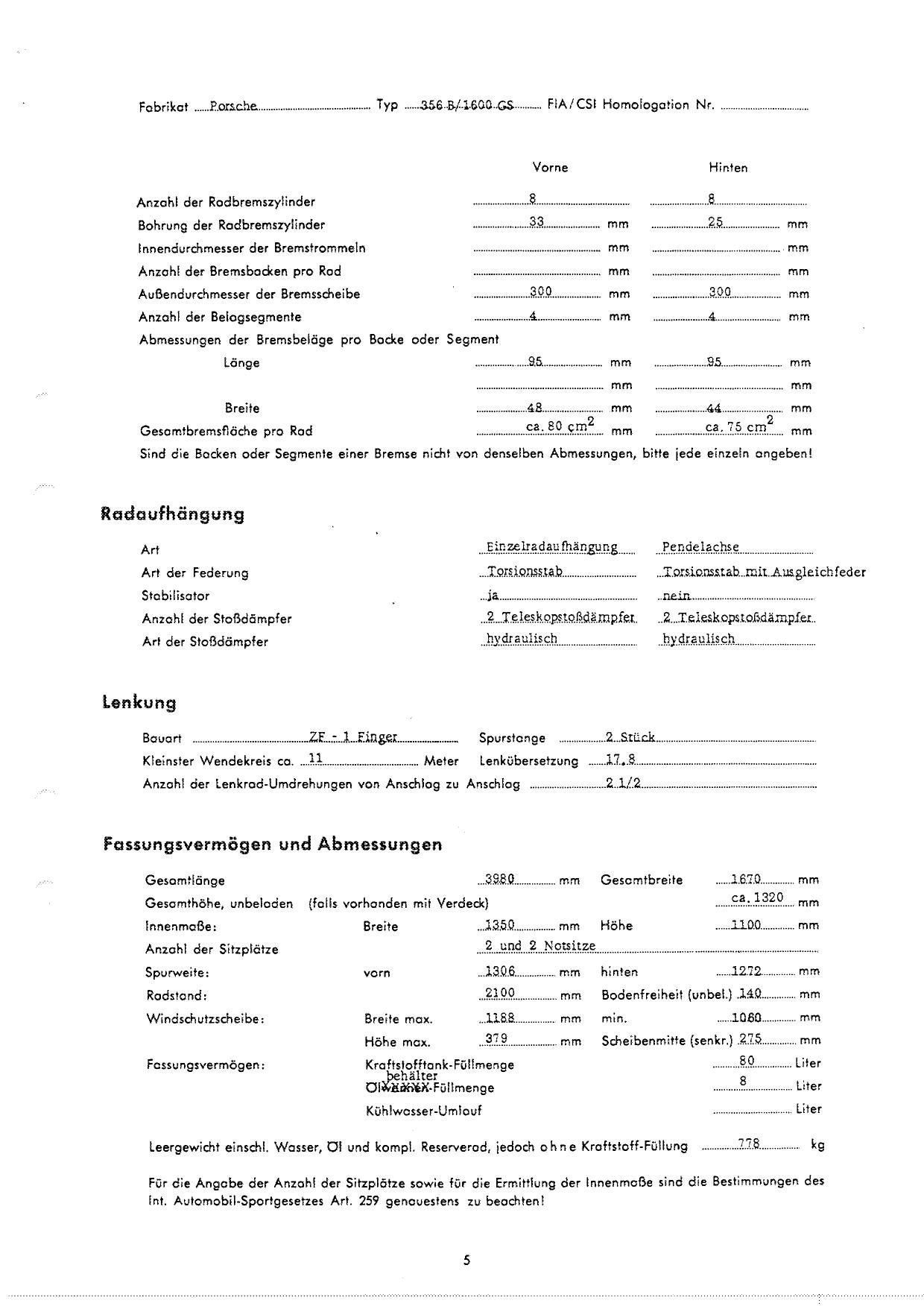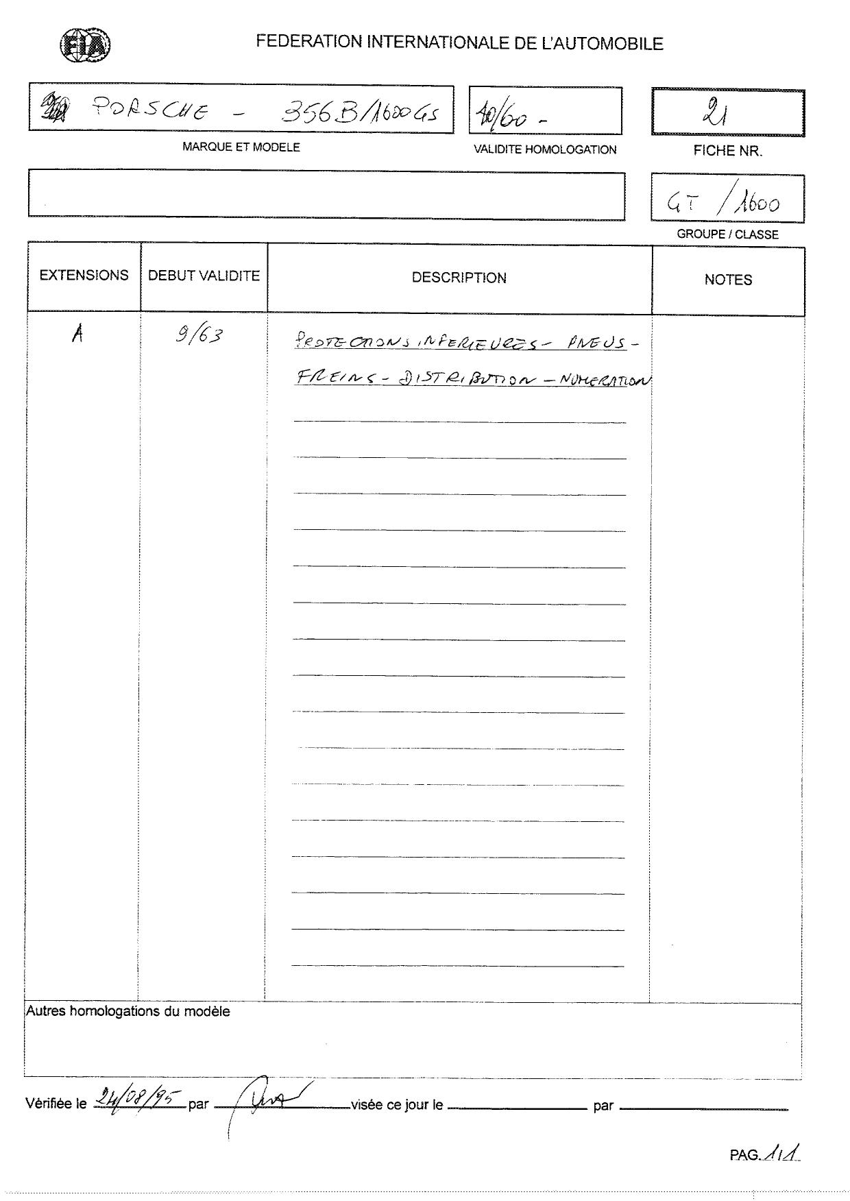 FIA Homologation Protocol for Porsche-356 B 1600 GS, 1960