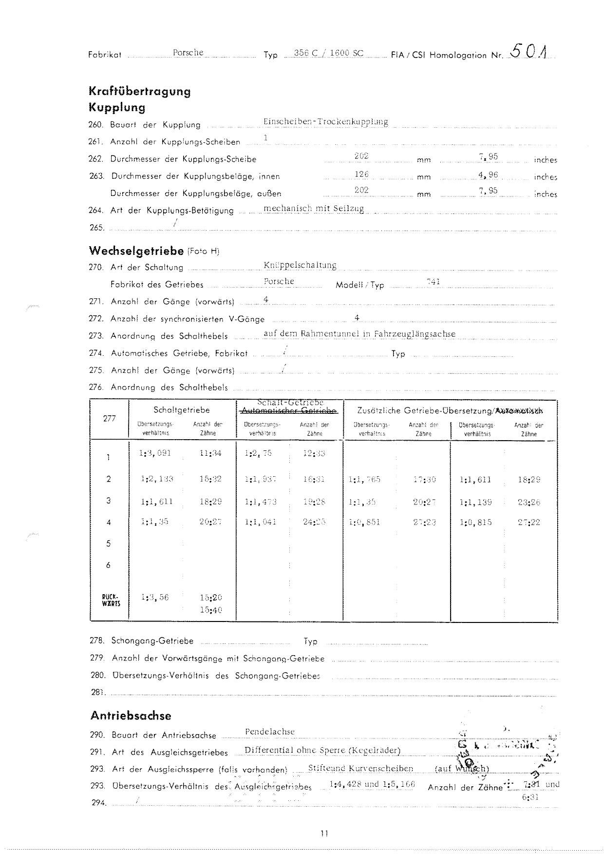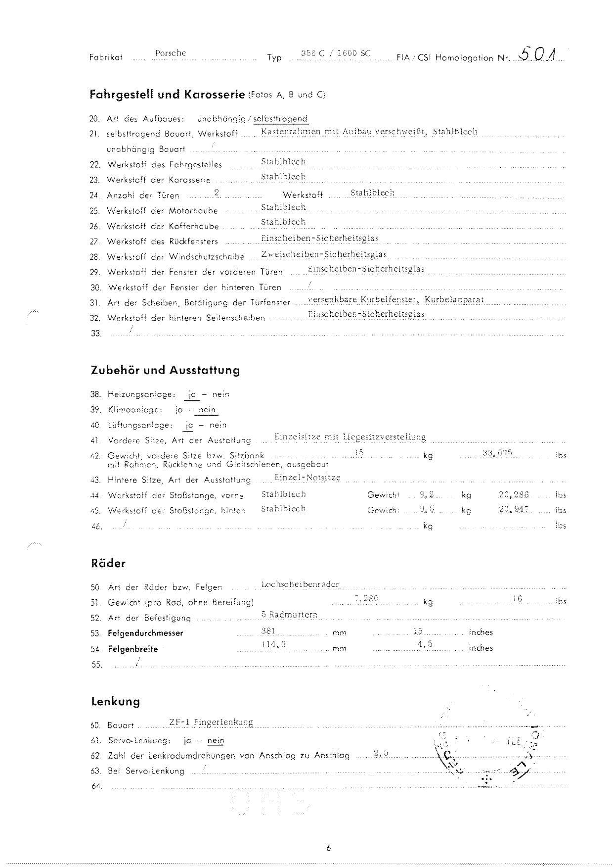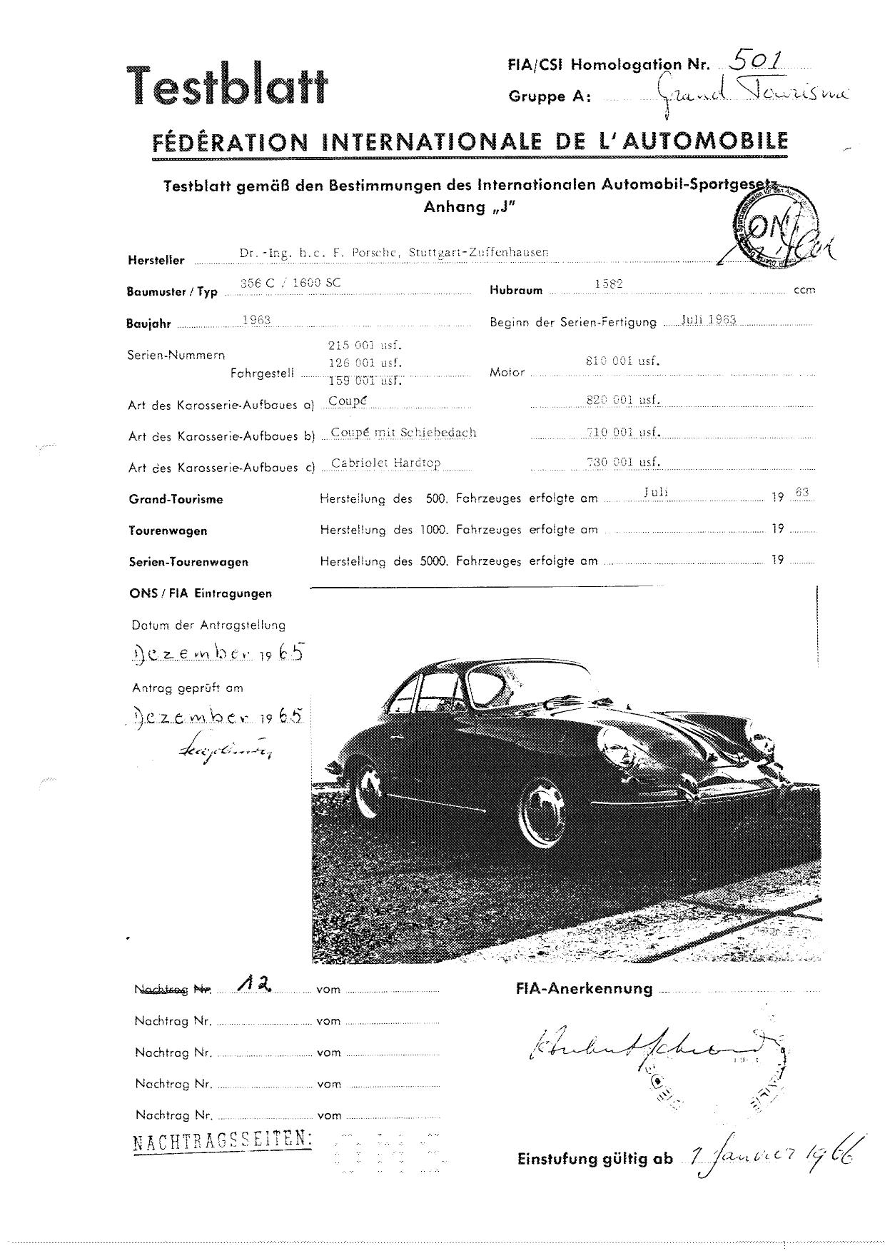 FIA Homologation Protocol for Porsche-356C 1600 SC, 12.1965