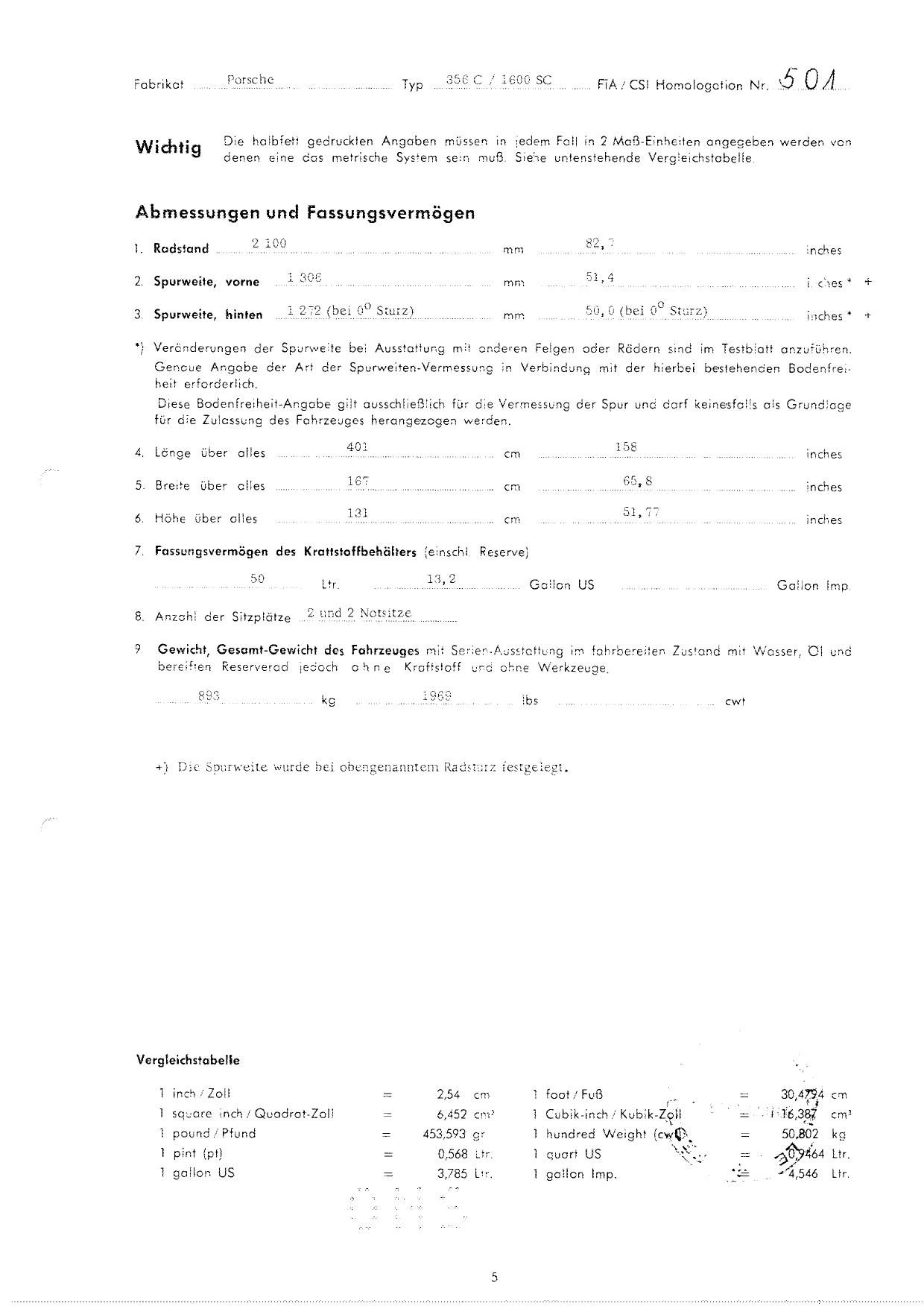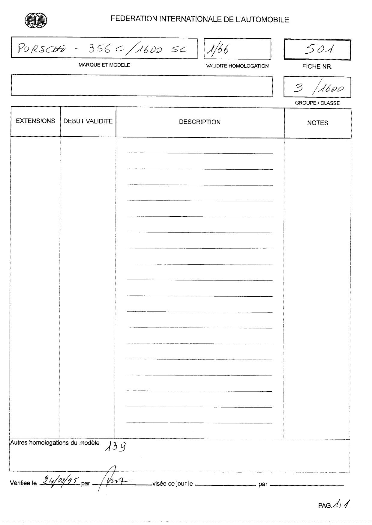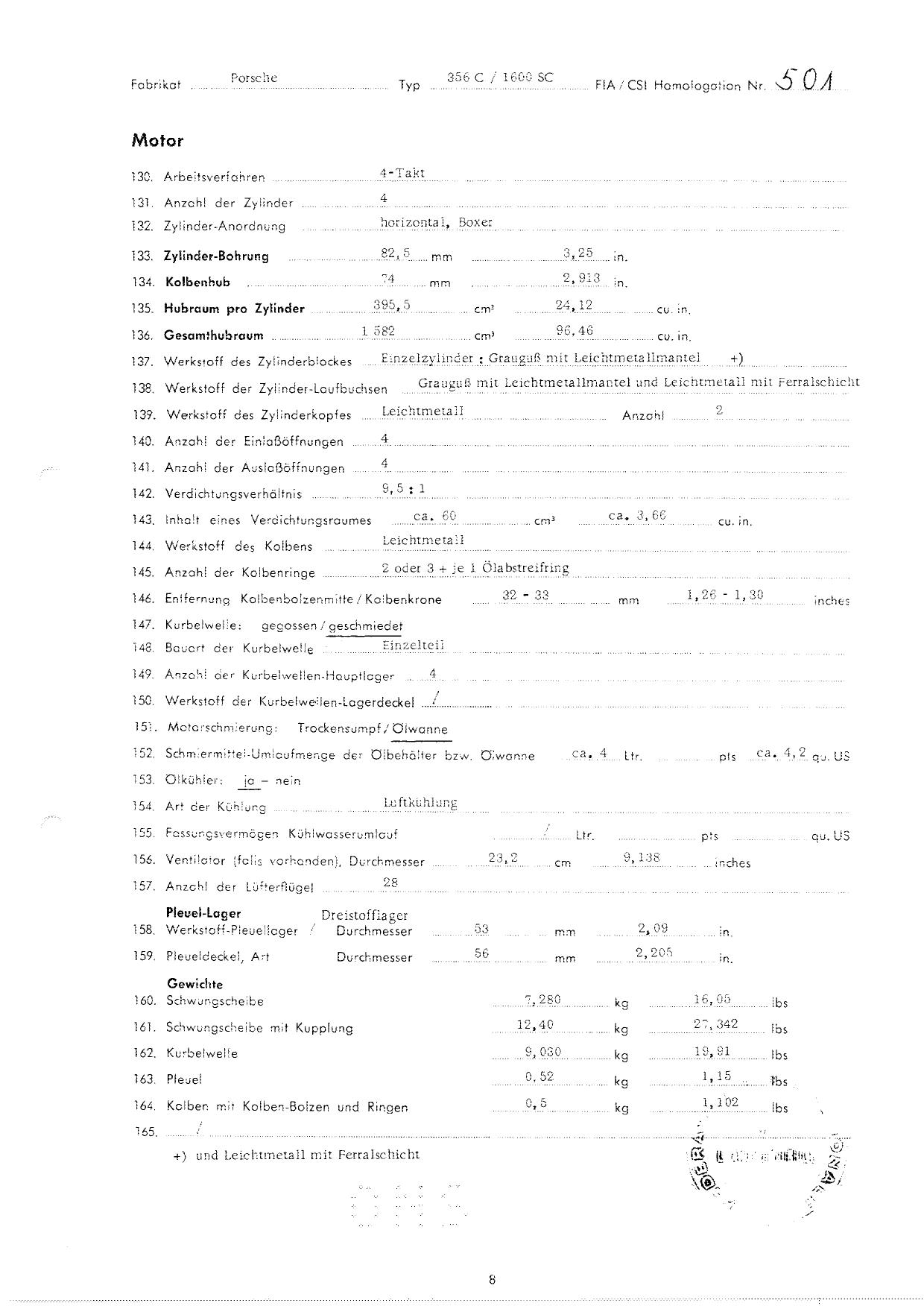 FIA Homologation Protocol for Porsche-356C 1600 SC, 12.1965