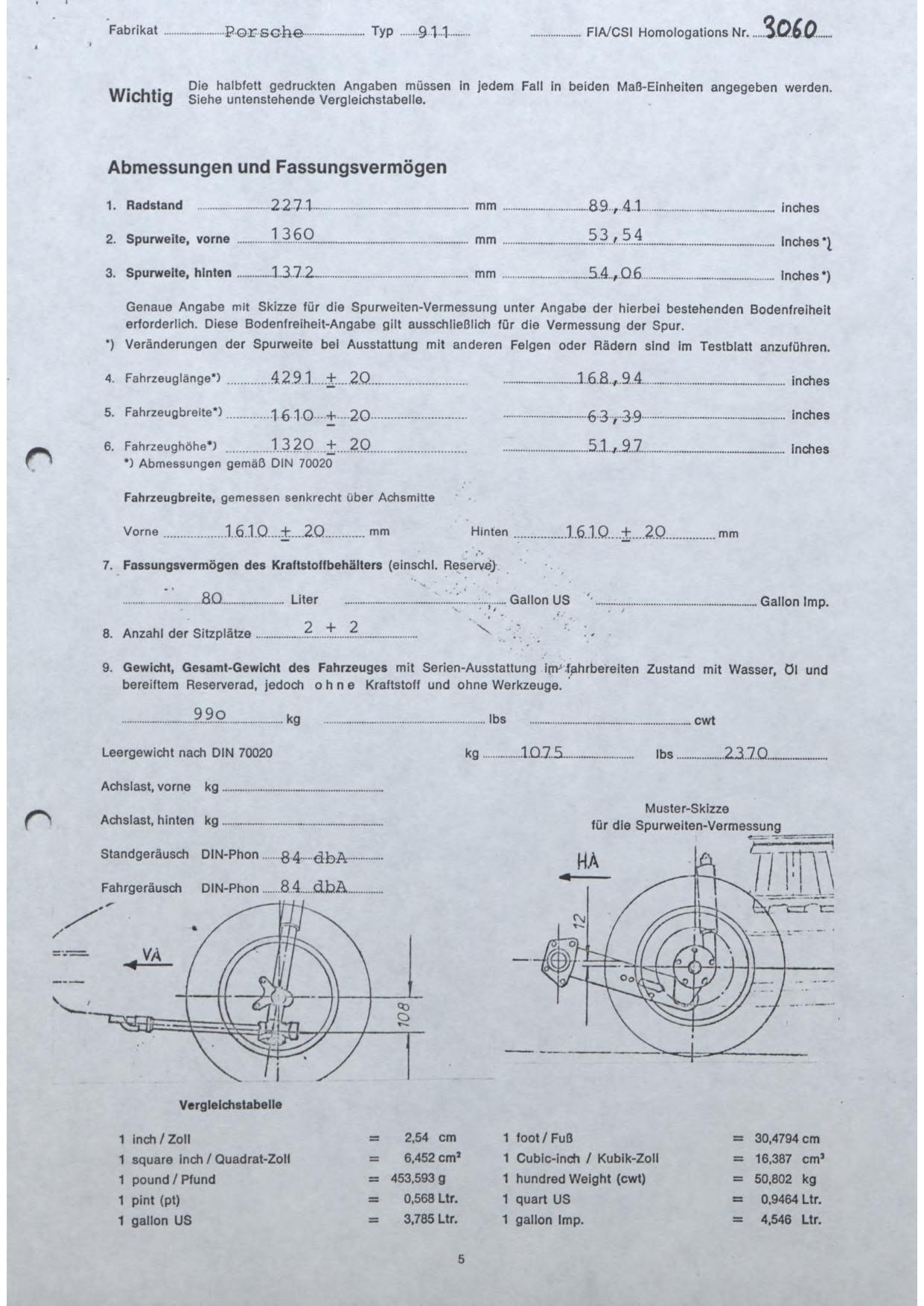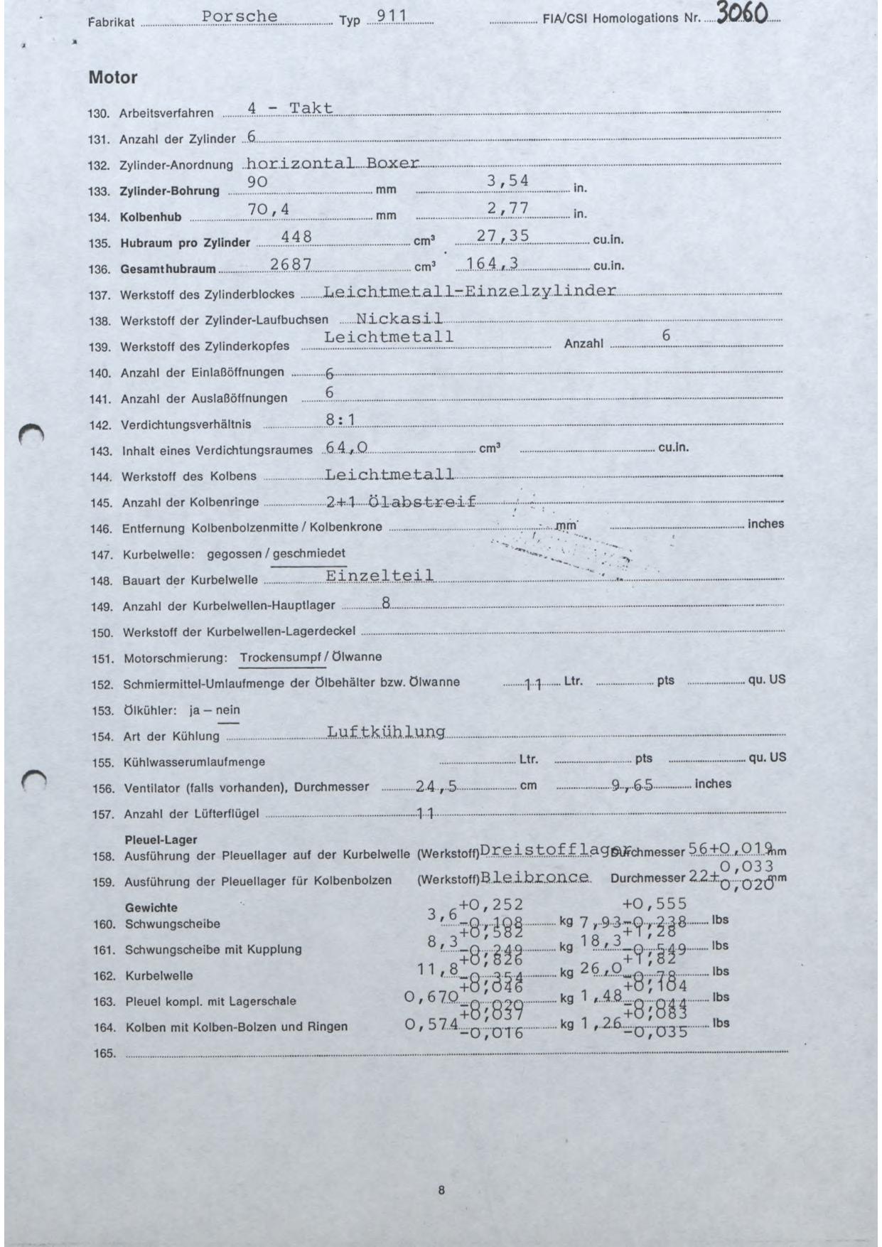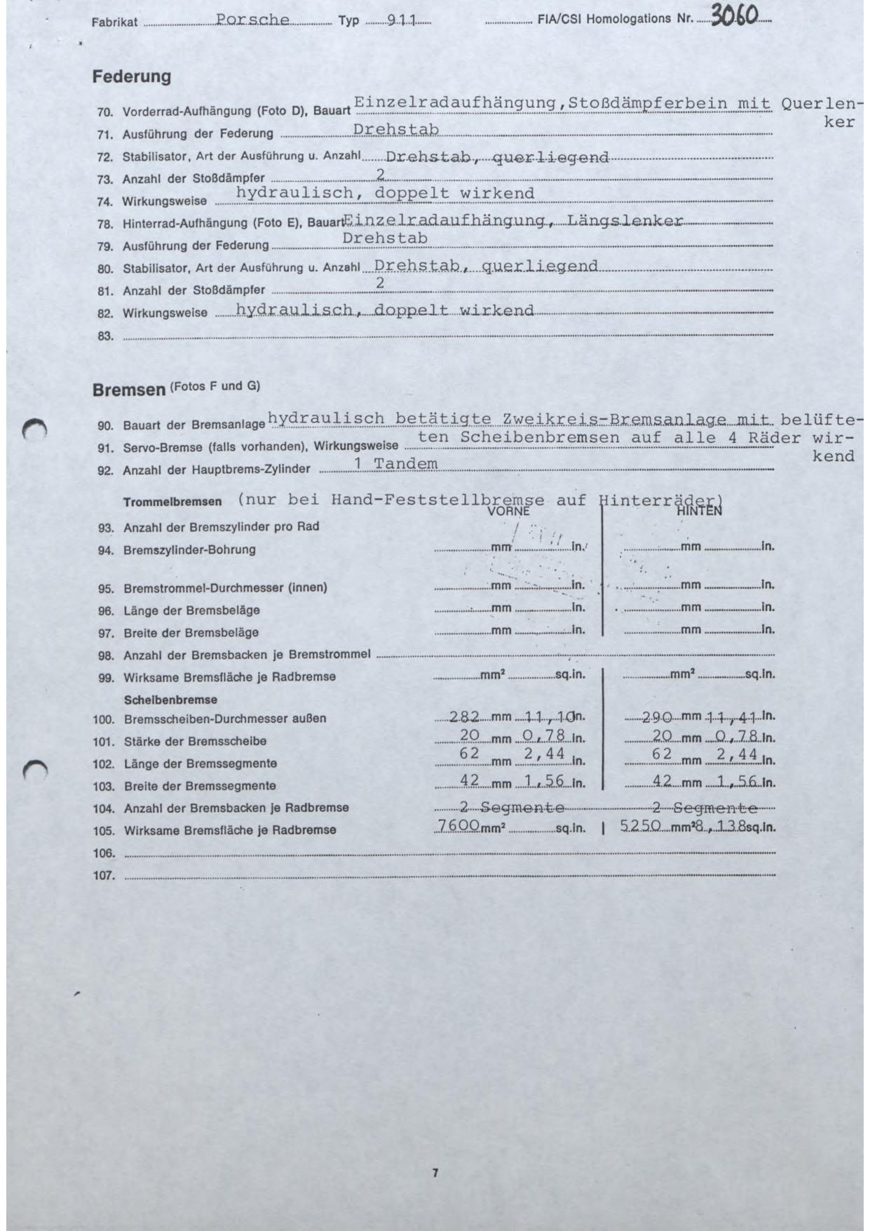 FIA Homologation Protocol for Porsche-911 2.7, 1973