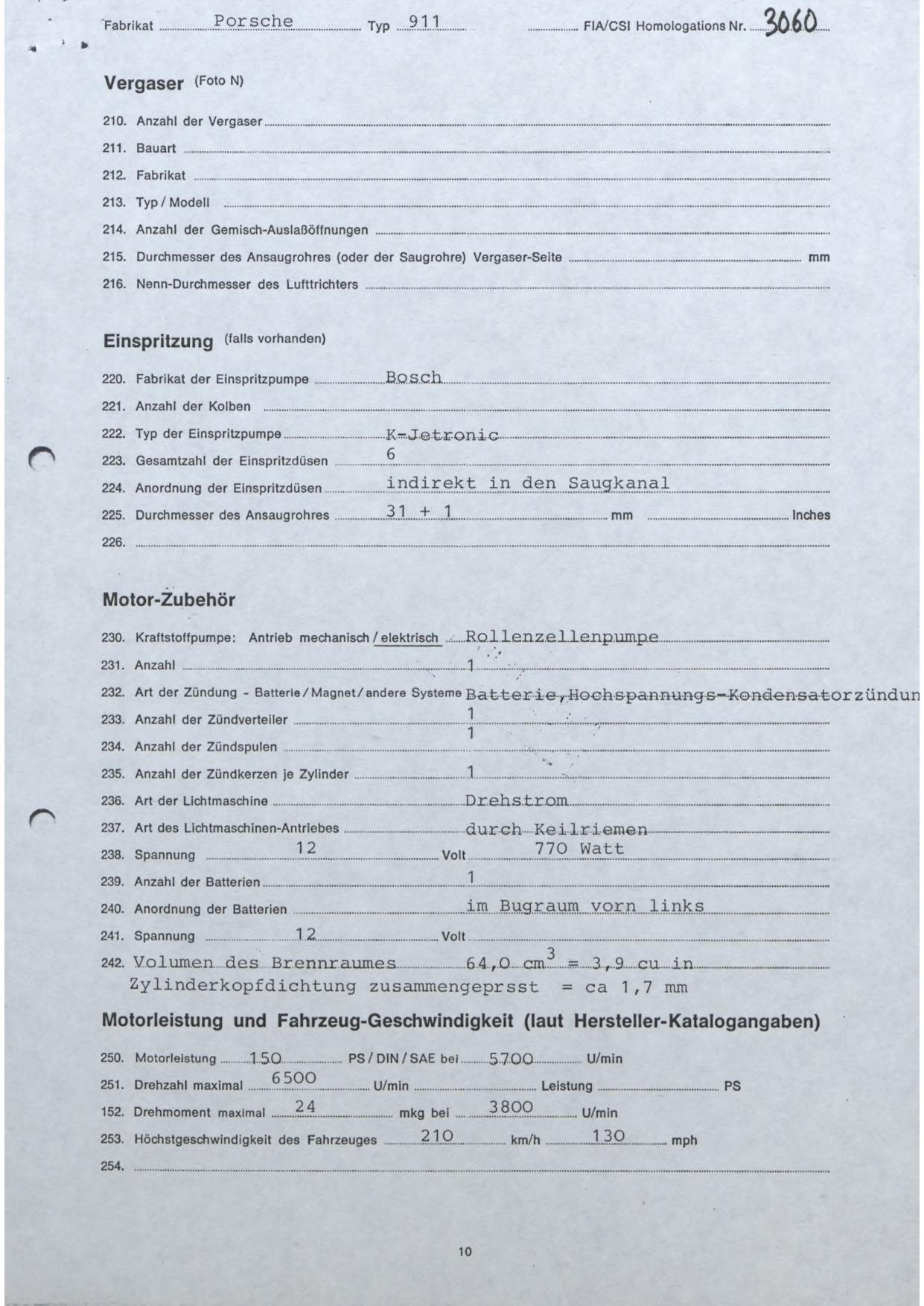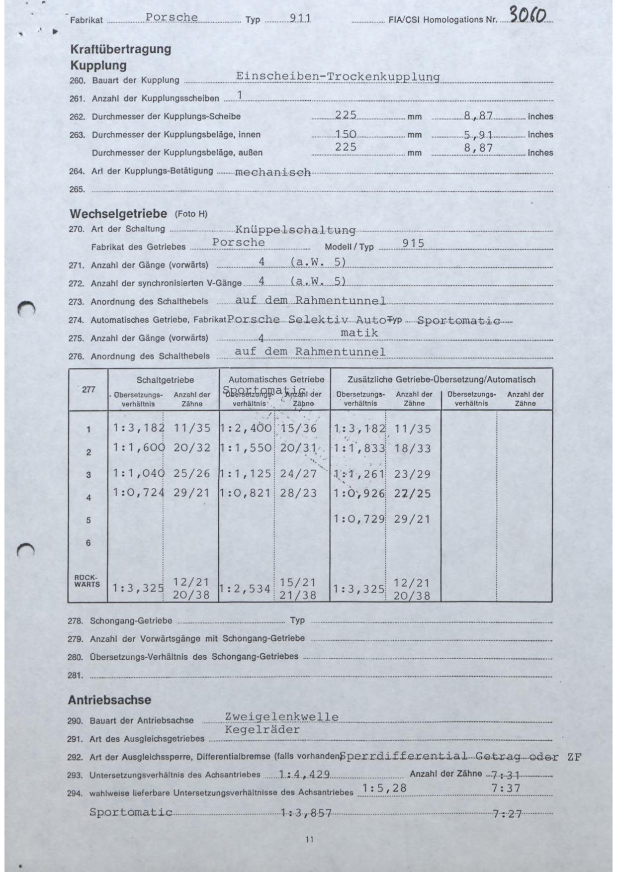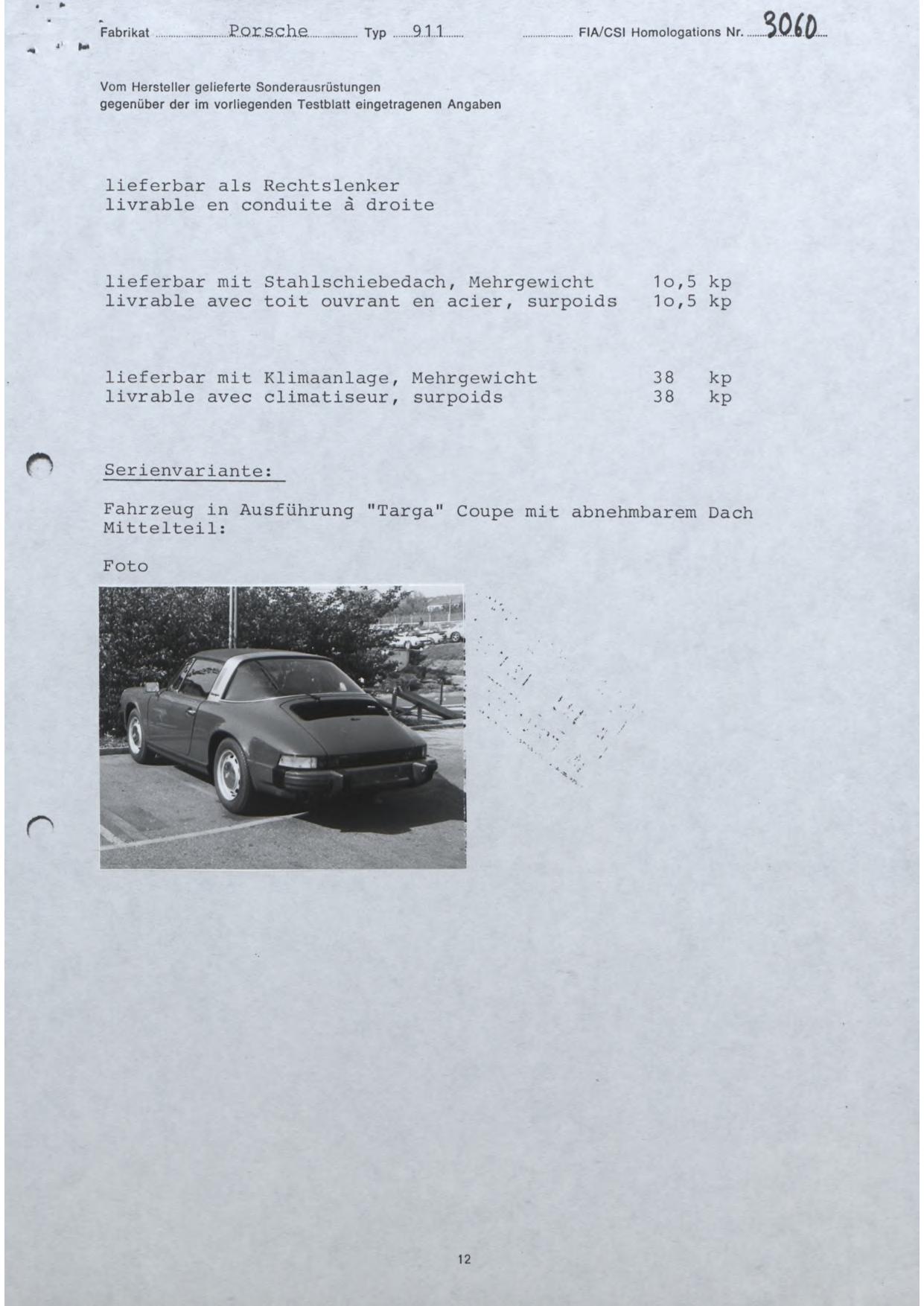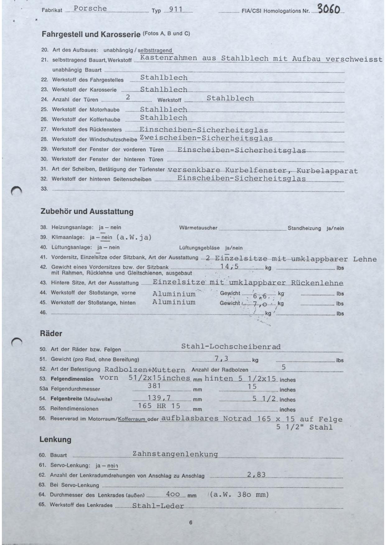 FIA Homologation Protocol for Porsche-911 2.7, 1973