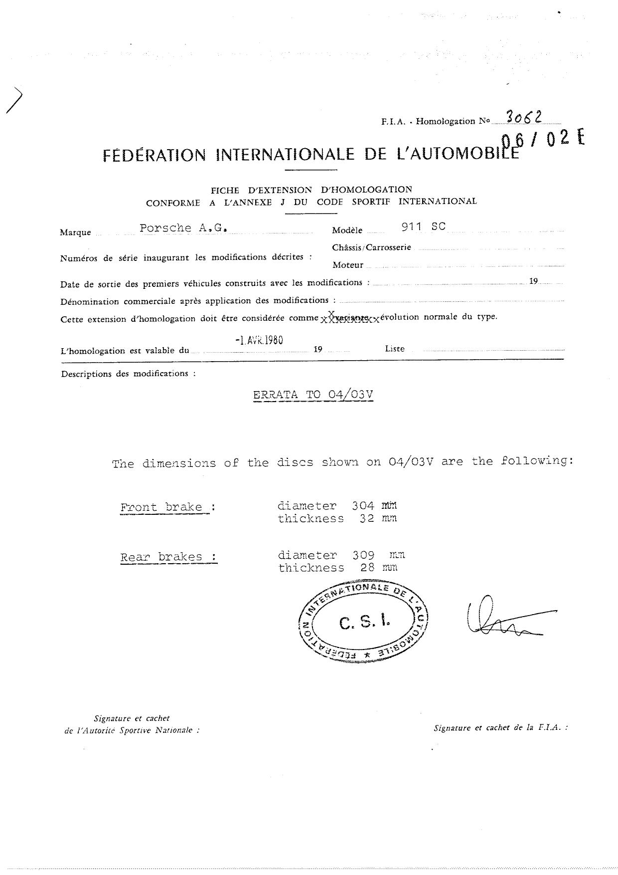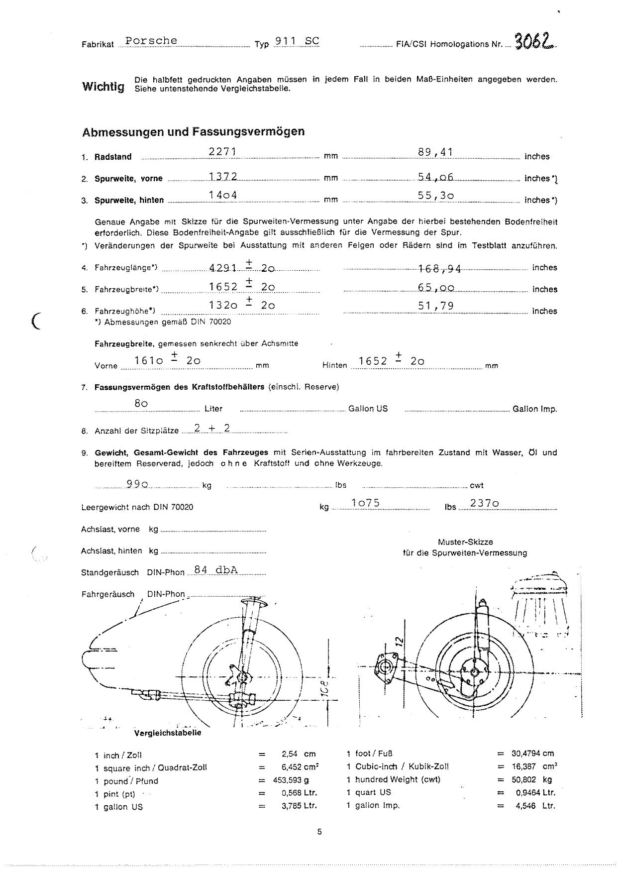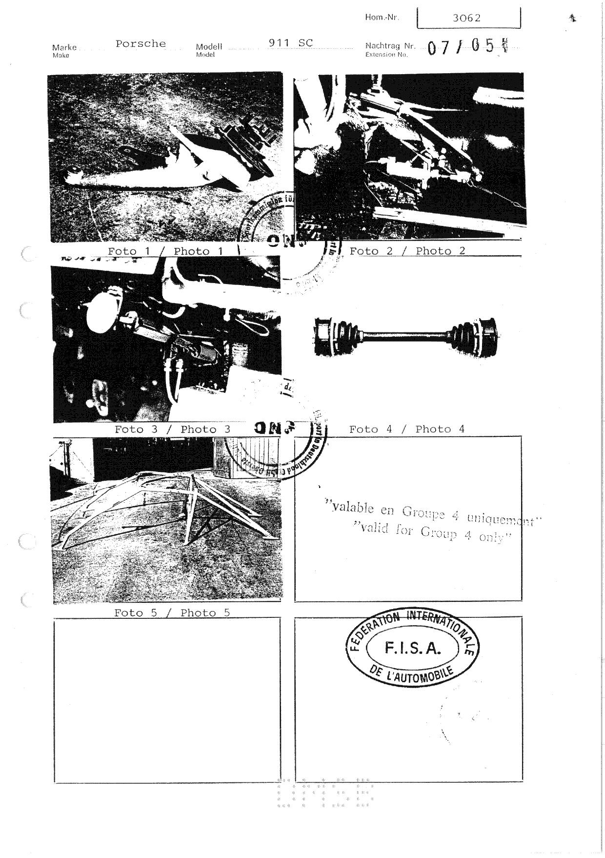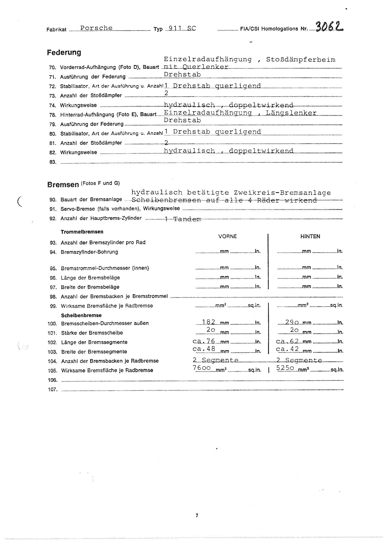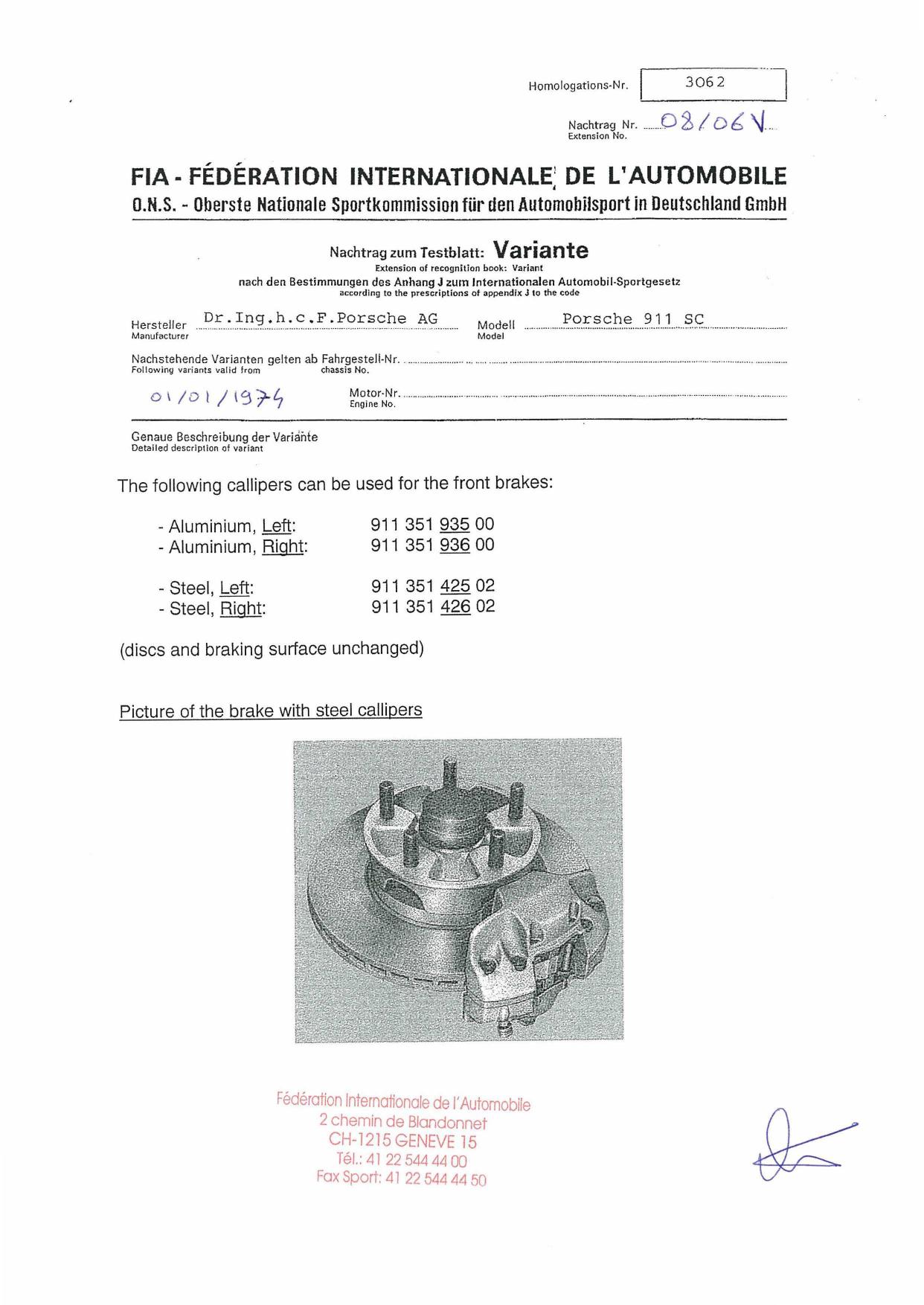 FIA Homologation Protocol for Porsche 911 Carrera 2.7 chassis #911 460 0001