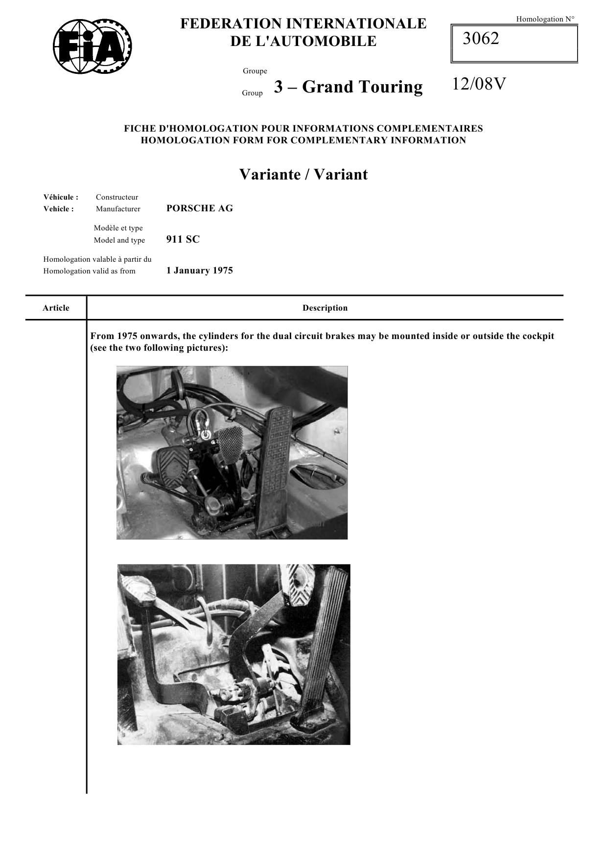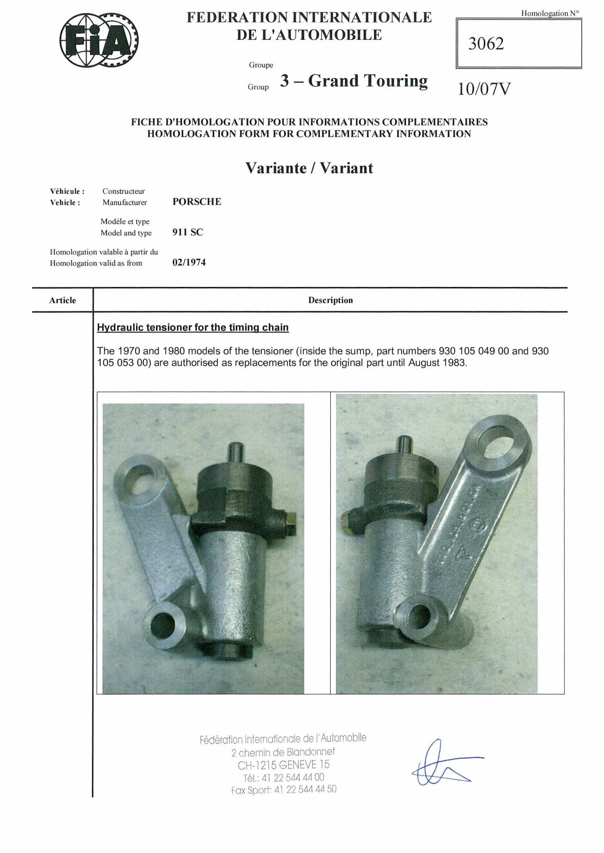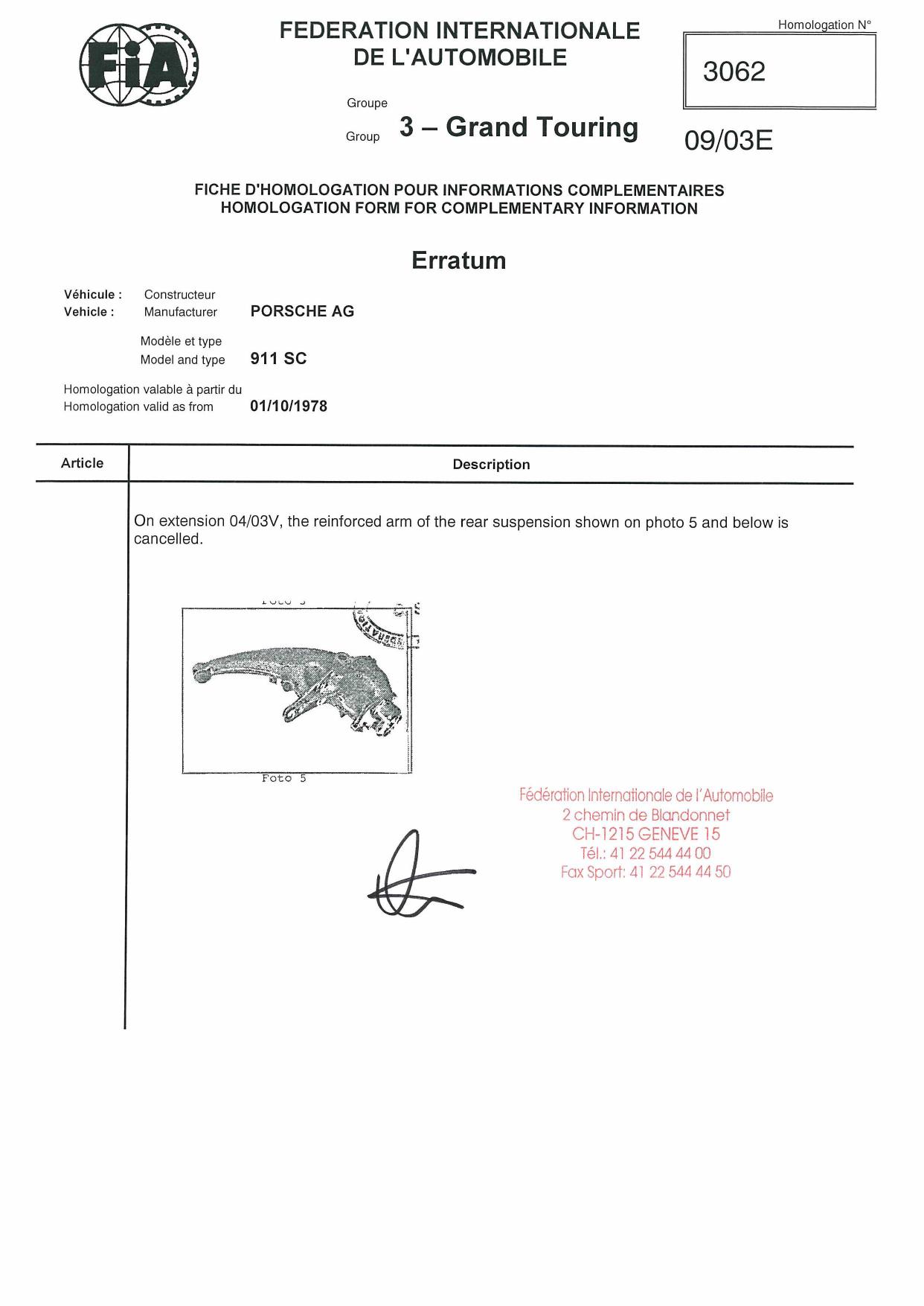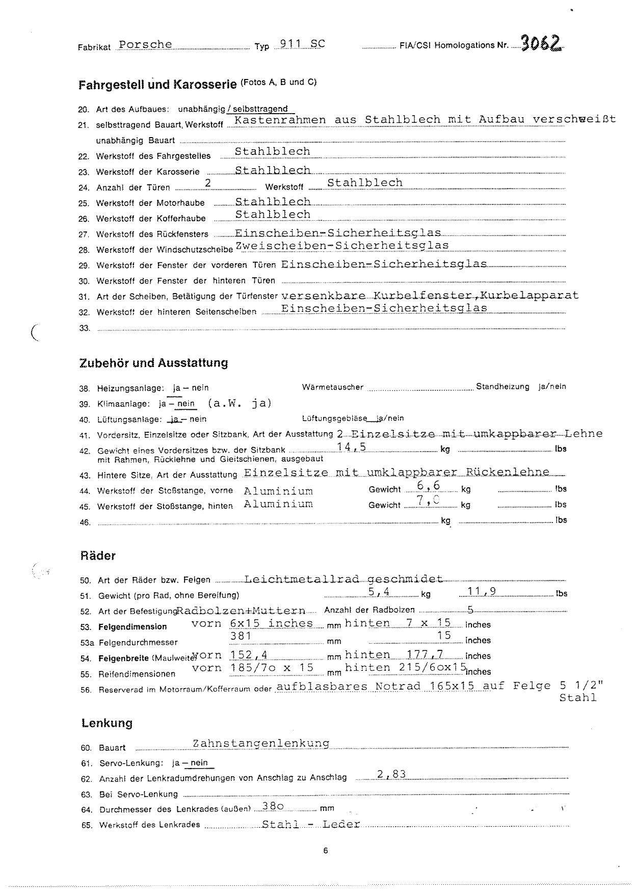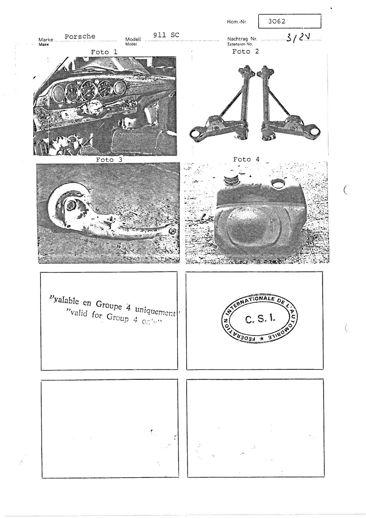 FIA Homologation Protocol for Porsche 911 Carrera 2.7 chassis #911 460 0001