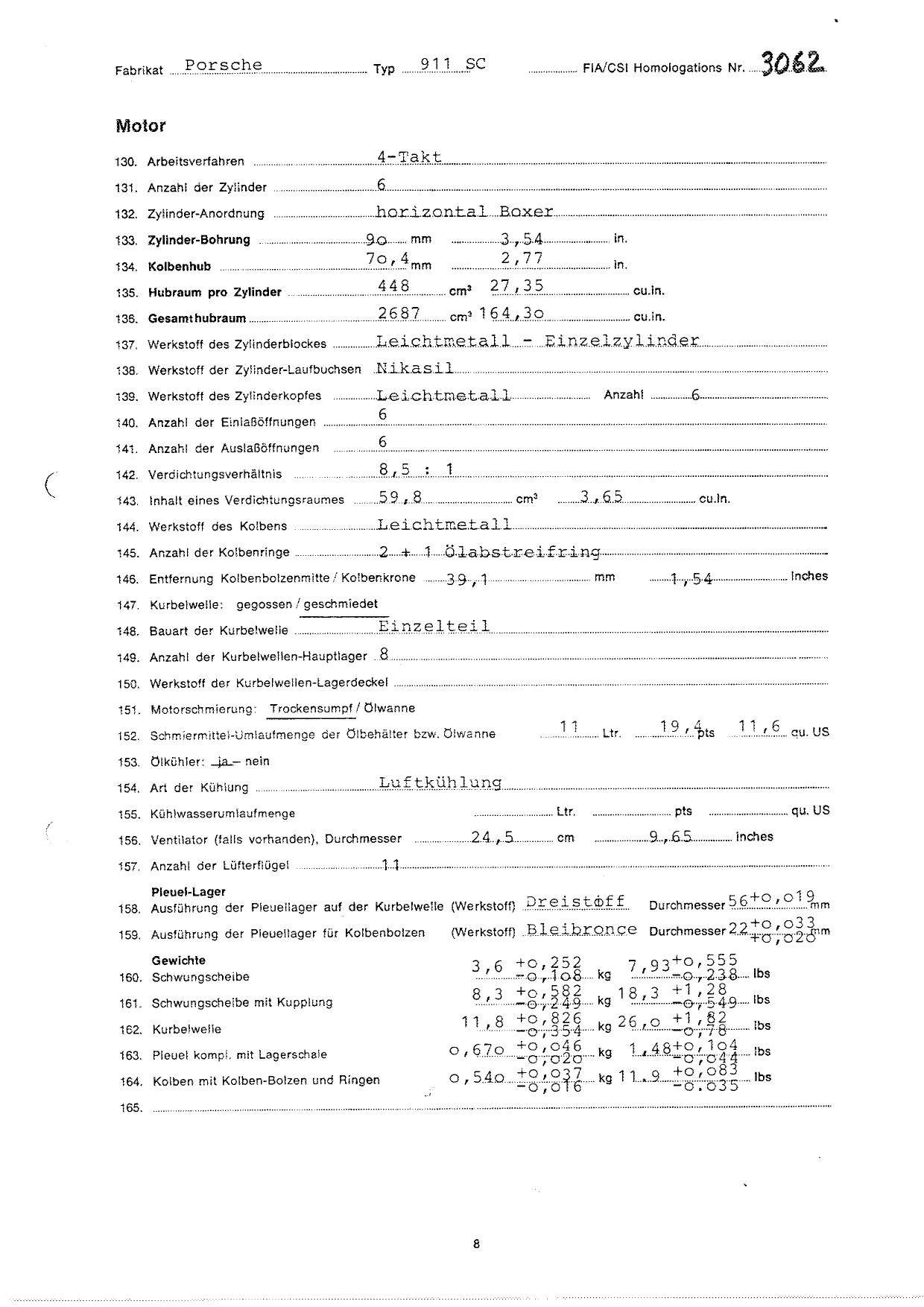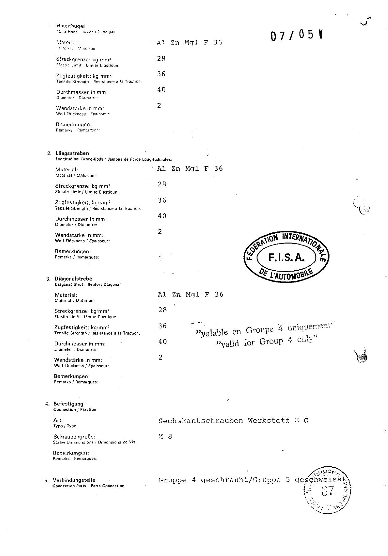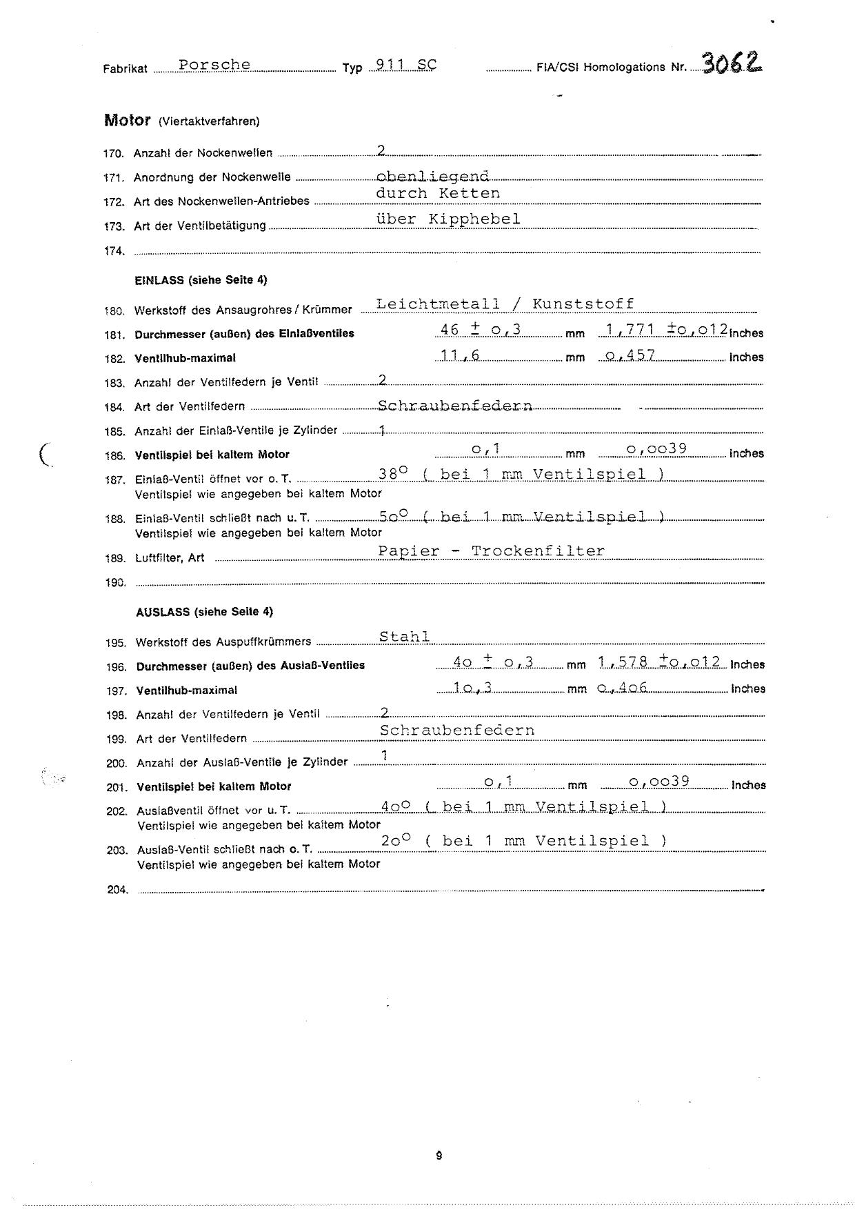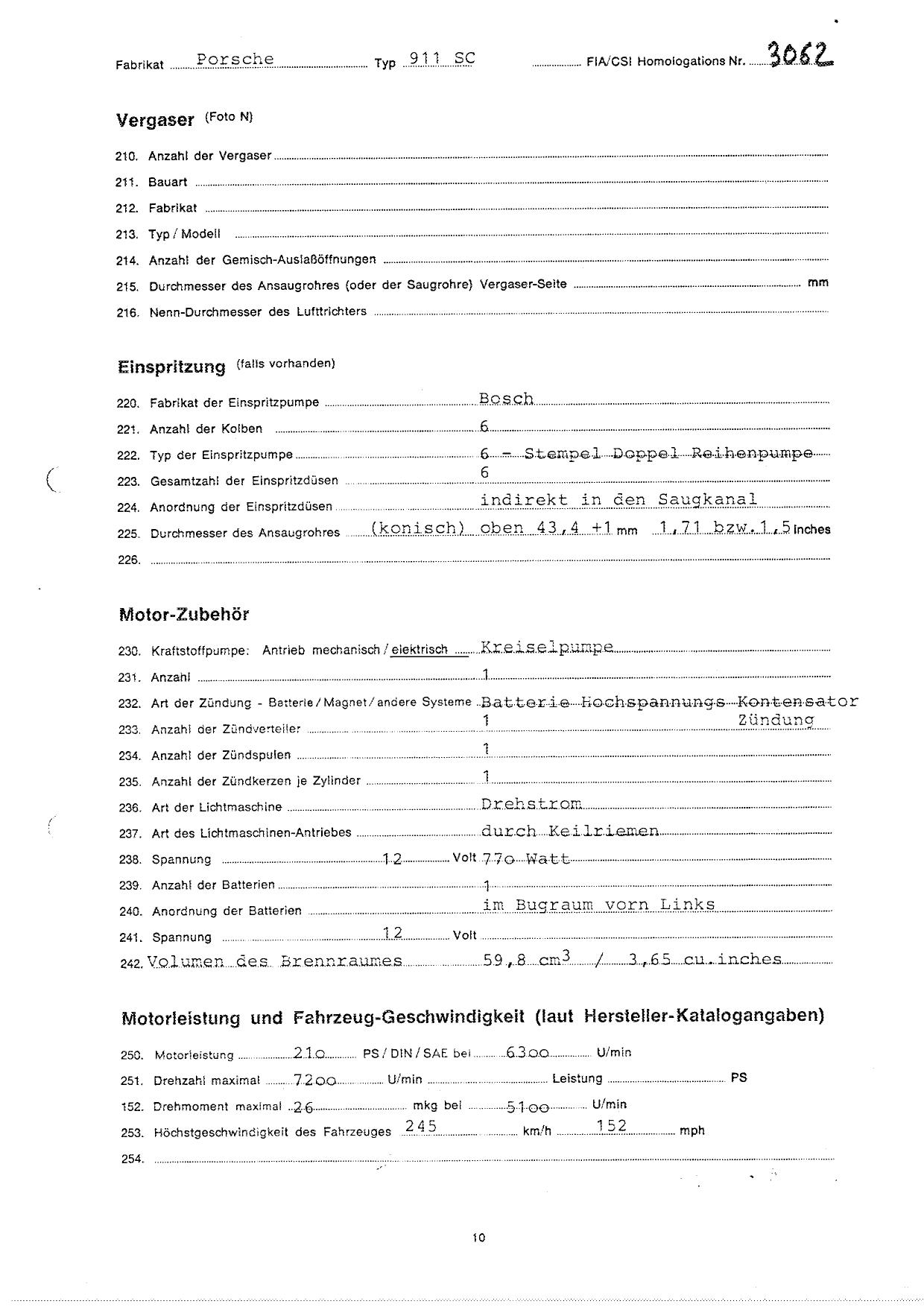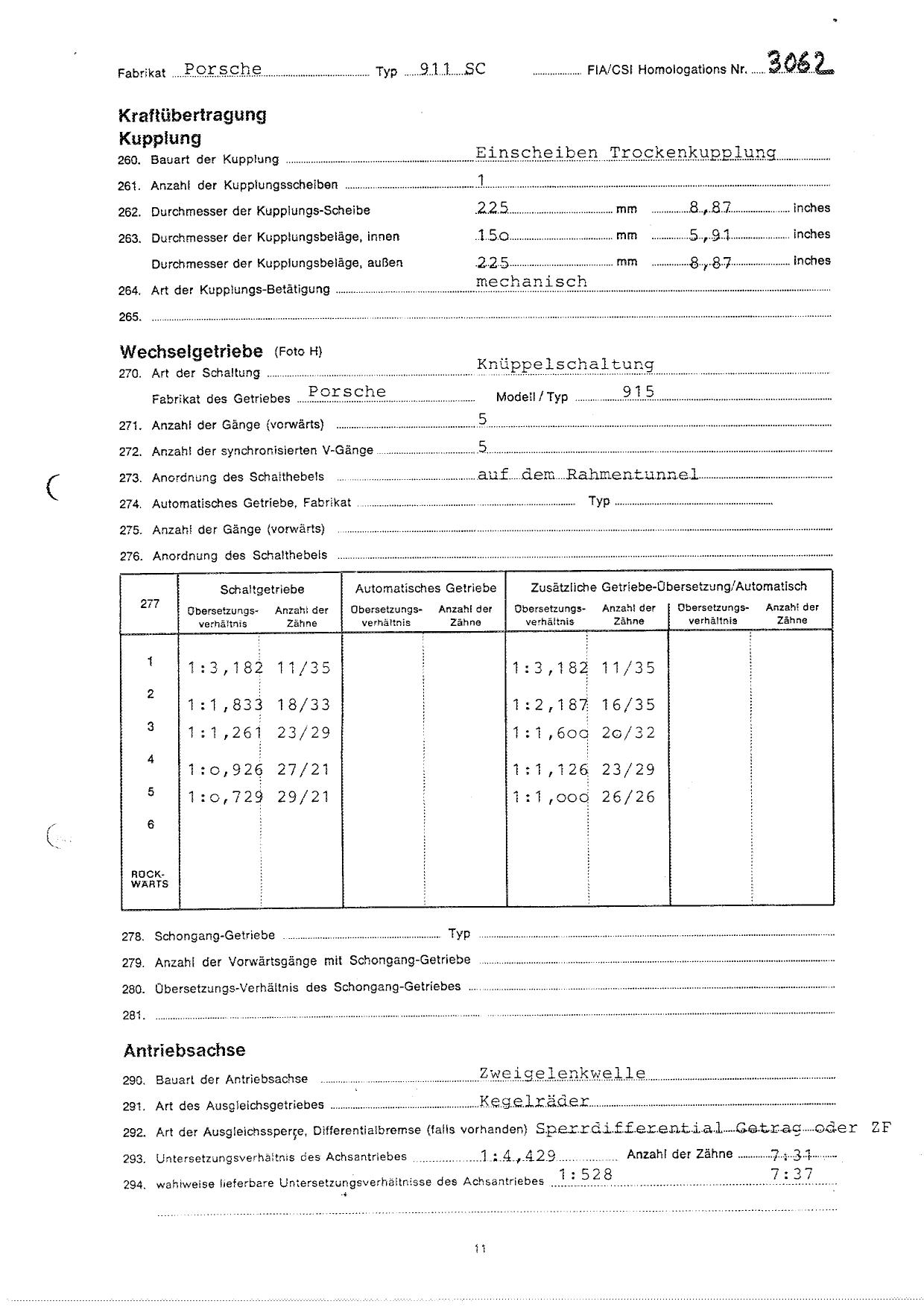 FIA Homologation Protocol for Porsche 911 Carrera 2.7 chassis #911 460 0001