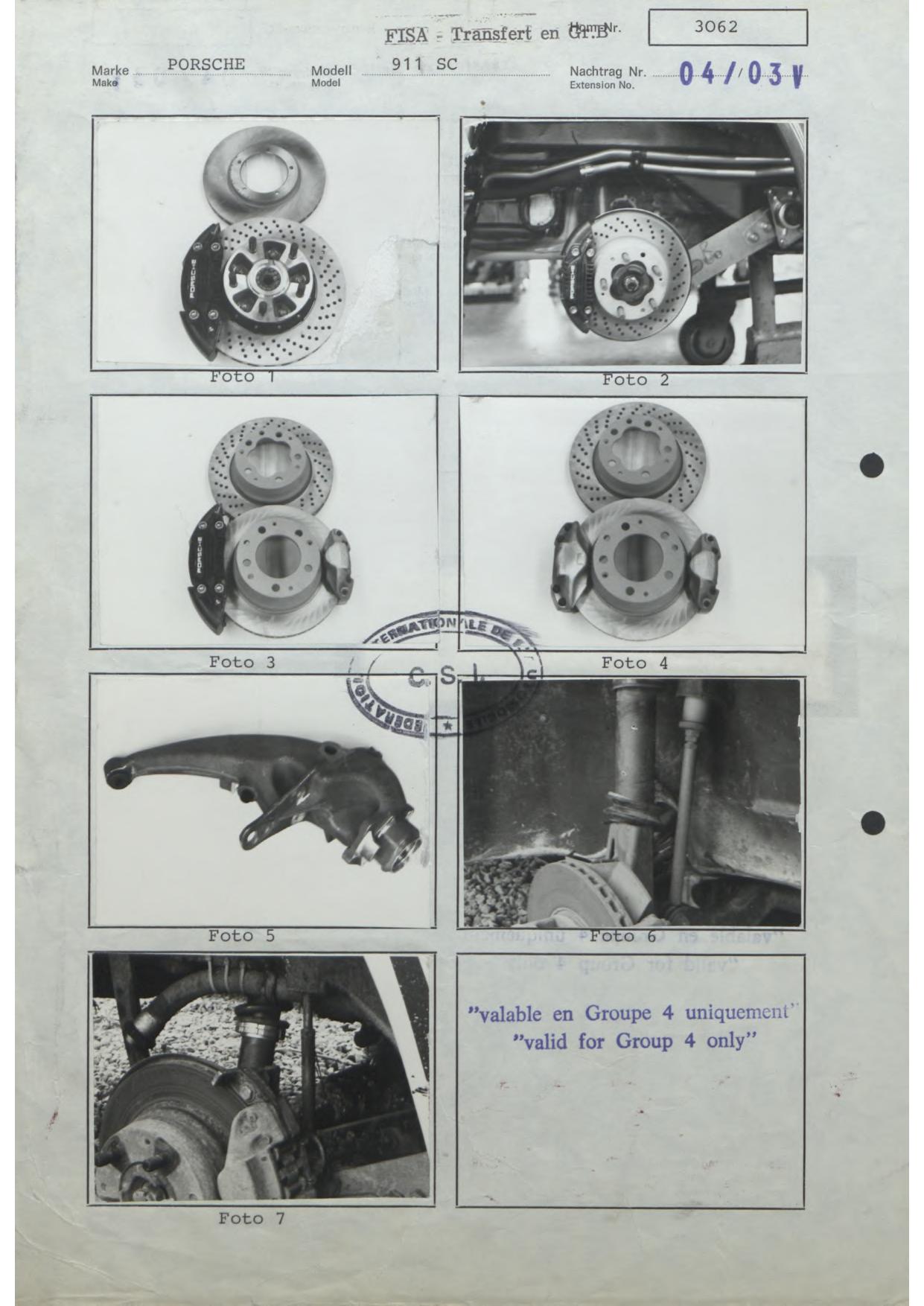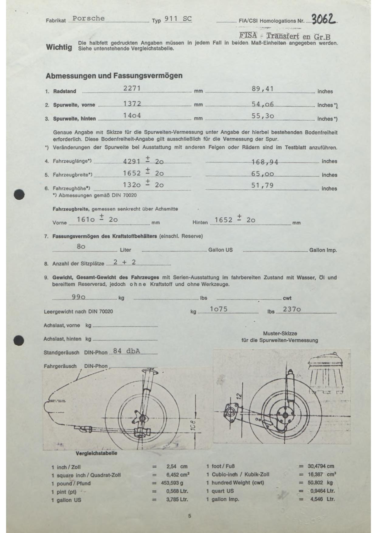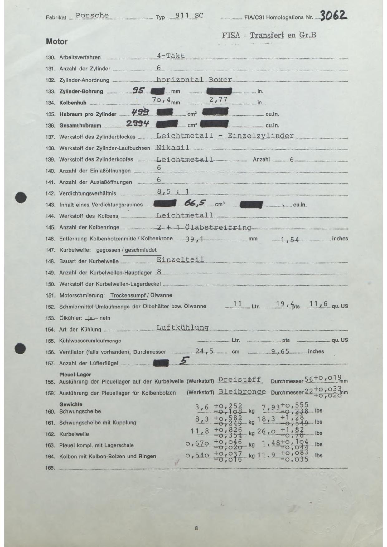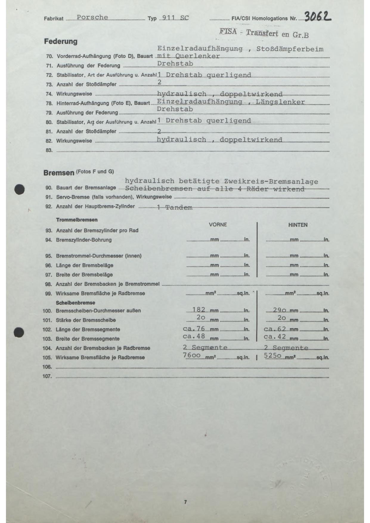 FIA Homologation Protocol for Porsche-911 Carrera 2.7 with 3.0 engine type 911/74 for IROC, 1973