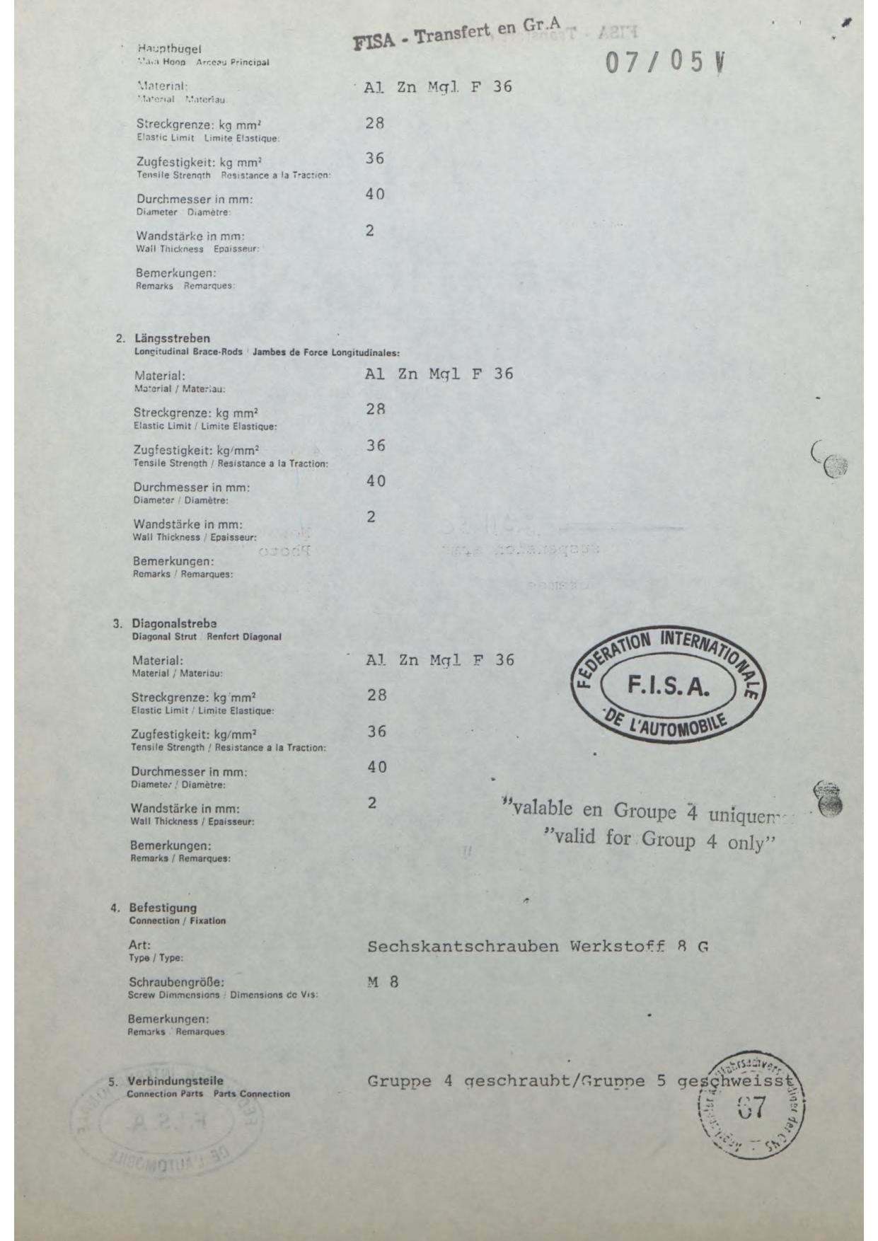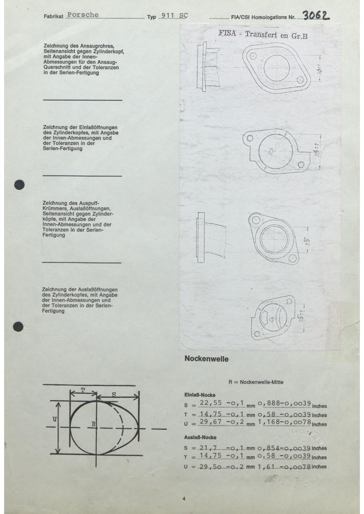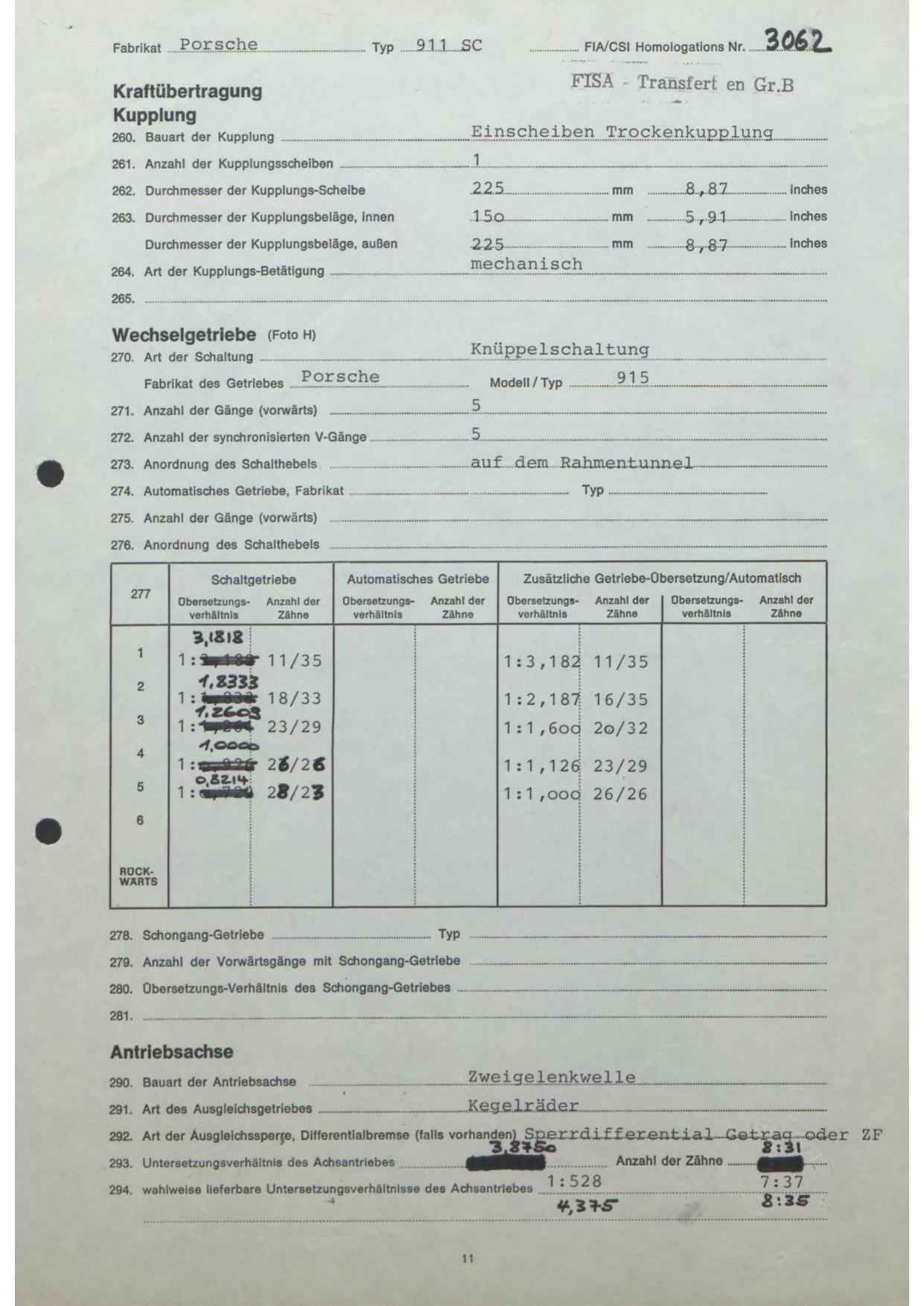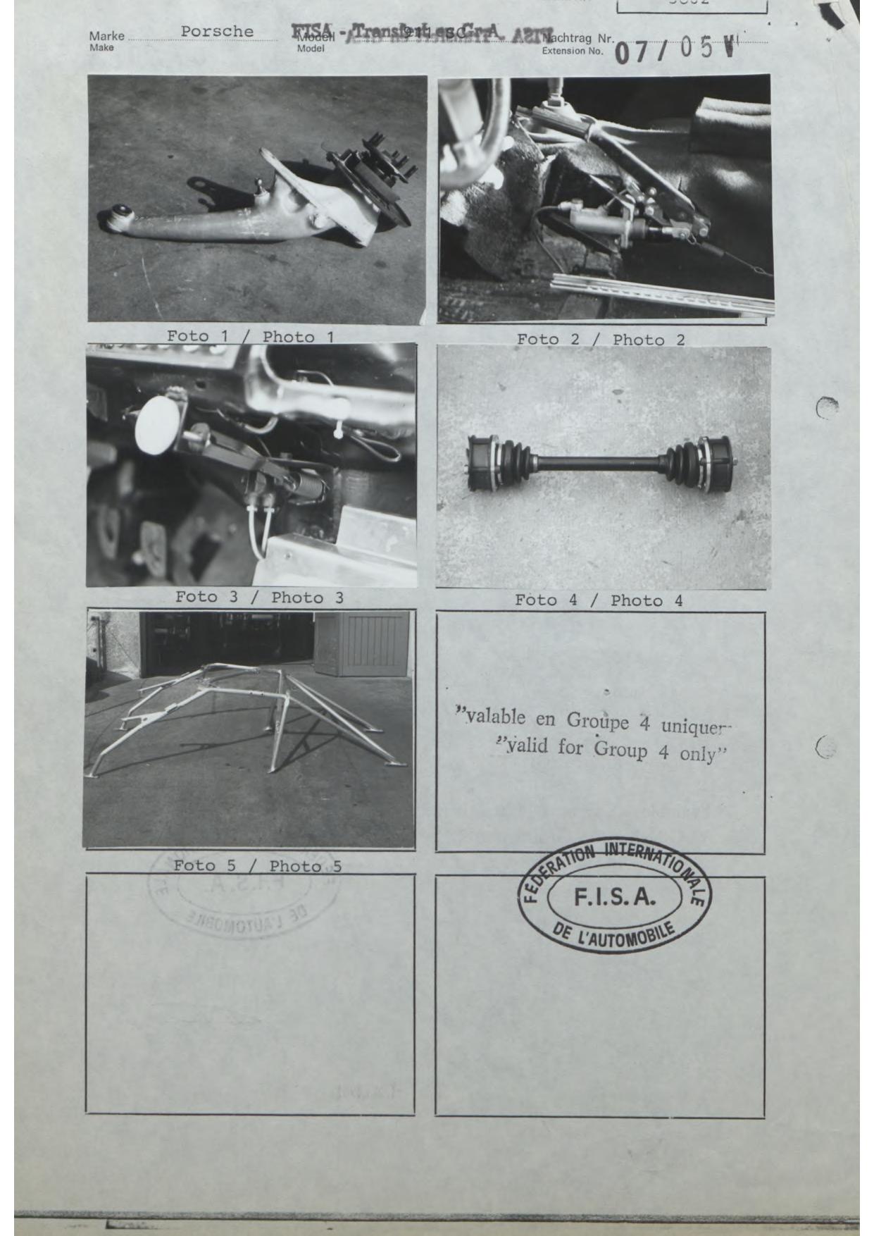 FIA Homologation Protocol for Porsche-911 Carrera 2.7 with 3.0 engine type 911/74 for IROC, 1973