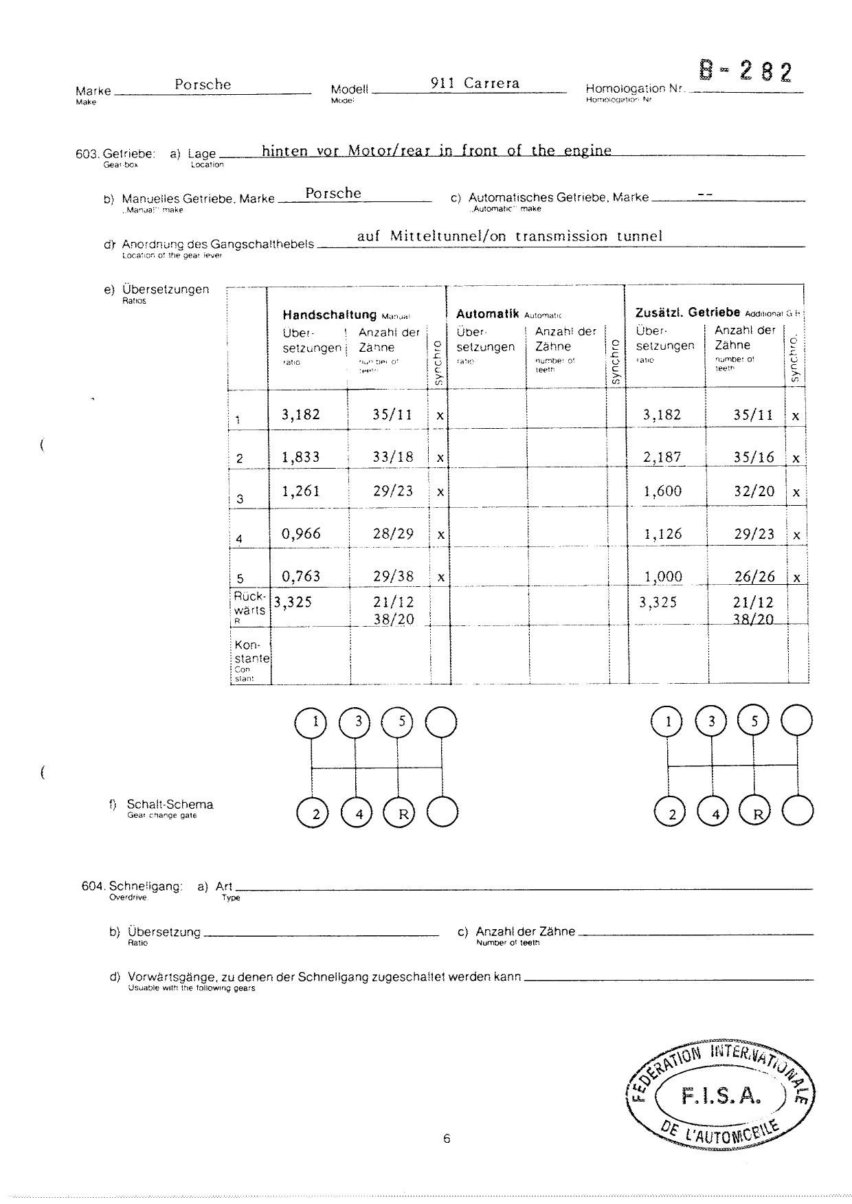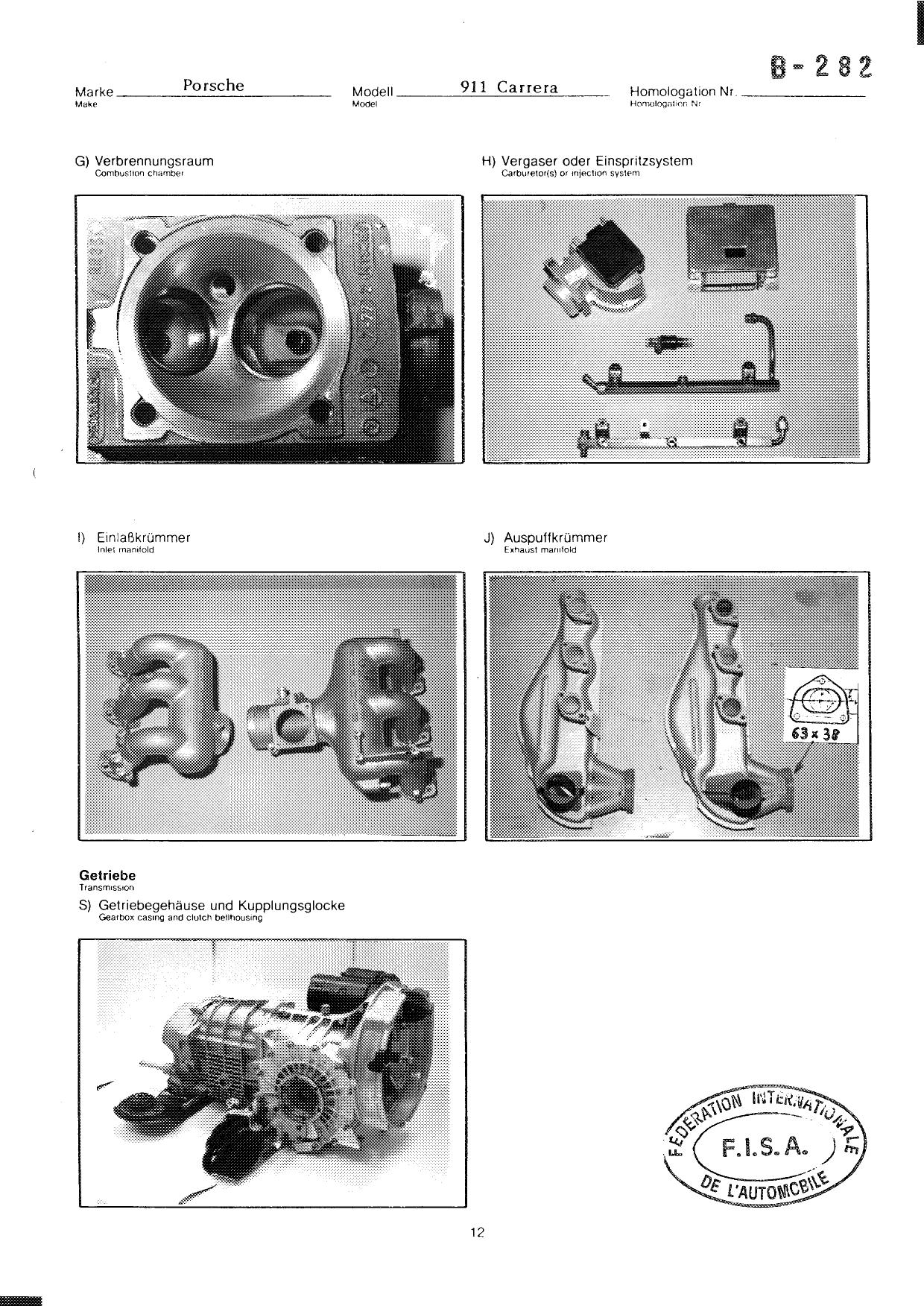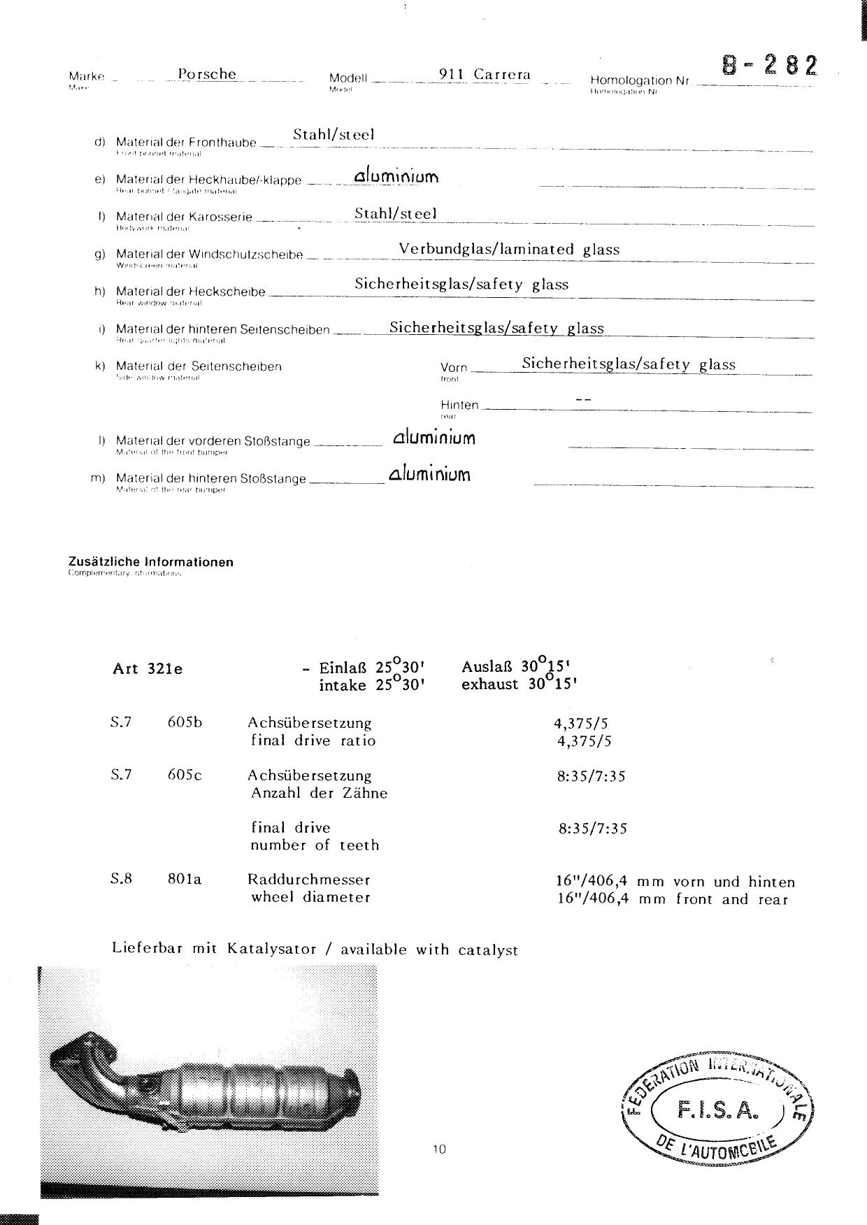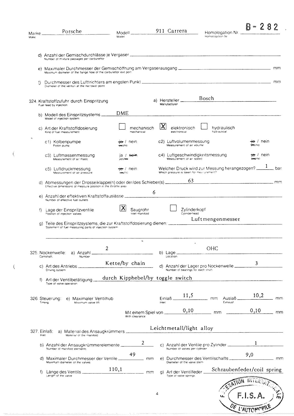 FIA Homologation Protocol for Porsche-911 Carrera 3.2, 1986