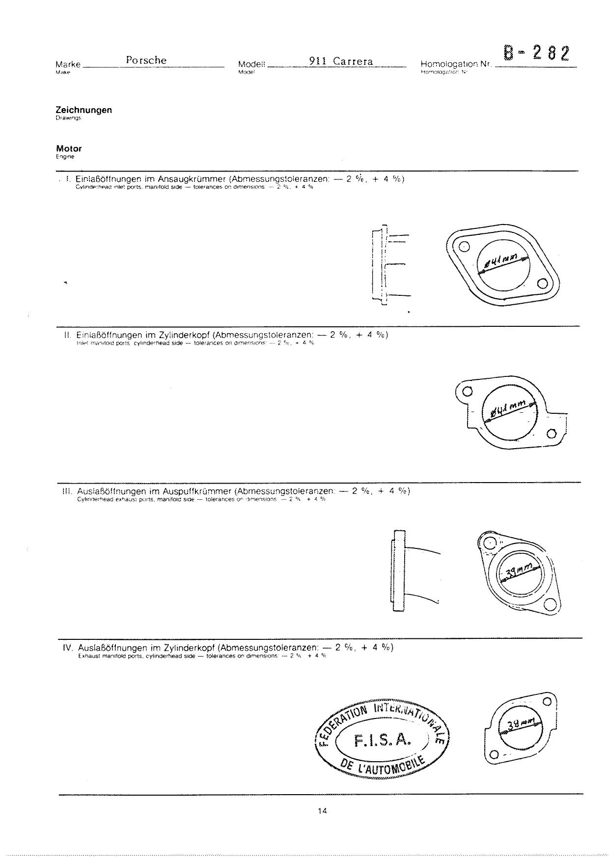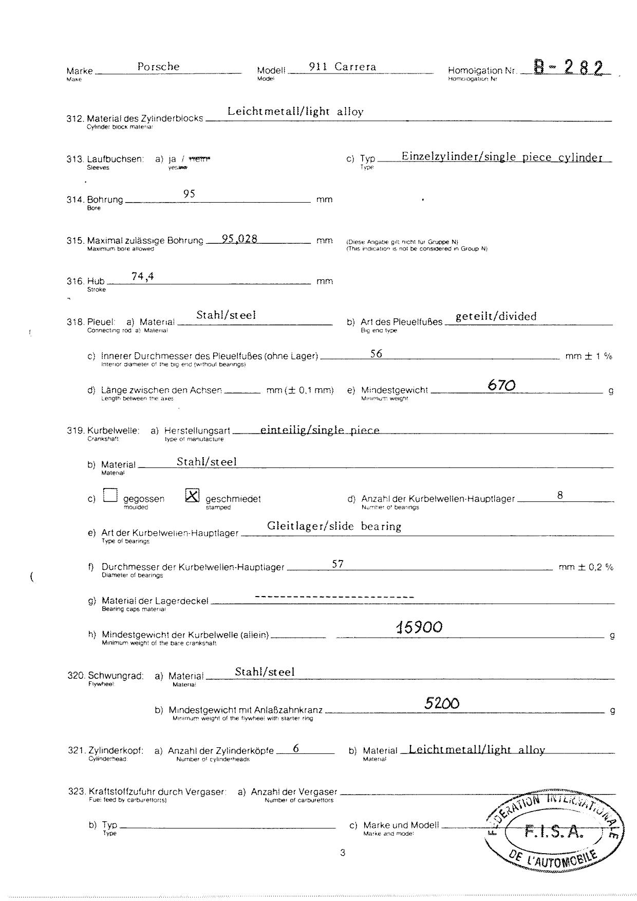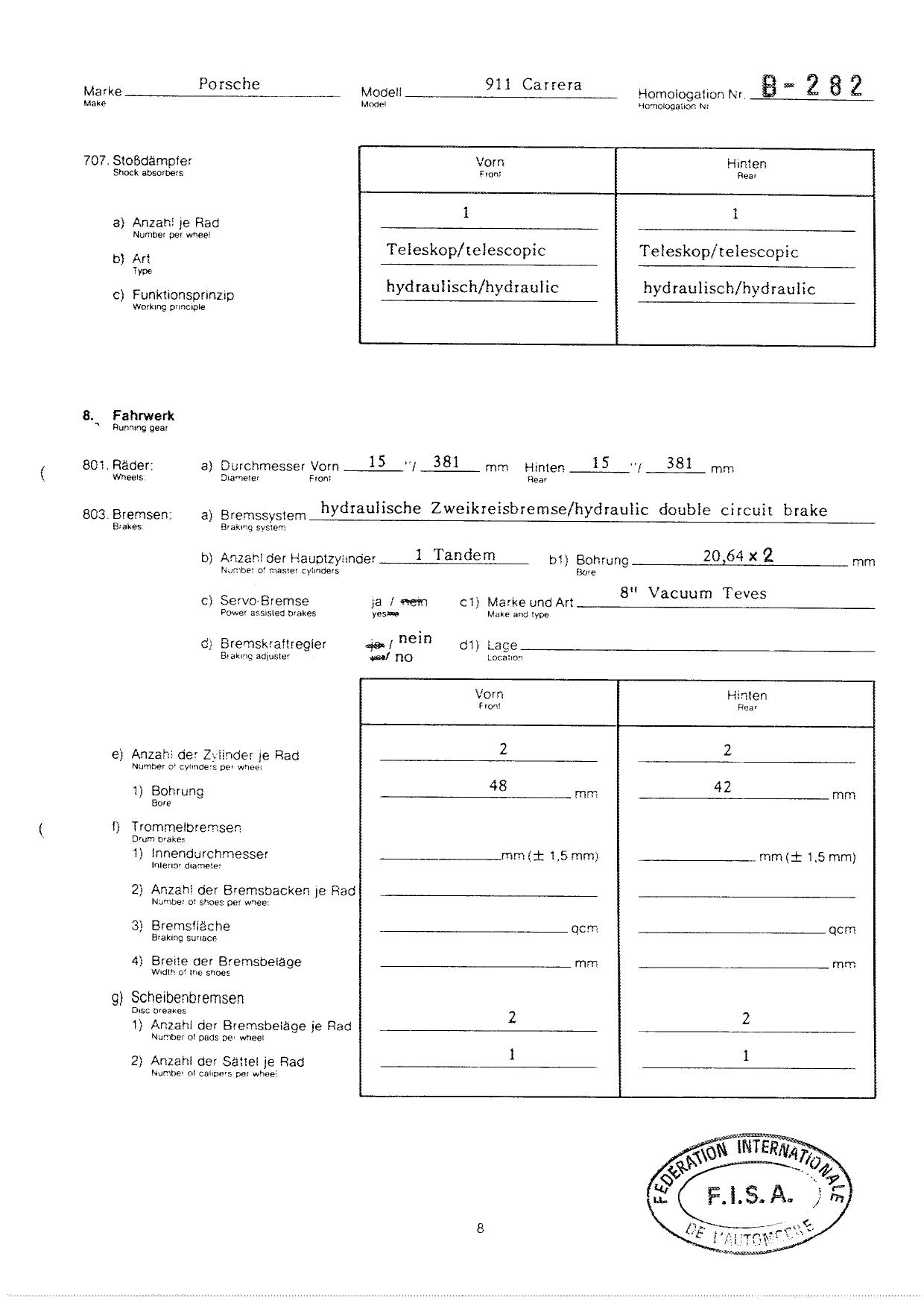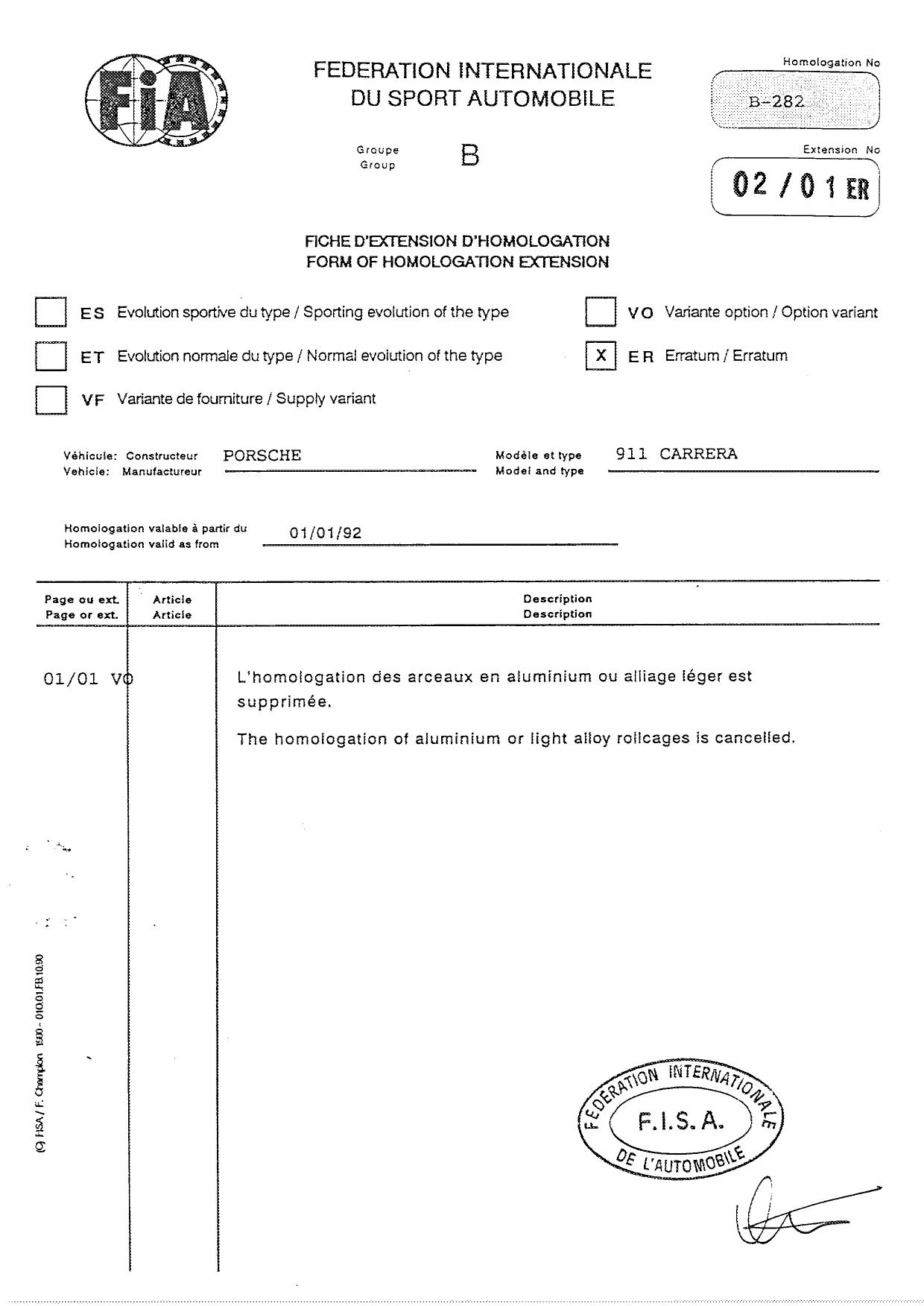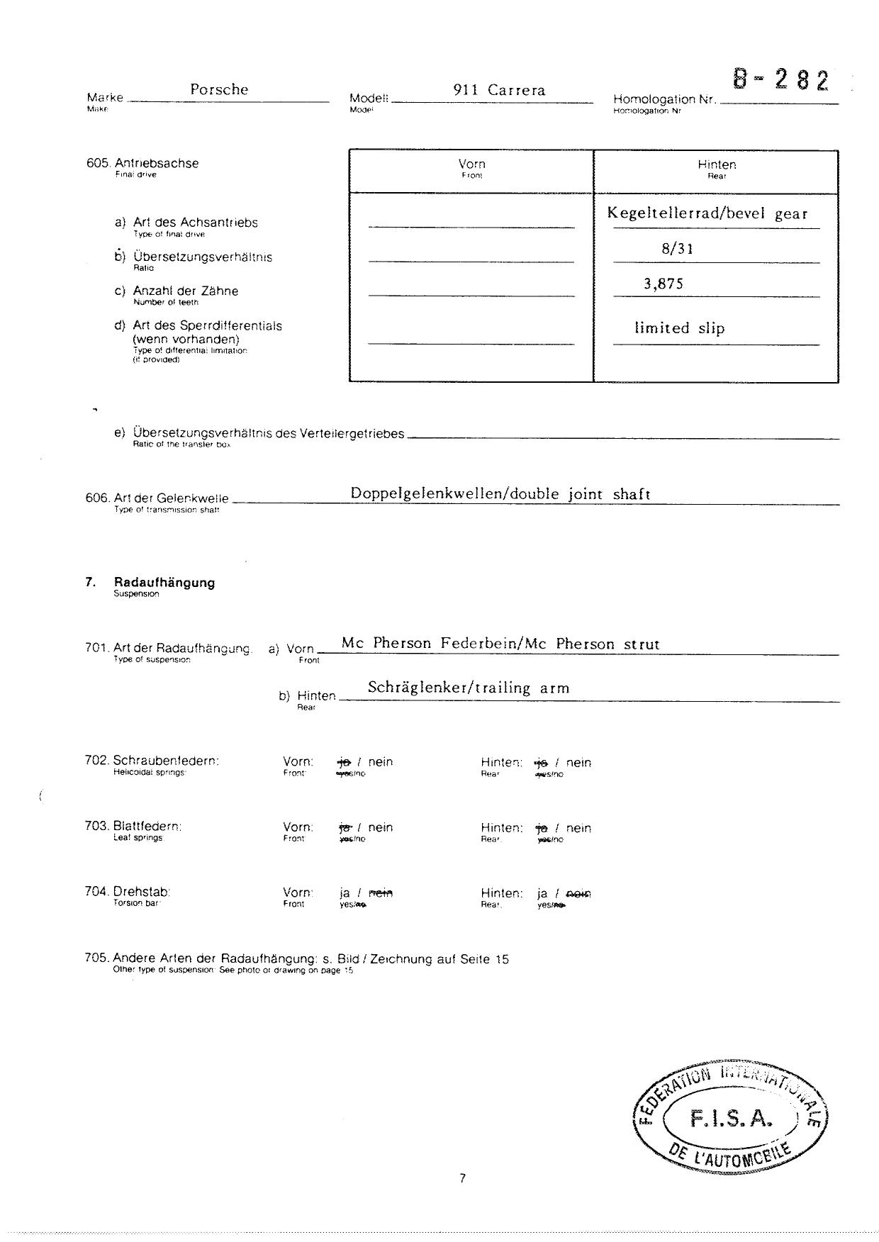 FIA Homologation Protocol for Porsche-911 Carrera 3.2, 1986
