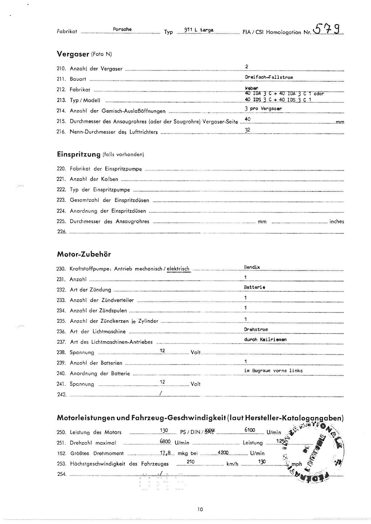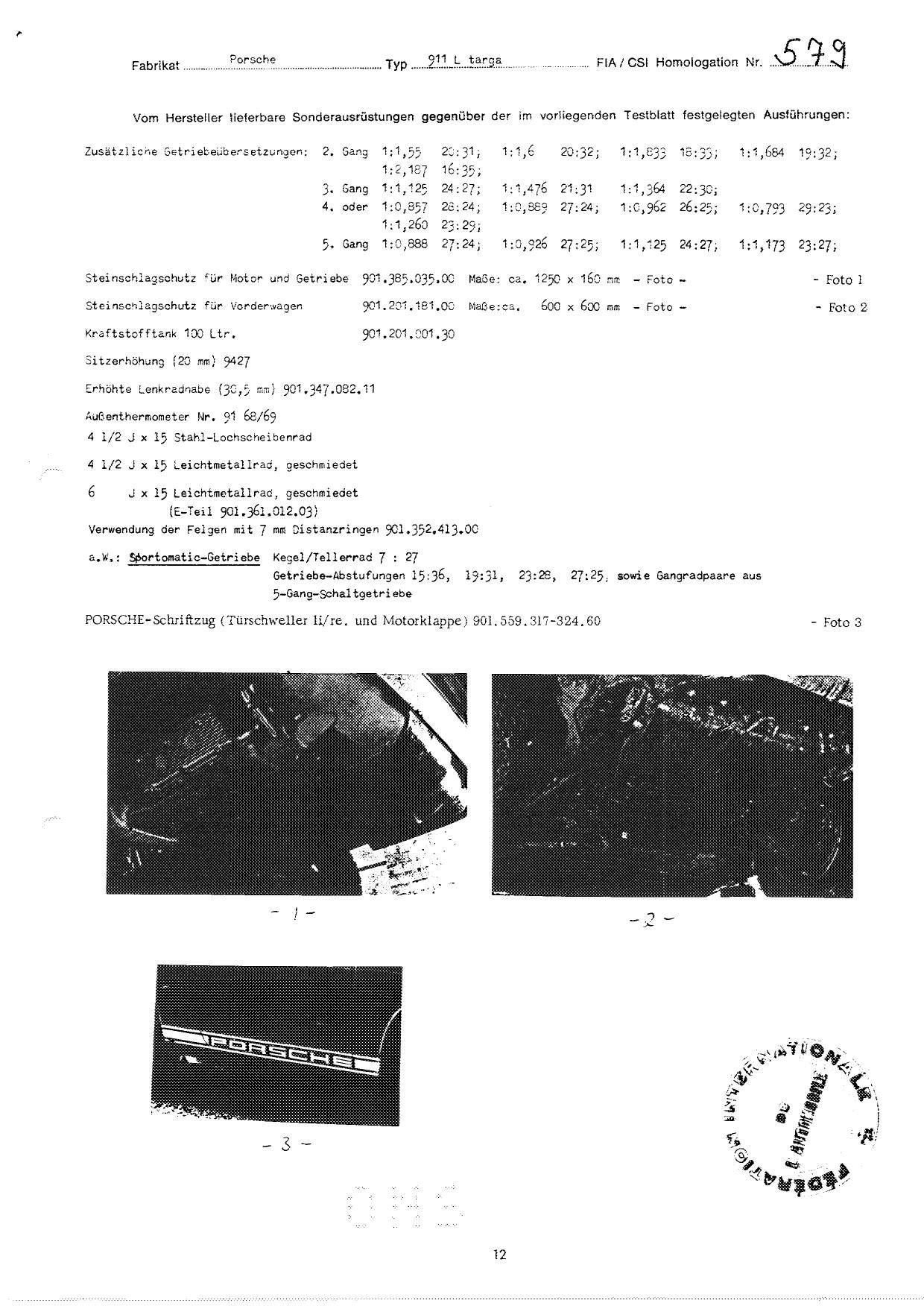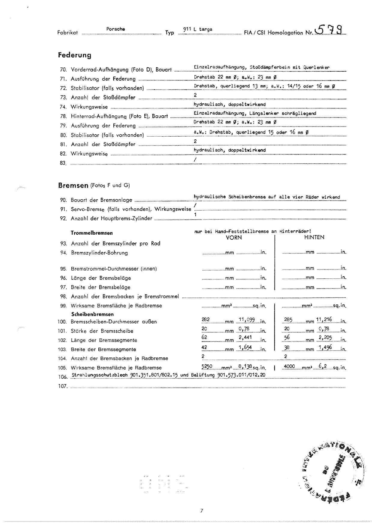 FIA Homologation Protocol for Porsche-911 L Targa, 1967