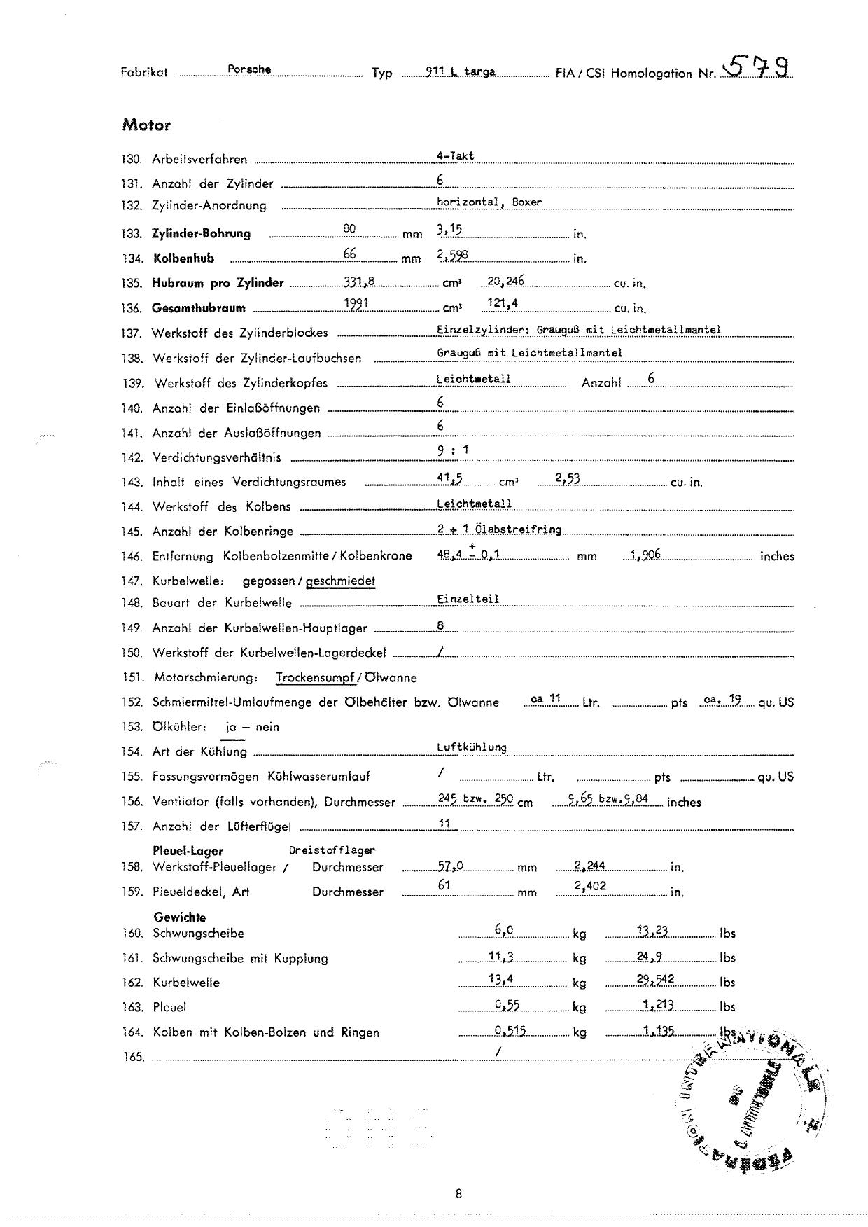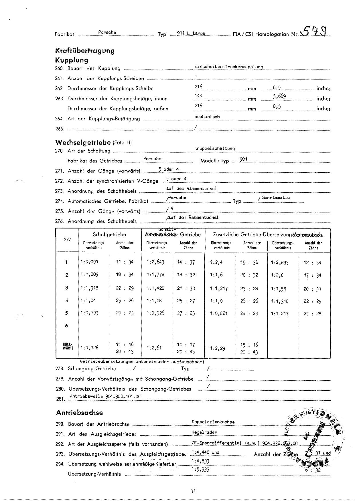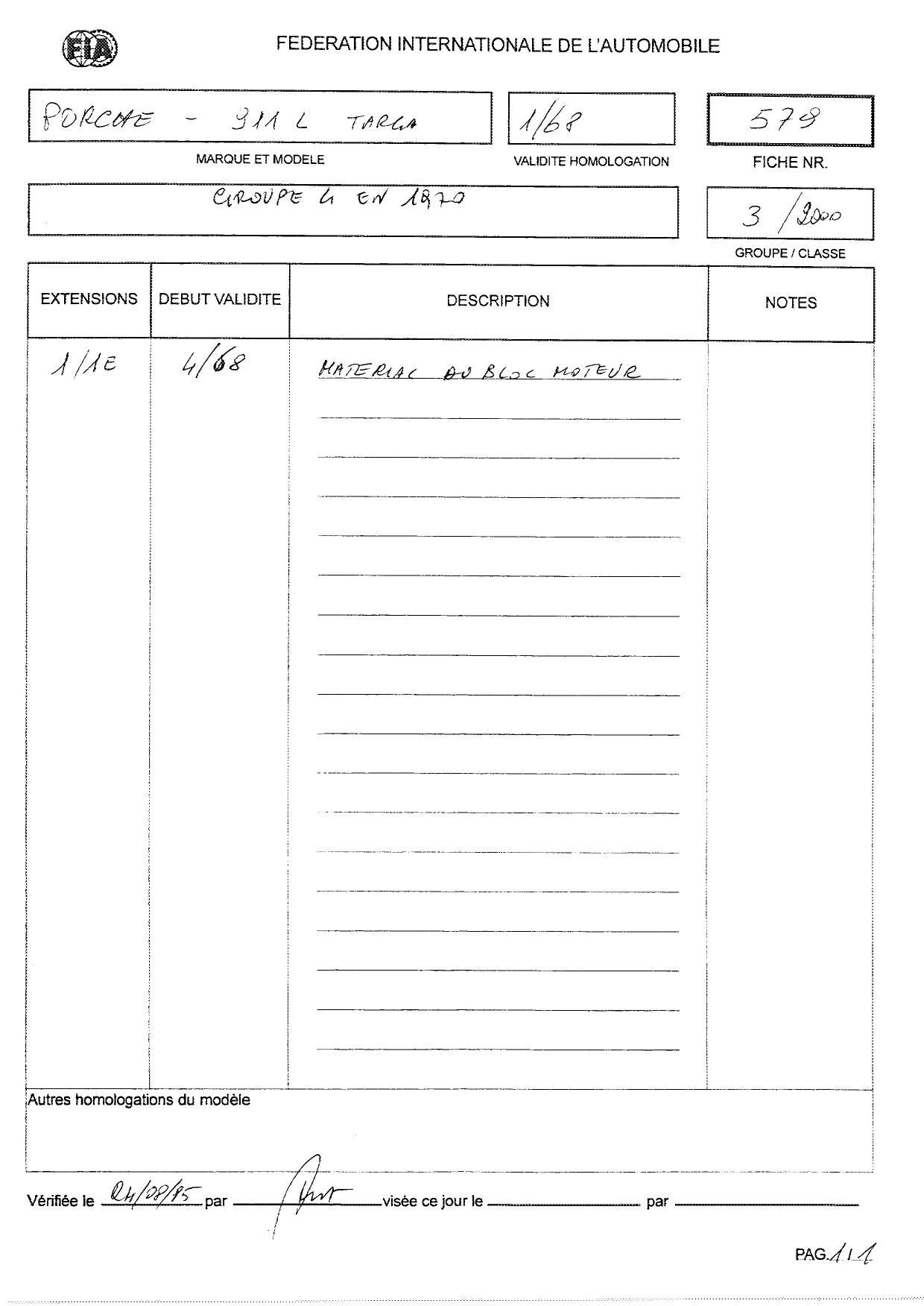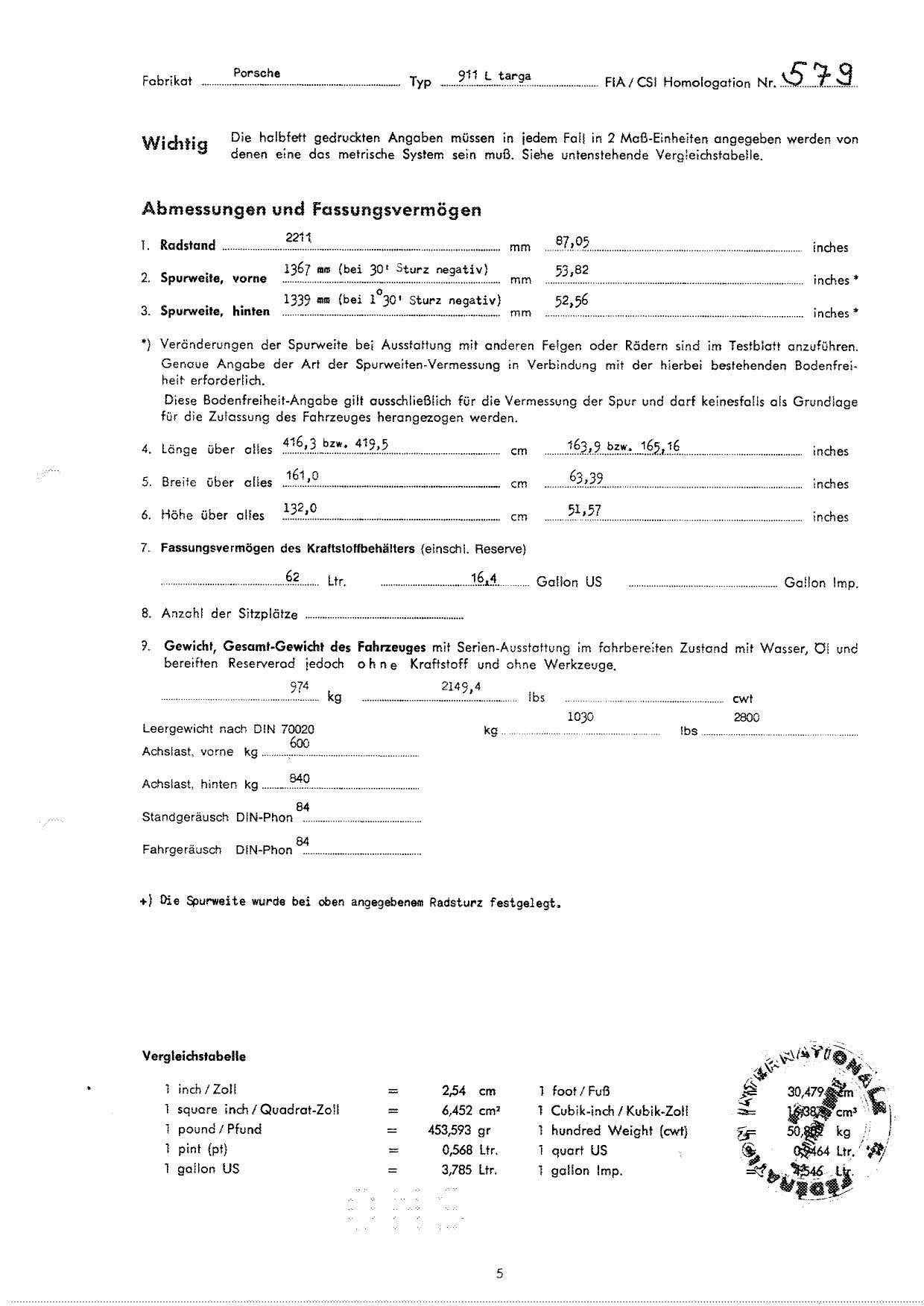 FIA Homologation Protocol for Porsche-911 L Targa, 1967