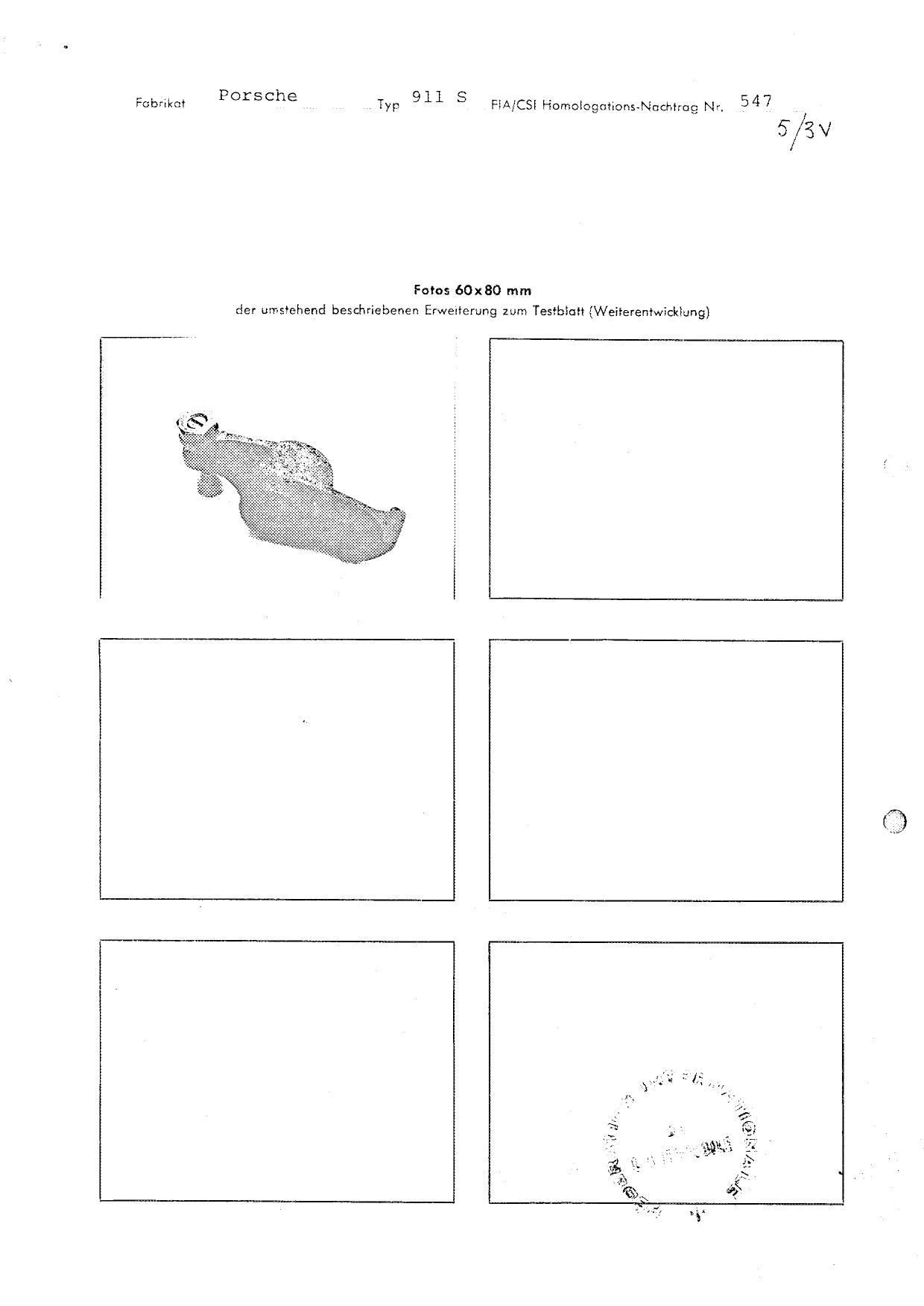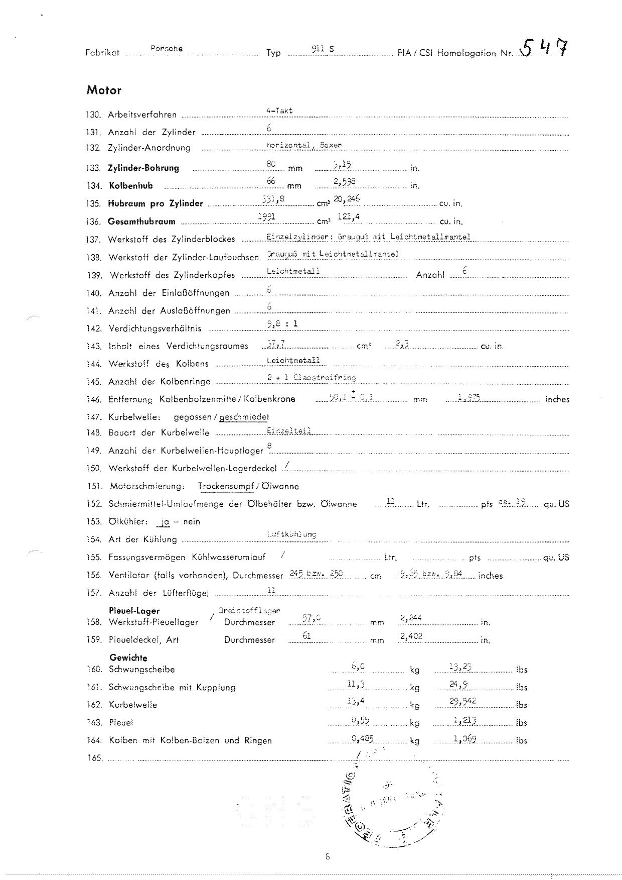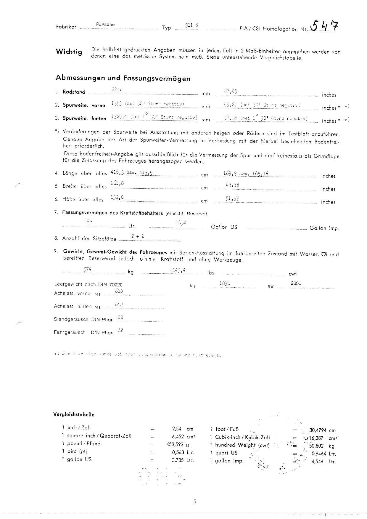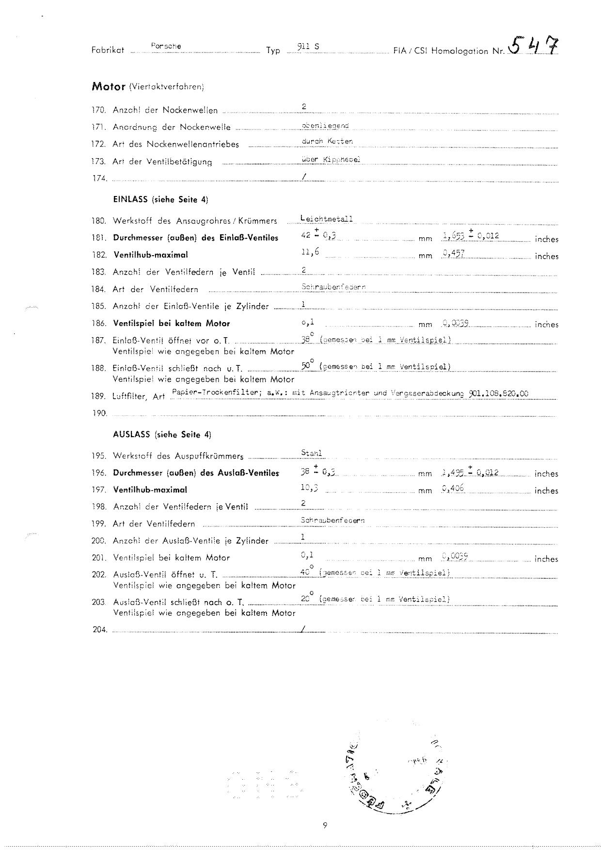 FIA Homologation Protocol for Porsche 911S, 1966
