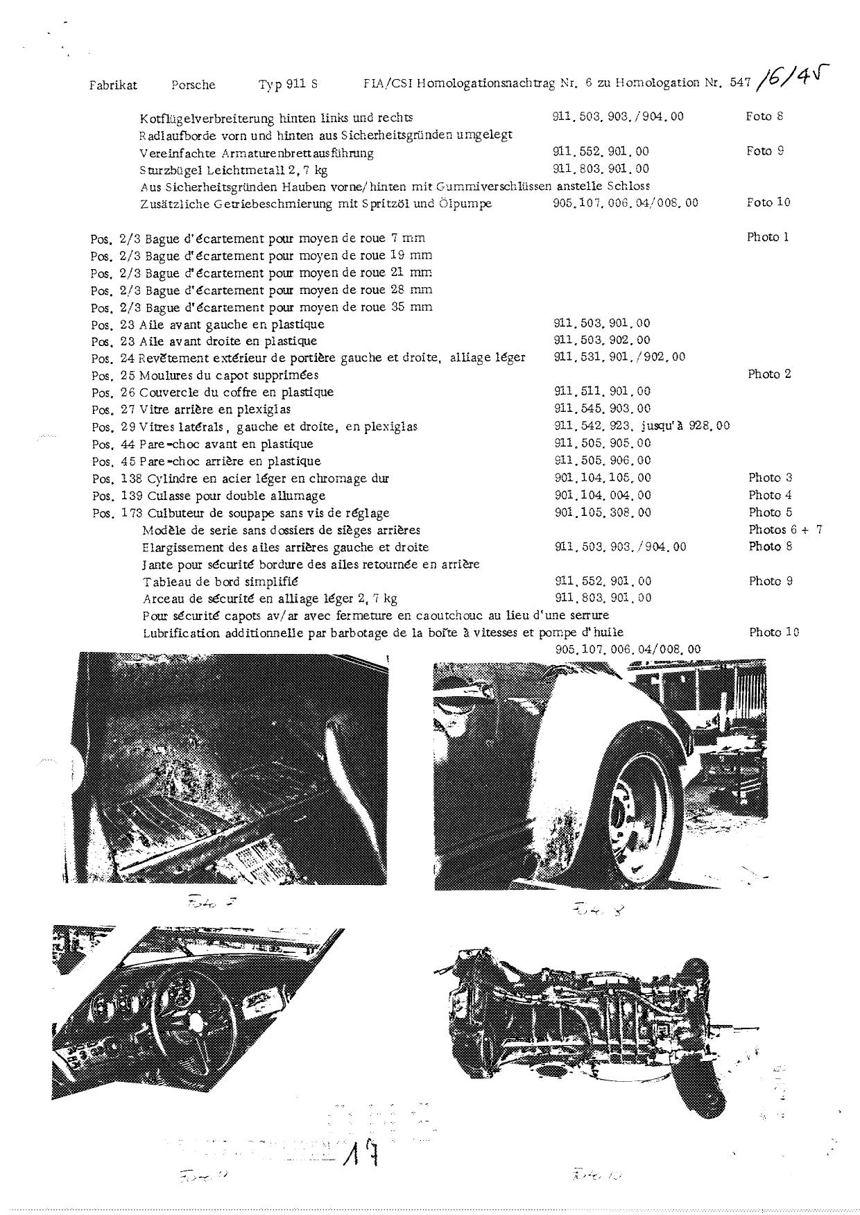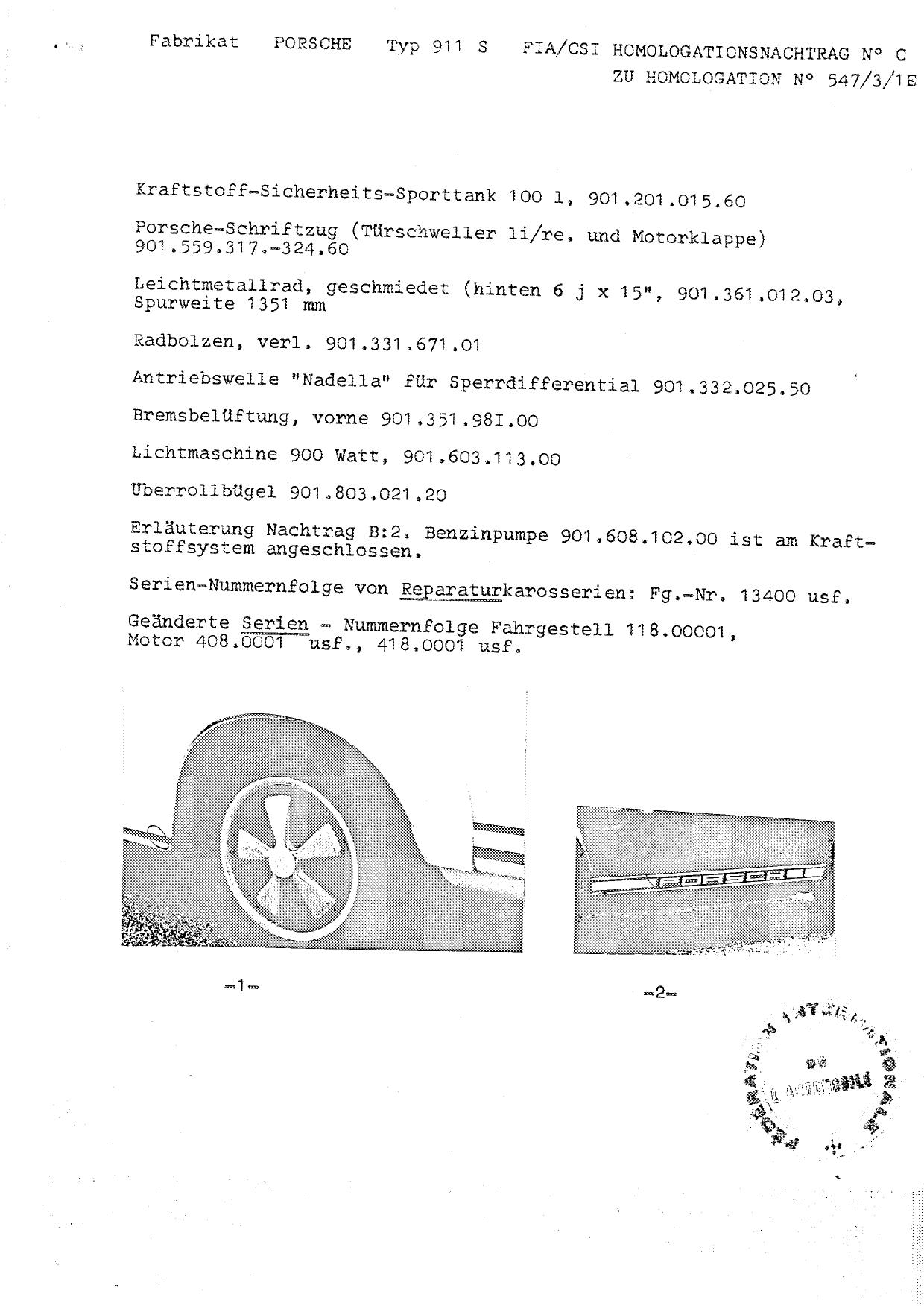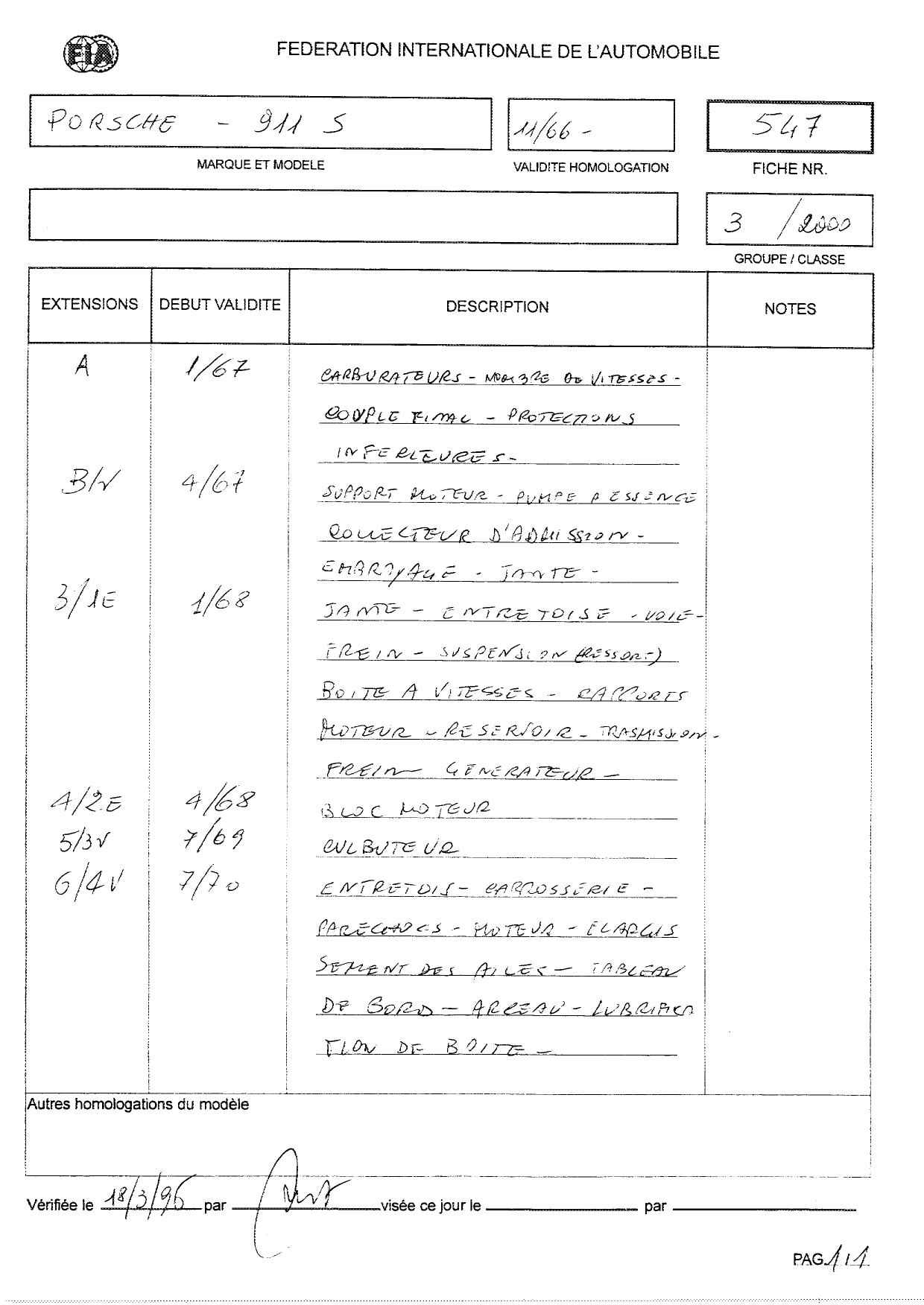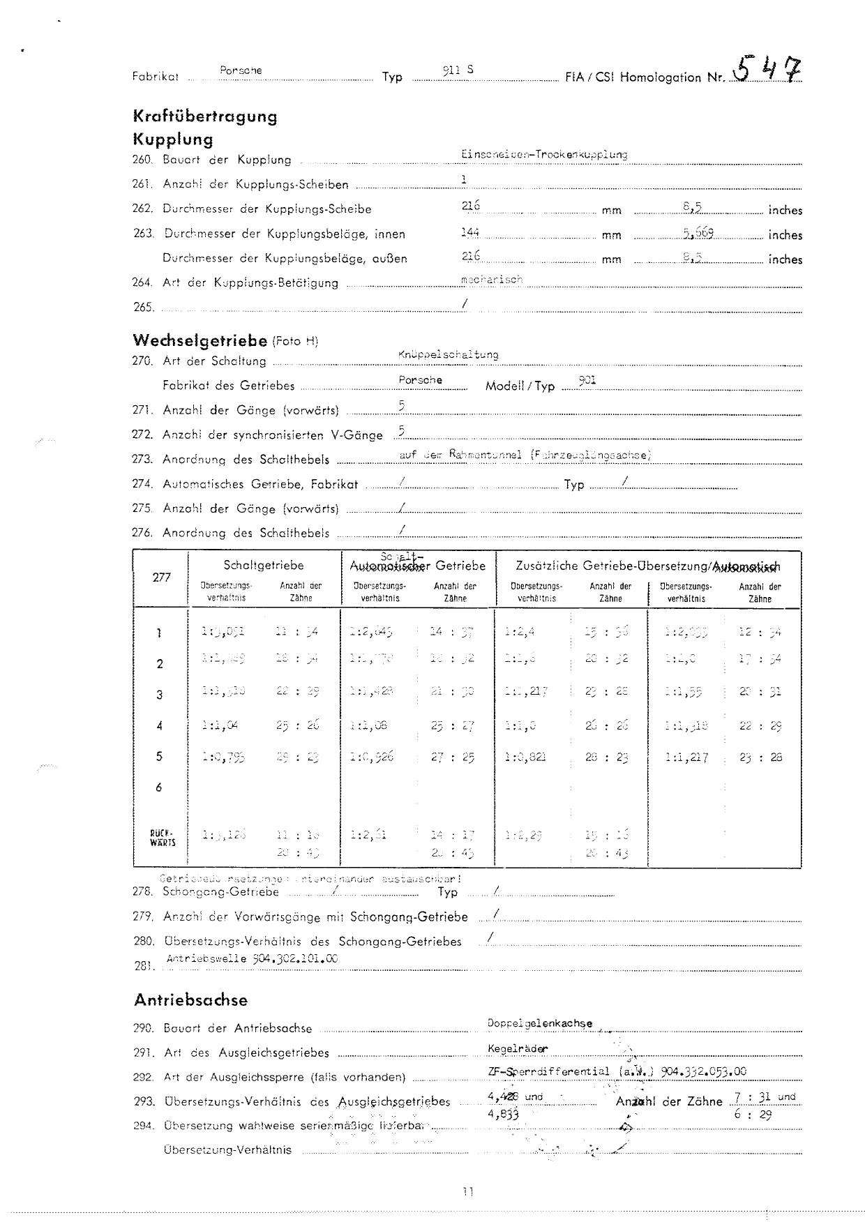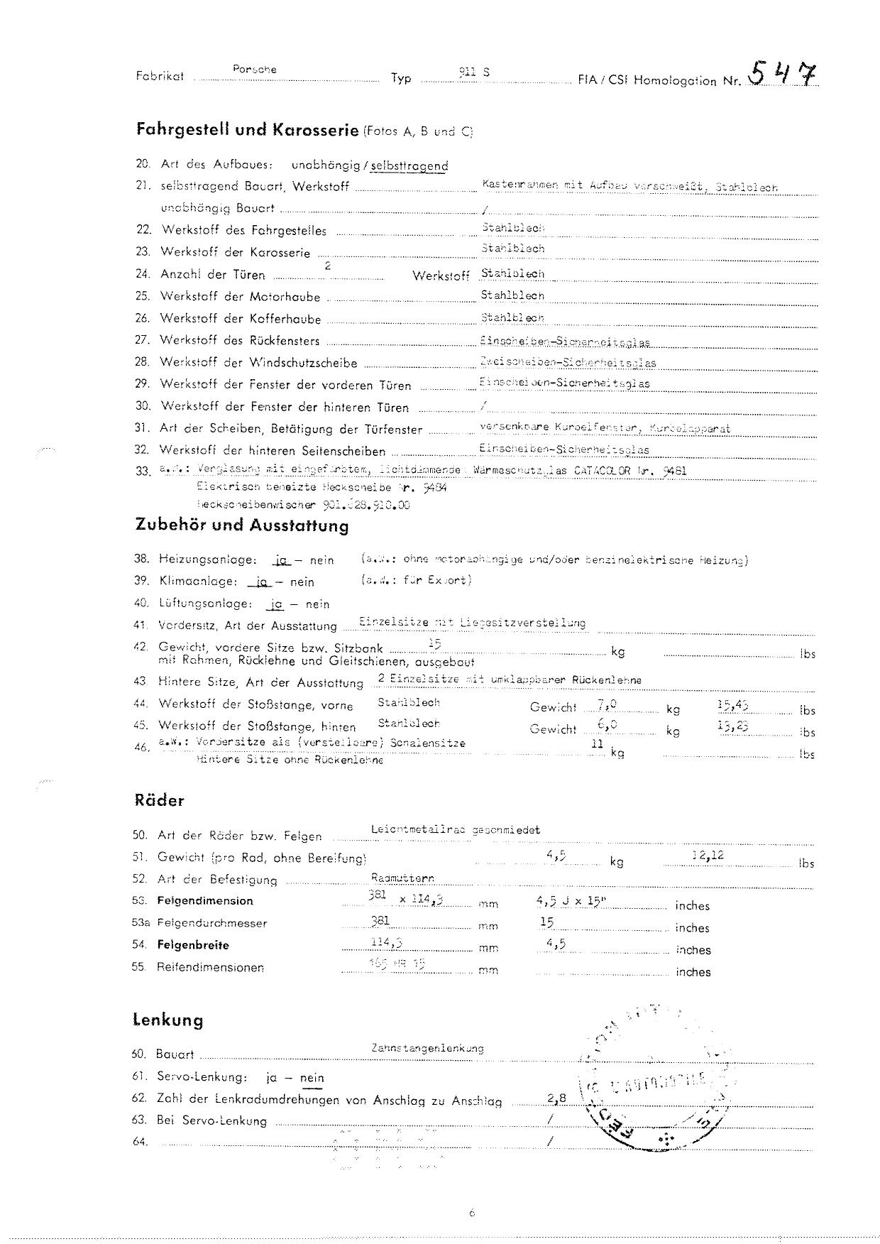 FIA Homologation Protocol for Porsche 911S, 1966